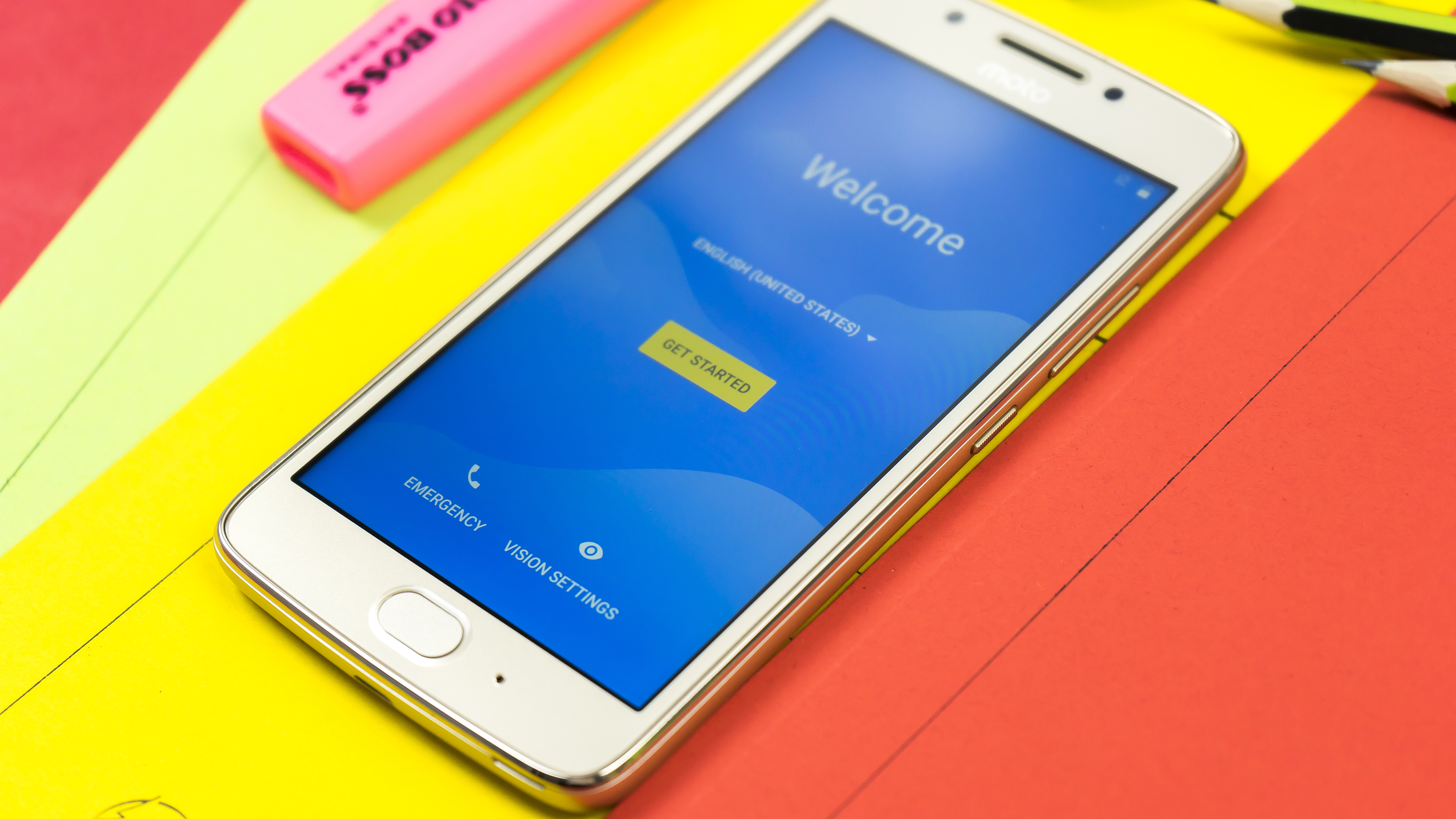 Als Betriebssystem ist Android 7.0 mit der Bezeichnung Nougat vorinstalliert. Die Menge der vorhandenen Apps ist überschaubar, nervige Bloatware gibt es erfreulicherweise nicht. Neben den Standard-Apps fallen uns nur die Moto-App und eine Anwendung für Videotelefonie ins Auge. Die Moto-App ermöglicht es, einige Dinge per Handbewegung zu steuern. Eine Schüttelgeste schaltet beispielsweise die Taschenlampe ein, eine schnelle Drehbewegung aktiviert die Kamera. Gut gefällt uns auch, dass sich das Moto selbst auf lautlos stellt, wenn man es mit dem Display nach unten auf dem Tisch legt.