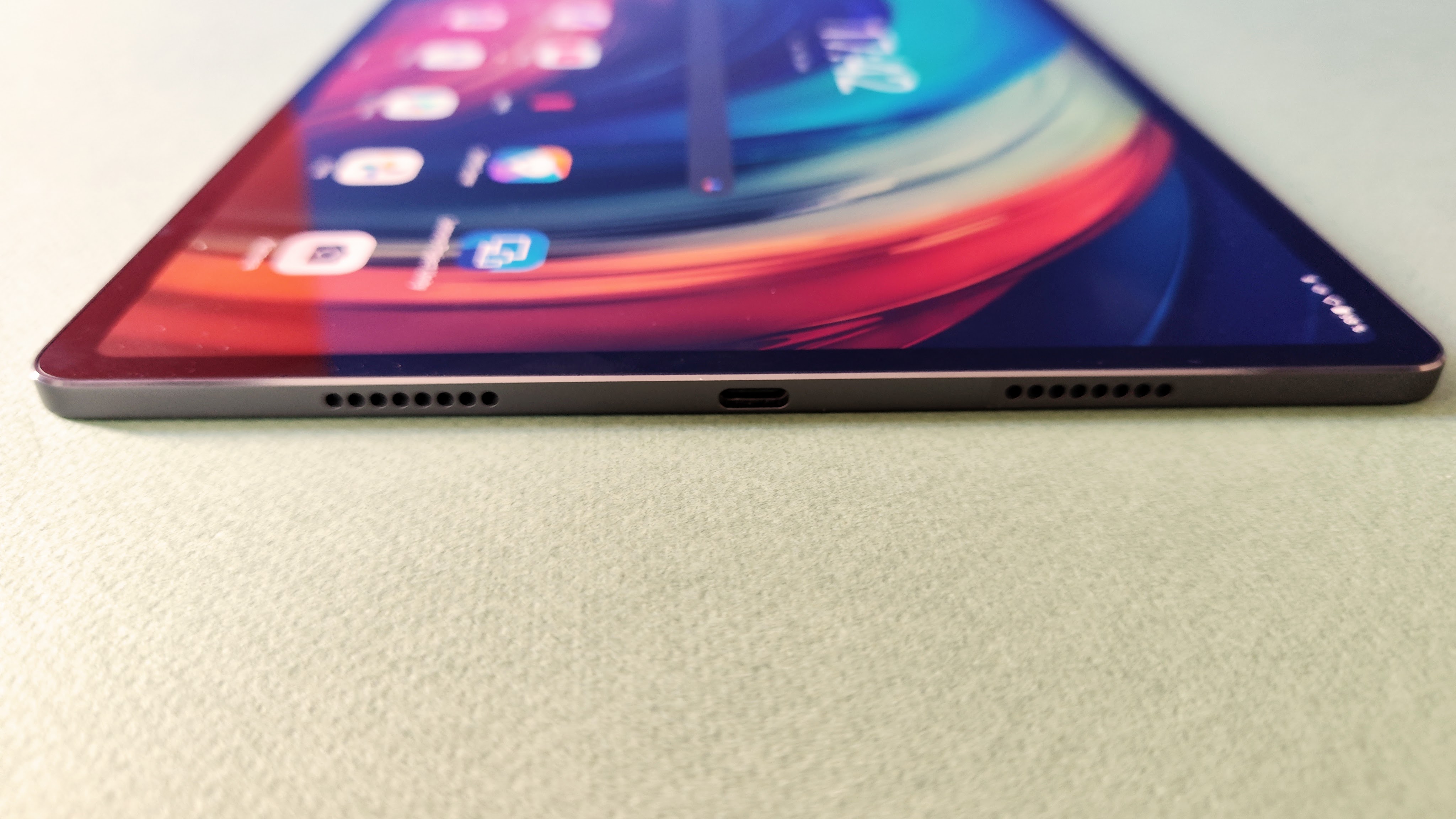Ein zuverlässiger Fingerabdrucksensor sowie ein Stift sind ebenfalls mit an Bord. Der Stylus haftet magnetisch an der Rückseite, wo er auch kabellos geladen wird. Die Lautsprecher hinterlassen einen ausgezeichneten Eindruck und sorgen für einen satten und klaren Klang. Sie unterstützen sogar Dolby Atmos. Das objektbasierte System führt bei der Wiedergabe von Filmen zu einem ausgeprägten räumlichen Klang, sofern diese den Standard auch unterstützen.