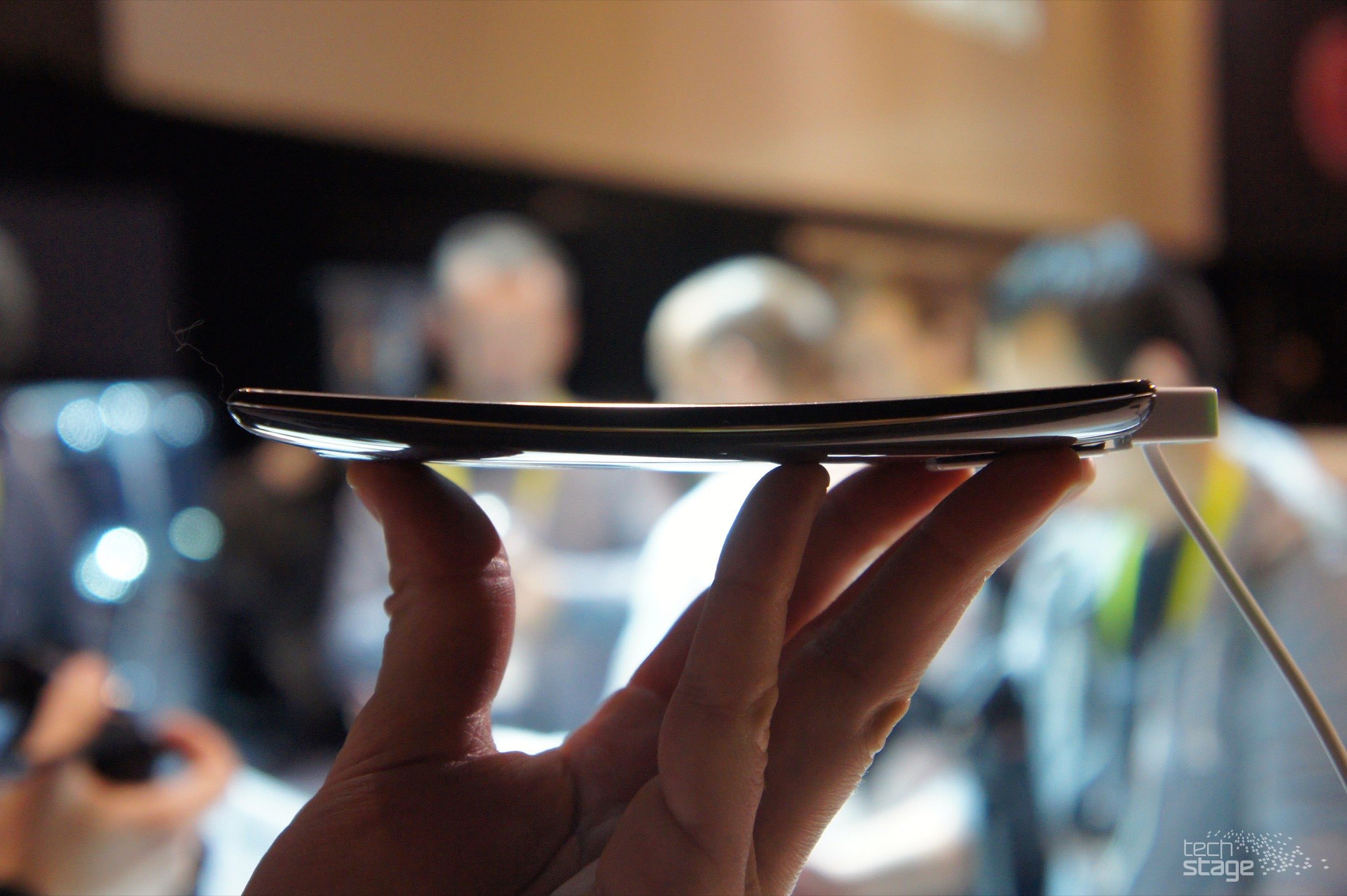 Direkt nach der Pressekonferenz von LG Electronics auf der CES 2015 (hier geht's zur Mitschrift unseres Live-Blogs ) haben wir uns in die Menge gestürzt, um das neue Top-Modell G Flex2 in die Finger zu bekommen. Der erste Eindruck: Sehr gut – die außergewöhnliche Form wirkt schon deutlich weniger befremdlich als beim ersten gebogenen Modell.