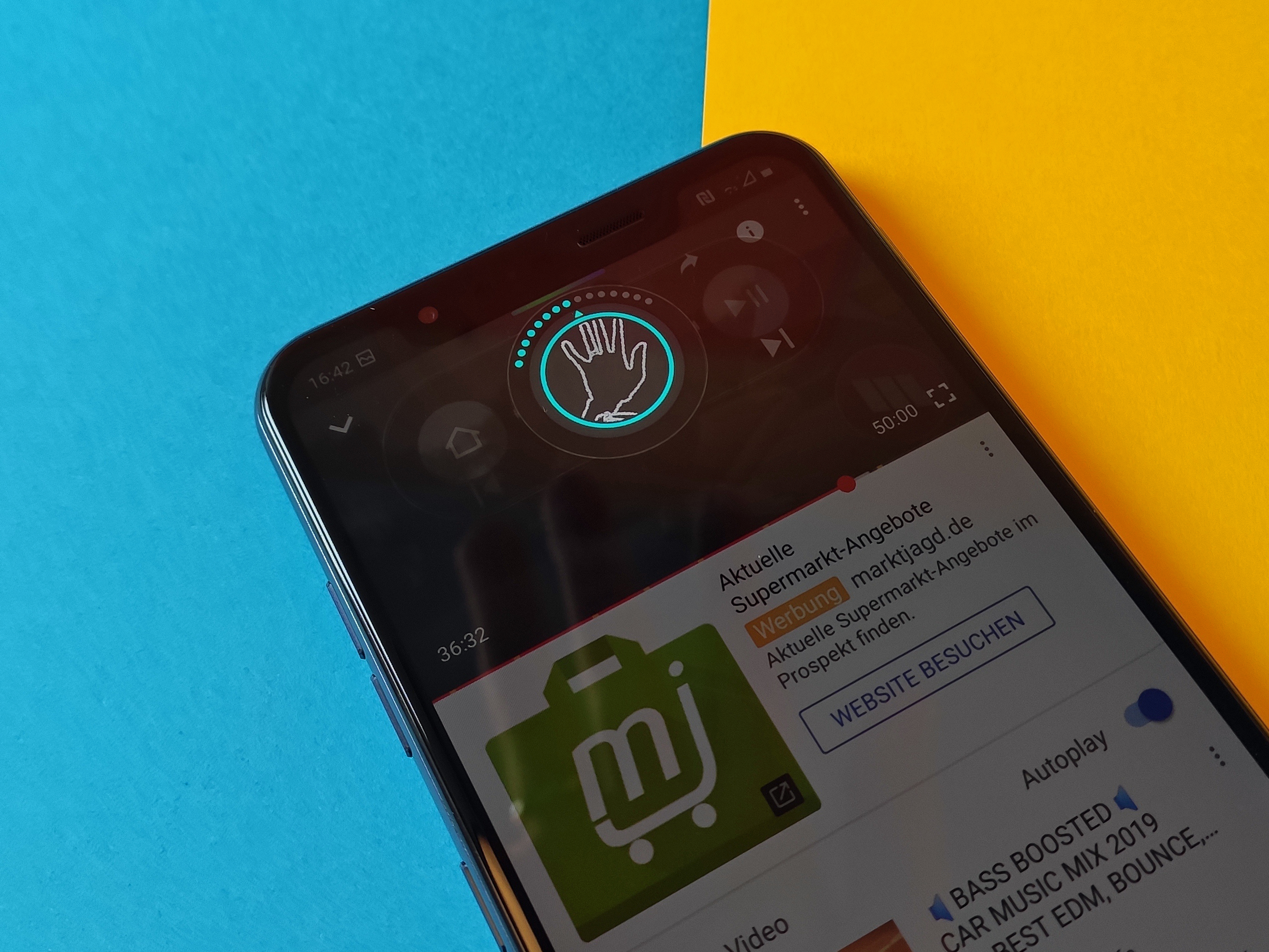 Beispiel Entsperrung des Smartphones per Venenerkennung: Dazu muss entweder der Powerbutton kurz betätigt werden oder die Hand einmal die Frontsensoren verdecken, um anschließend in etwa 15 Zentimeter Entfernung über die Z-Kamera gehalten zu werden. Den genauen Punkt der Erkennung zu treffen, ist aber entweder mit viel Übung oder Glück verbunden. Hinweise, wie die Position der Hand zu verändern ist, um das kleine Erkennungsfenster zu treffen, werden meist von der Hand verdeckt – kontraproduktiv. Genauso schlimm: die Steuerung des Smartphones per Geste. Im Youtube-Player darf damit etwa unter anderem die Lautstärke verändert werden. Dazu muss die Hand erneut rund 15 Zentimeter entfernt vor die Z-Kamera gehalten werden, ein bunter Balken am oberen Display-Rand signalisiert dann die grundsätzliche Erkennung einer Hand. Trifft man anschließend den richtigen Punkt in Entfernung und Richtung zur Kamera erscheint ein neues Symbol, in dessen Zentrum ein Raster der Hand erscheint, das deren Bewegung widerspiegelt. Griff-, Dreh- und Wischbewegungen sollen dann eine berührungslose Steuerung ermöglichen - in der Theorie. In der Praxis ist dieses Feature allerdings absolut unbrauchbar, da seine Nutzung viel zu zeitaufwändig, unpräzise und umständlich ist. Grundsätzlich ist es begrüßenswert, wenn ein Hersteller die ausgetretenen Pfade bei Smartphones verlässt und Innovationen bringt. Die müssen dann aber auch funktionieren – das tut sie aber beim LG G8s ThinQ nicht. Dabei ist die Idee einer Gestensteuerung per Frontkamera alles andere als neu, Qualcomm hatte so eine Funktion schon vor Jahren vorgeführt.