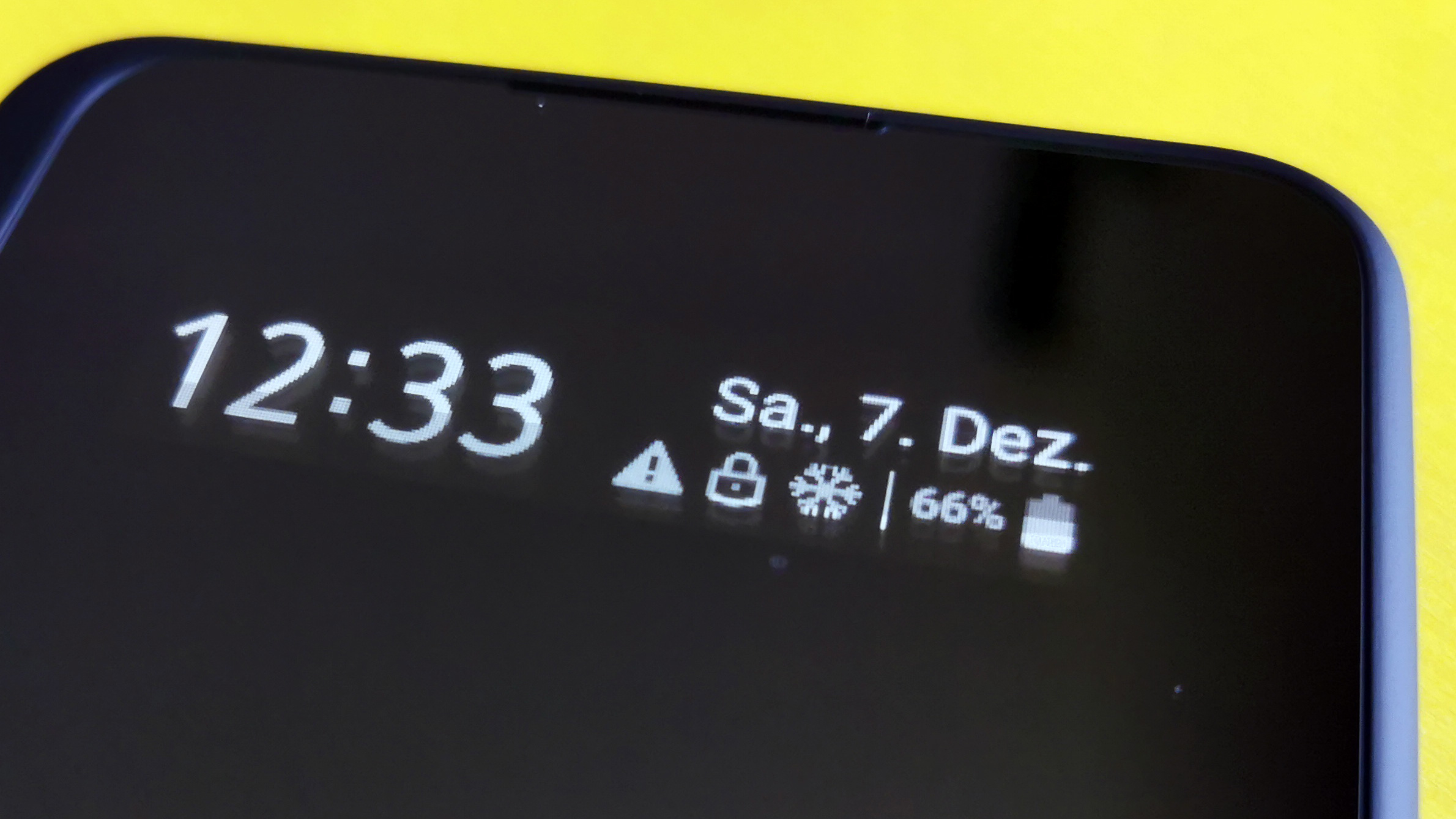 Das vordere AOD gibt Inhalte nur monochrom in weiß auf schwarzem Hintergrund aus und bietet dafür eine sehr niedrige Auflösung, bei der Nutzer einzelne Bildpunkte deutlich erkennen können. Der Begriff AOD ist dabei auch thematisch nicht ganz richtig, denn die Anzeige erfolgt nur für einige Sekunden, nachdem das Smartphone Bewegung registriert hat. Das schont den eh schon doppelt strapazierten Akku.