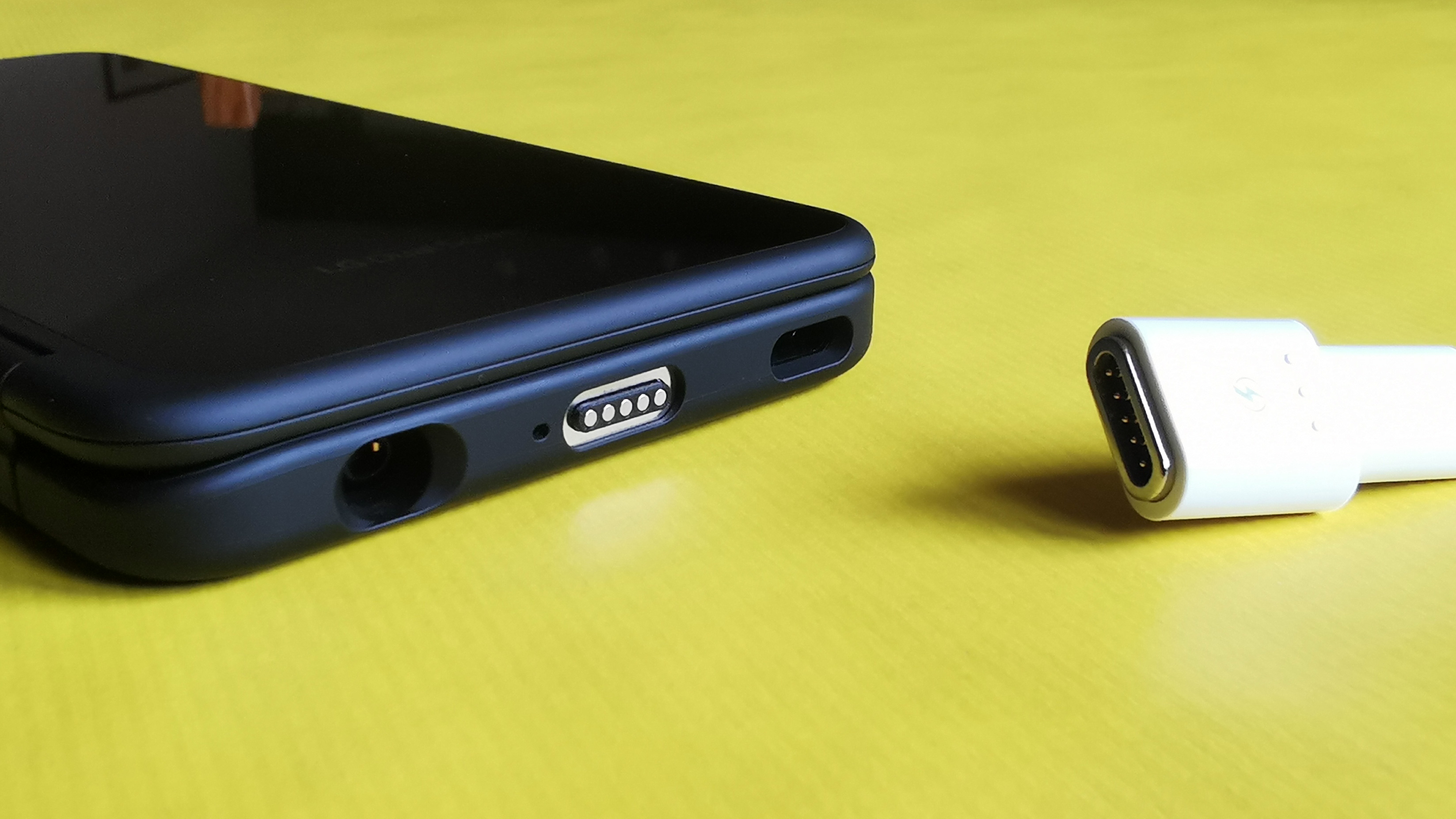 Beim anschließenden Aufladen gibt es zwei Dinge zu beachten: Einerseits lädt das G8X ziemlich langsam, eine vollständige Aufladung dauert per Kabel rund 2,5 Stunden. Außerdem will das Smartphone für diesen Vorgang aus dem Displaycover geholt werden, in dem es mittels des USB-Anschlusses Verbindung zum Zweit- und Dritt-Display aufnimmt. Das klappt ansonsten auch per magnetischem Anschluss an die Hülle, einen entsprechenden Adapter legt LG dem Lieferumfang bei. Alternativ lässt sich das Dual-Screen-Smartphone auch kabellos laden, was aktuell naturgemäß immer noch spürbar länger dauert, als ein Ladevorgang per Kabel.