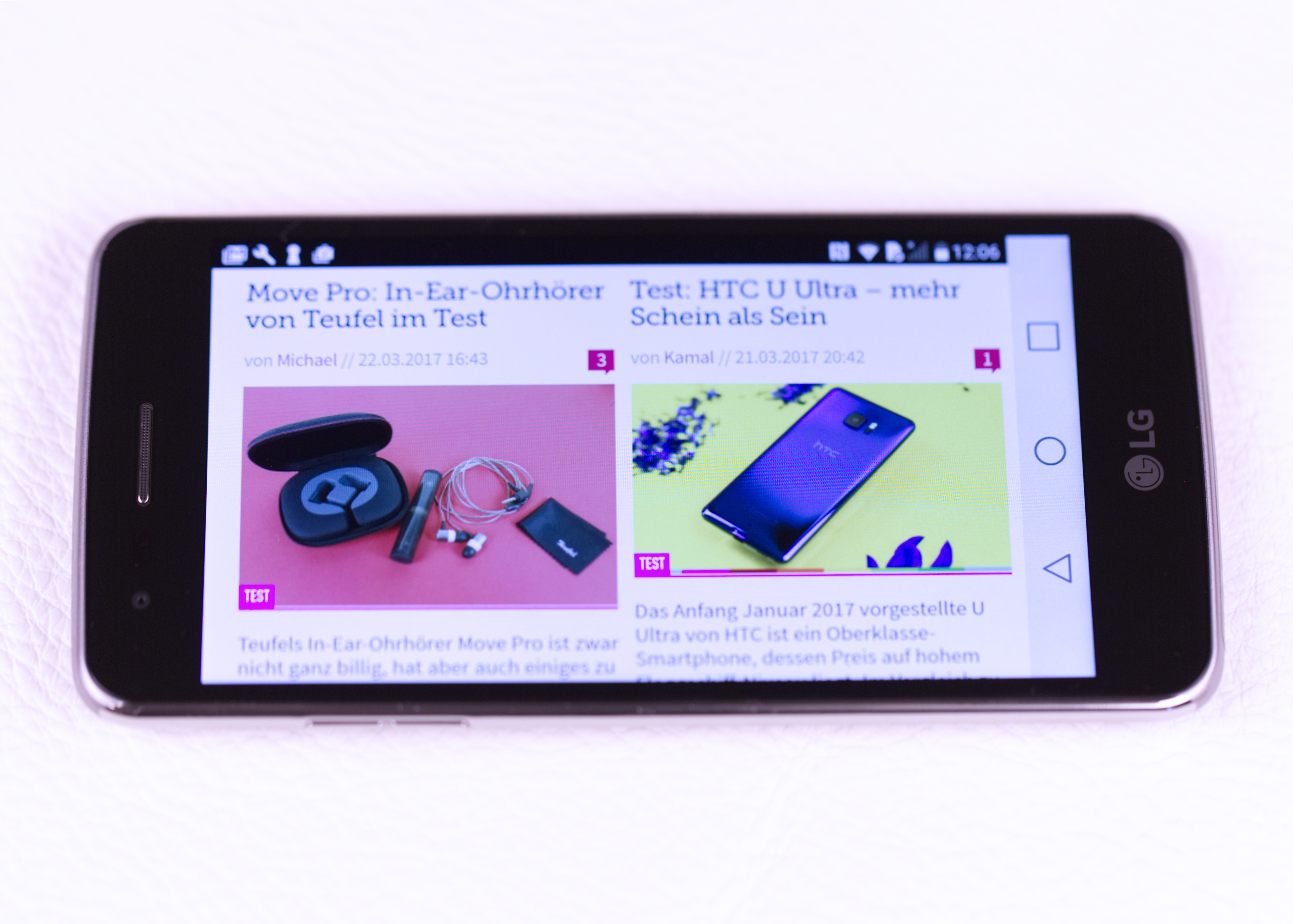 Durch den beschränkten internen Speicher hat man aber sowieso nicht die Möglichkeit, sehr viele Spiele zu installieren. Leider ist es nach wie vor nicht möglich, alle Daten einfach auf die microSDHC-Karte auszulagern. Positiv finden wir den austauschbaren und kräftigen Akku des K8. Das Wechseln macht insbesondere dann Sinn, wenn das Gerät schon etwas älter ist und die Leistung nachläßt. Super, wenn das Smartphone für einen Austausch nicht gleich eingeschickt werden muss. Die 2125 mAh sind ausreichend, um das LG bei nur gelegentlicher Nutzung bis zu zwei Tage mit Energie zu versorgen. Das ist im Hinblick auf die Konkurrenz eine wirklich gute Leistung; leider aber auch einem etwas schwachen Prozessor geschuldet. Das leistungsstarke Xperia XA beispielsweise hält maximal einen Tag lang durch; aber auch nur dann, wenn man es nicht intensiv nutzt.
