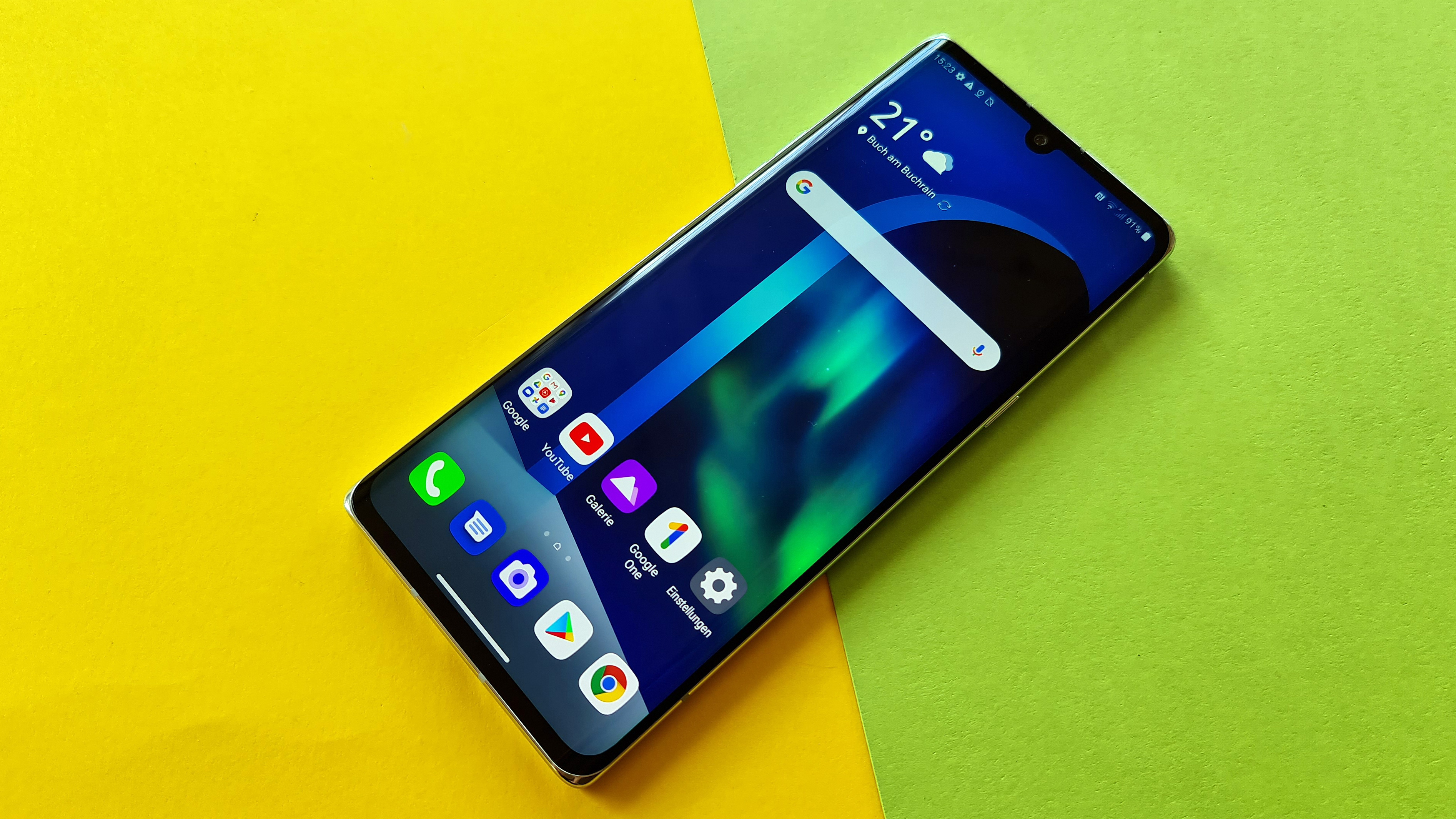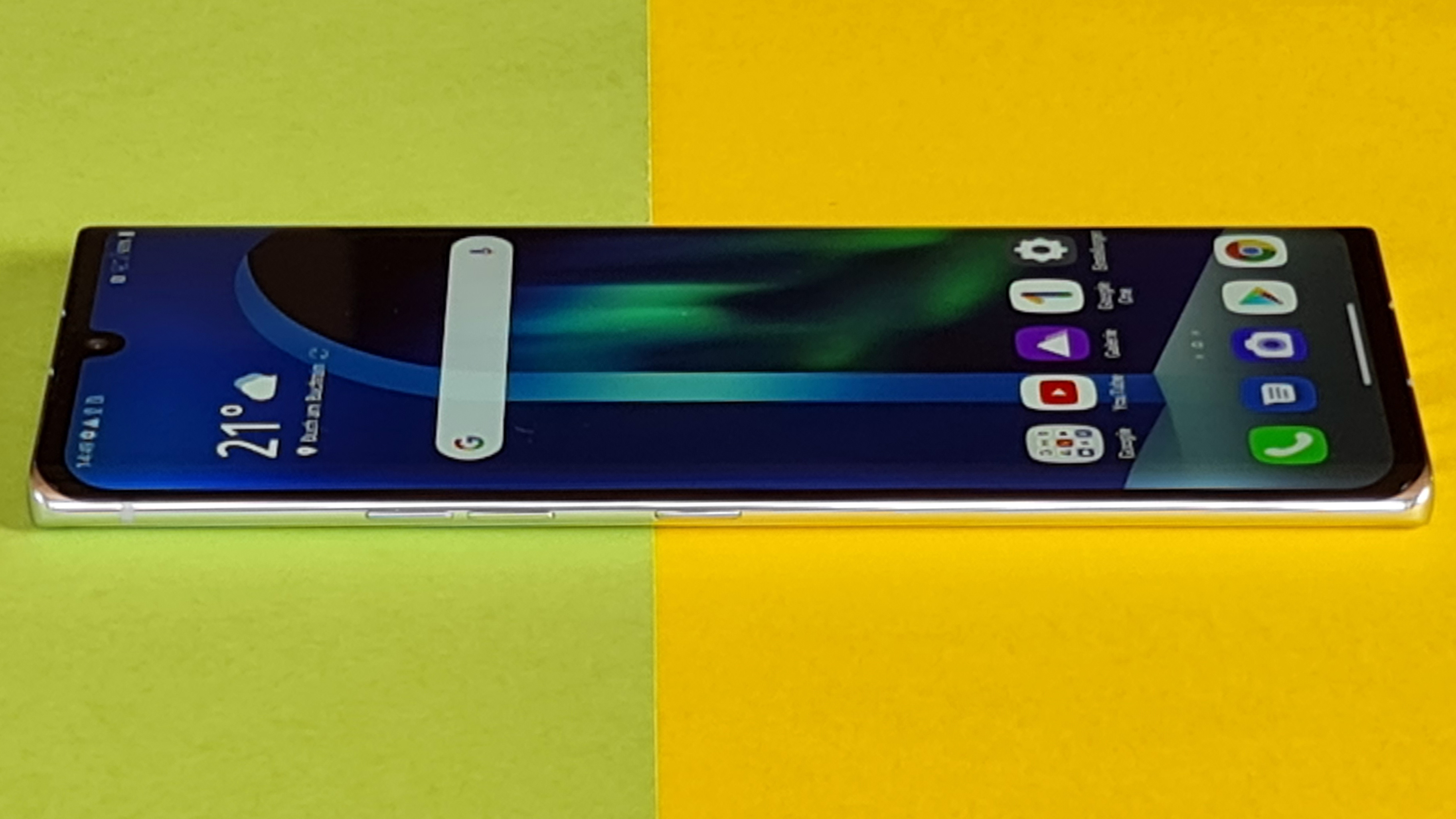 Ansonsten punktet das Modell mit hervorragender Verarbeitung, nur die Hardware-Buttons (Powerbutton rechts, Lautstärke-Regler und Google-Assistant-Knopf links) haben einen minimal zu harten Druckpunkt. Dafür klappert aber auch nichts. Auch das hat LGs neuestes Mittelklassemodell dem bereits erwähnten Samsung-Spitzengerät voraus.