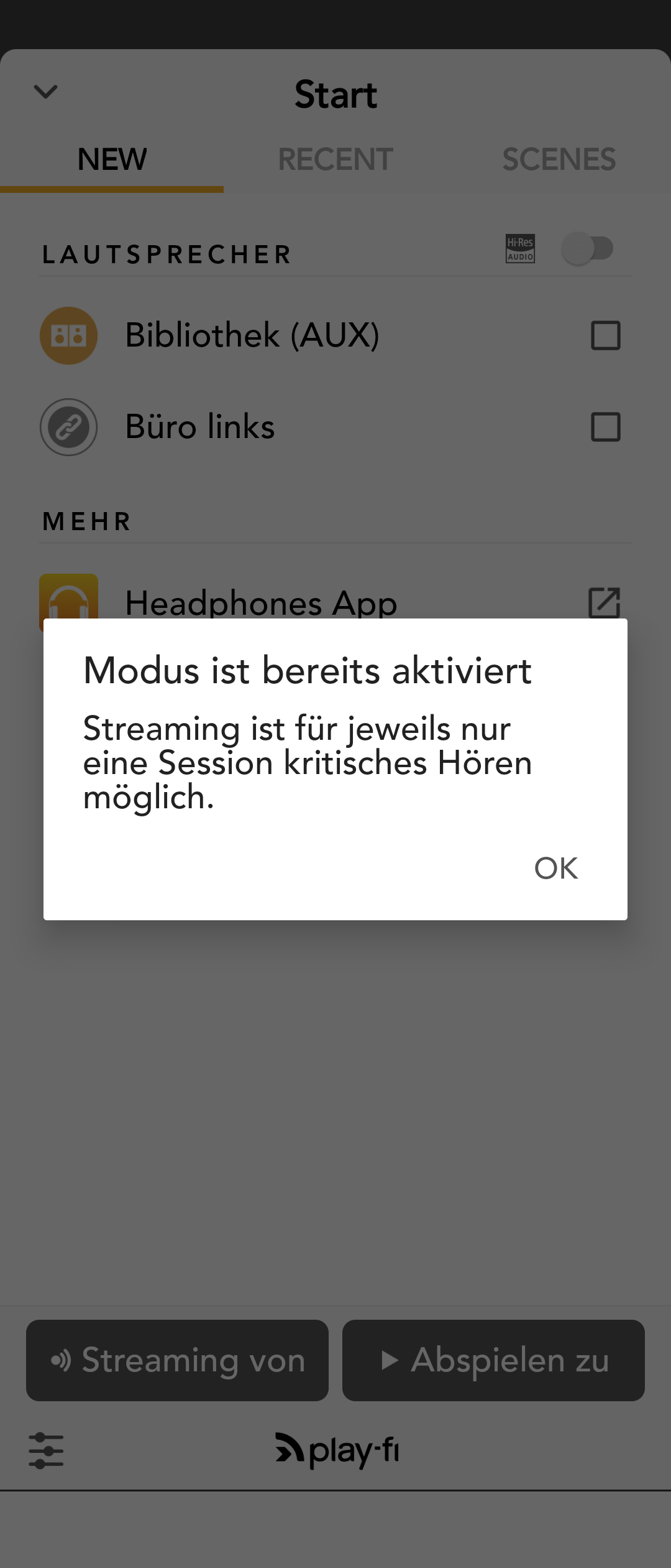 Wenn man DTS Play-Fi startet, ist wie bei Multiroom-Lautsprechern üblich ein kurzes Firmware-Update des Lautsprechers fällig, wenn dieser sich erstmals zum Dienst meldet, was ohne Komplikationen abläuft. Danach übernimmt die App nicht nur das Streamen von Radiosendern über die eigene App Internet-Radio oder von Musikdiensten wie Qobuz, sondern auch das Streamen von Musik vom Smartphone. Nur für Spotify wechselt man wie üblich auf die Spotify-App.