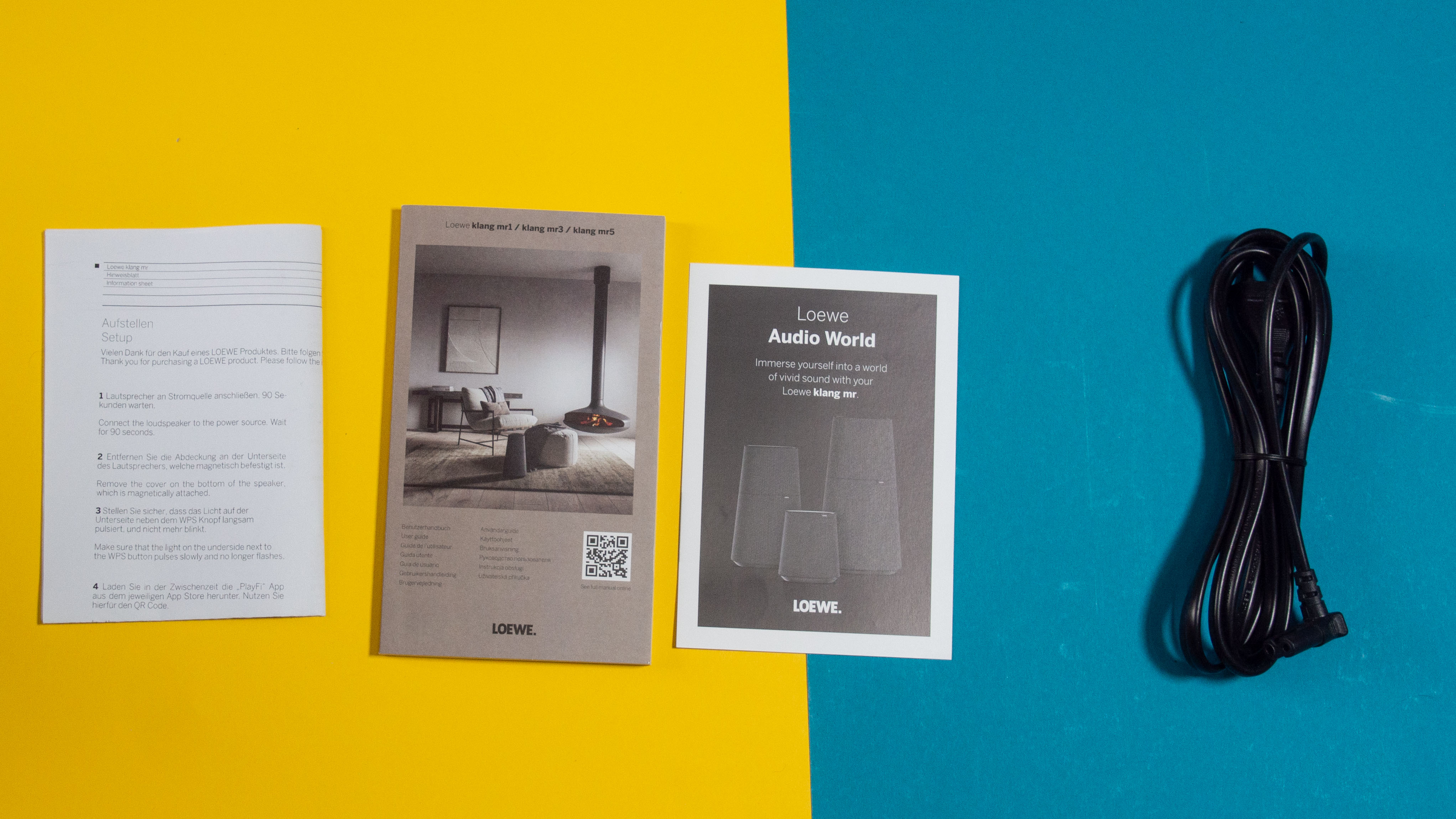 Im Loewe Klang MR5 sind eine 180-W-Endstufe und insgesamt neun „Tonauslässe“ verbaut: drei Hochtonlautsprecher mit 2,5 cm Durchmesser, zwei Hoch- und Mittelton-Breitband-Lautsprecher mit 5 cm Durchmesser und ein Tieftöner mit 10 cm Durchmesser. Hinzu kommen zwei Passivradiatoren. Damit sind laut Hersteller 36 Hz bis 20 kHz abgedeckt.