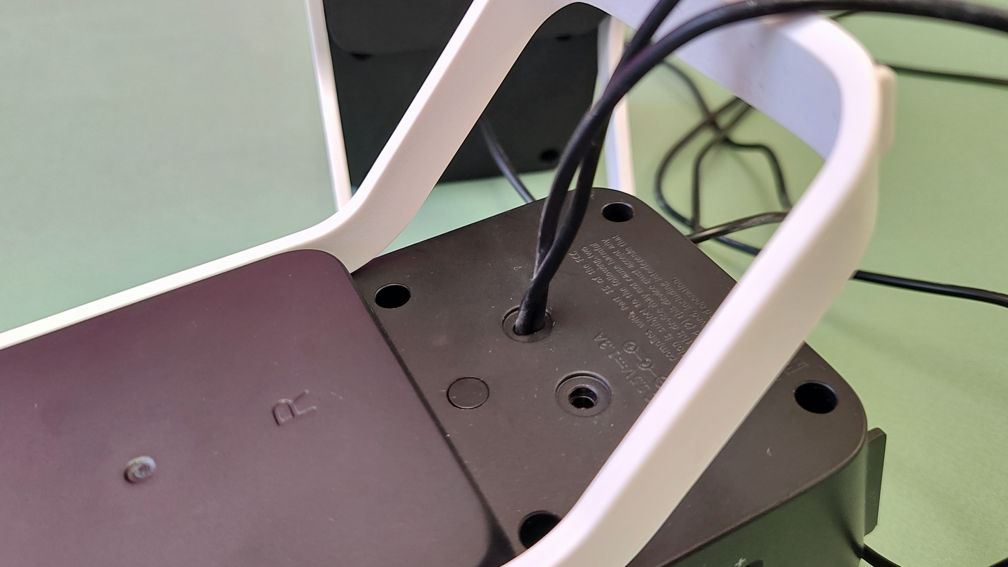Links und rechts des Drehknopfes gibt es je einen 3,5-Millimeter-Anschluss für Kopfhörer und Mikrofon, das ist praktisch. Auf der rechten Seite des Hauptlautsprechers gibt es zudem ein Drehrad, über das man die Klangfarbe von klar und wenig Bass bis hin zu vollerem, dafür aber auch undifferenzierterem Sound verschieben kann. Grundsätzlich ist auch das eine sehr praktische Einstellungsmöglichkeit. Anstelle des Lautstärkerades ziert die Slave-Box ein schlichter weißer „Logi“-Schriftzug.