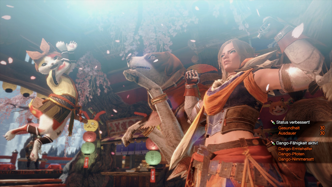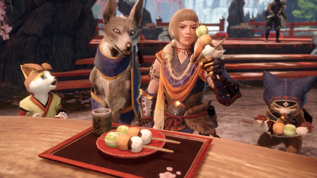 Wer nach einem harten Arbeitstag auf den Jagdgründen nach Kamura zurückkehrt, wird mit viel Charme begrüßt. Tanzende Palicos servieren den Spielern Gerichte, unsere Buddies trainieren auf dem Buddy-Plaza gegen eine gigantische hölzerne Kröte oder man trifft Hinoa, unser Dorf-Quest-Kontakt, die einfach nicht genug von japanischen Dangos kriegen kann. Monster Hunter Rise nimmt sich und seine Inhalte nicht allzu ernst und bietet eine entspannte Atmosphäre fernab der Kämpfe. Diese gestalten sich dank des Designs und den unzähligen Individualisierungsmöglichkeiten stets unterhaltsam.