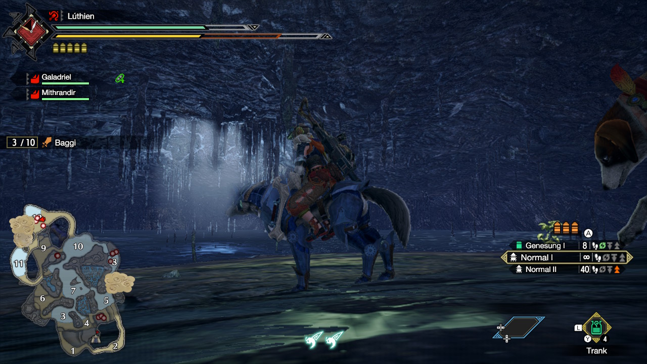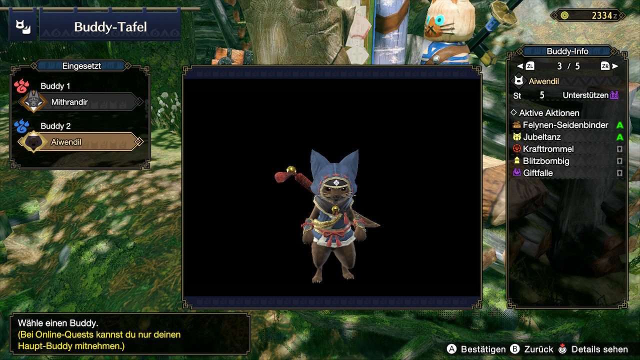Doch bei der eigenen Ausstattung hört es nicht auf, denn an der Seite der Jäger stehen die sogenannten Buddies, bestehend aus den katzenartigen Palicos und dem Hunde-Gegenstück, den Palamutes. Während die Palicos spezifische Rollen wie Sammler, Kämpfer oder Bomber einnehmen können, dienen die Palamutes gleichzeitig als Reittier. Wer seine Gefährten gut ausrüstet, sie trainiert und ihnen geeignete Fähigkeiten zuweist, kann mit Katz und Hund an seiner Seite so einiges aus den Kämpfen gegen die Monster herausholen.