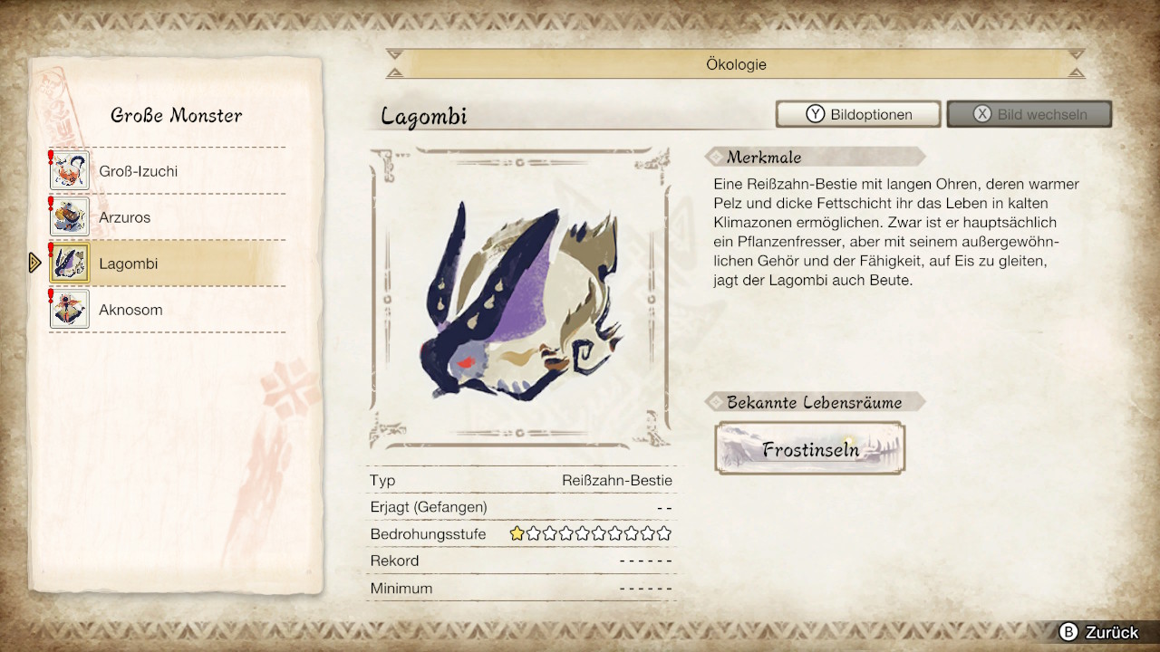 Jedes Monster besitzt seine eigenen Verhaltensmuster und Angriffe. Die gilt es zu lernen, um effektiv gegen sie vorzugehen. Der Bishaten beispielsweise zeichnet sich durch seinen Arm-artigen Schwanz aus, auf den er nicht nur blitzschnell navigieren kann, sondern Spieler auch mit Früchten abwirft. Der Vogel-artige Aknosom hingegen wirft Feuerbälle ab und schwingt gerne Mal mit seinen riesigen Flügeln umher, um die Spieler auf den Boden zu werfen. Je nach Quest können die Monster erjagt oder auch gefangen werden, wobei beide Varianten mit ihren jeweils eigenen Materialien als Belohnung winken.