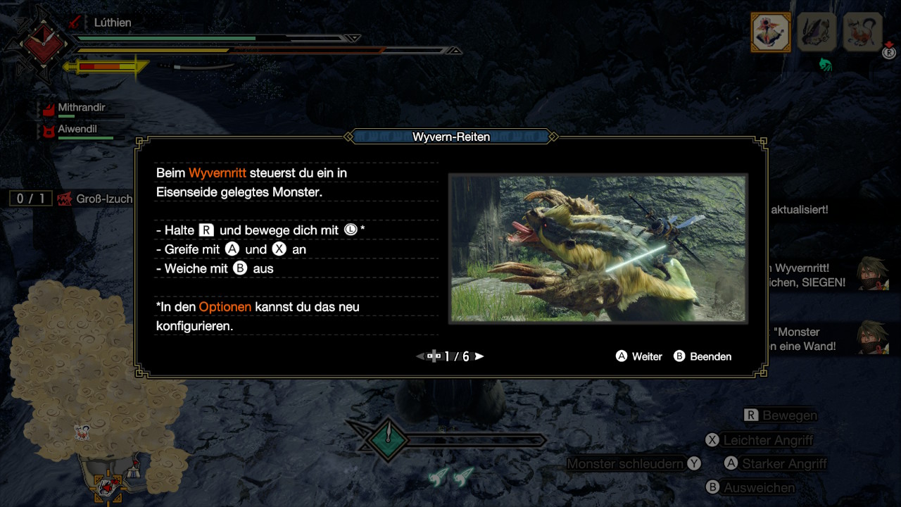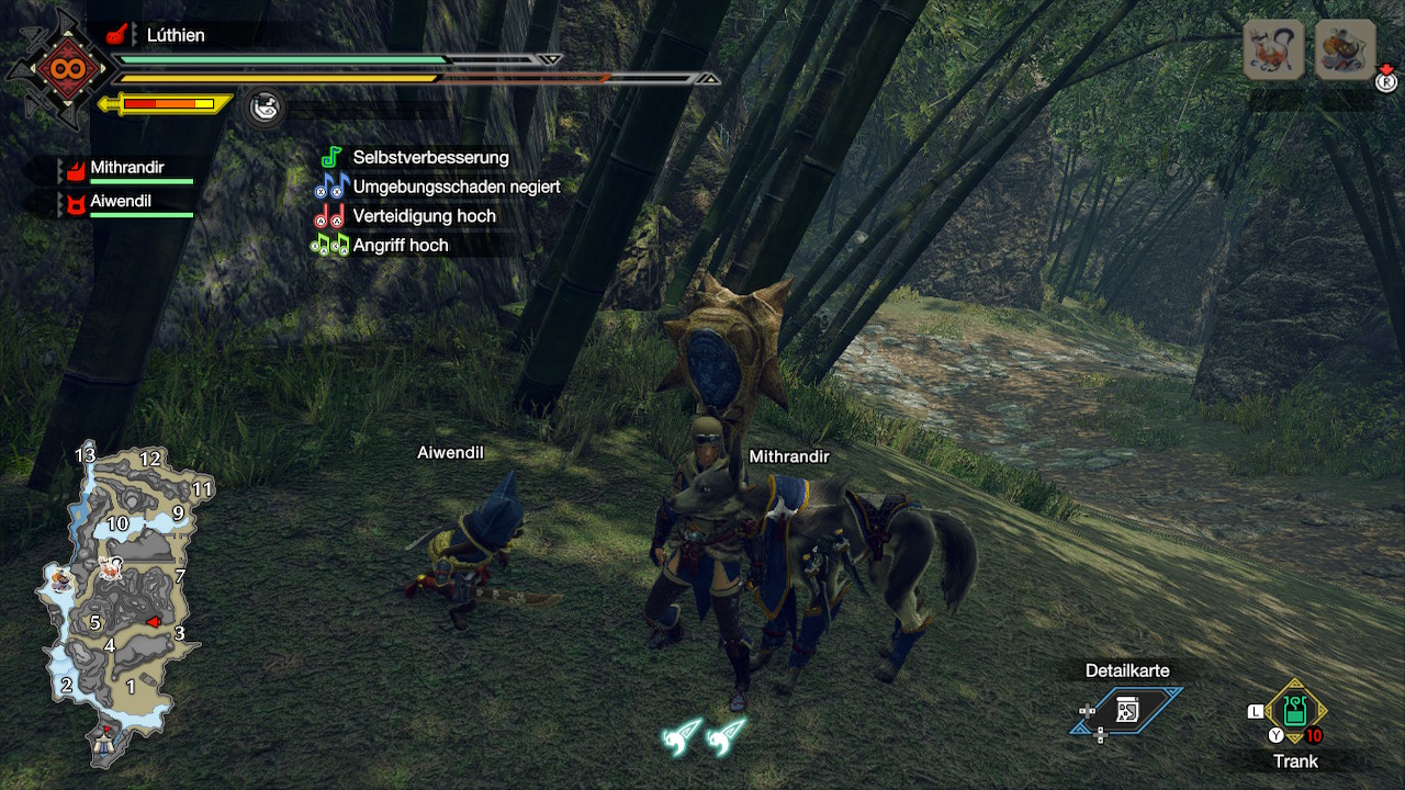 Die spielerischen Elemente in all ihren Details sind in der Tat so umfangreich, dass sie den Rahmen des Textes sprengen würden. Monster Hunter Rise leistet auch innerhalb des Spielgeschehens keine sonderlich gute Arbeit dabei, eine Überforderung neuer Spieler zu verhindern. Für einen Jäger-Frischling wirkt die Masse der verschiedenen Benutzeroberflächen, Tastenkombos und Ausrüstungsoptionen schnell erdrückend. Deswegen lautet die Devise: Einfach machen. Eine Waffe schnappen, die gefällt, die erste Dorf-Quest auswählen und die Jagdgründe zusammen mit den Buddies erkunden. Sobald sich die erste Verwirrung legt, wandelt sich die große Vielfalt an Optionen und Individualisierungsmöglichkeiten vom Fluch zum Segen, der immer wieder dafür sorgt, dass der Spaß am Jagen nicht vergeht.