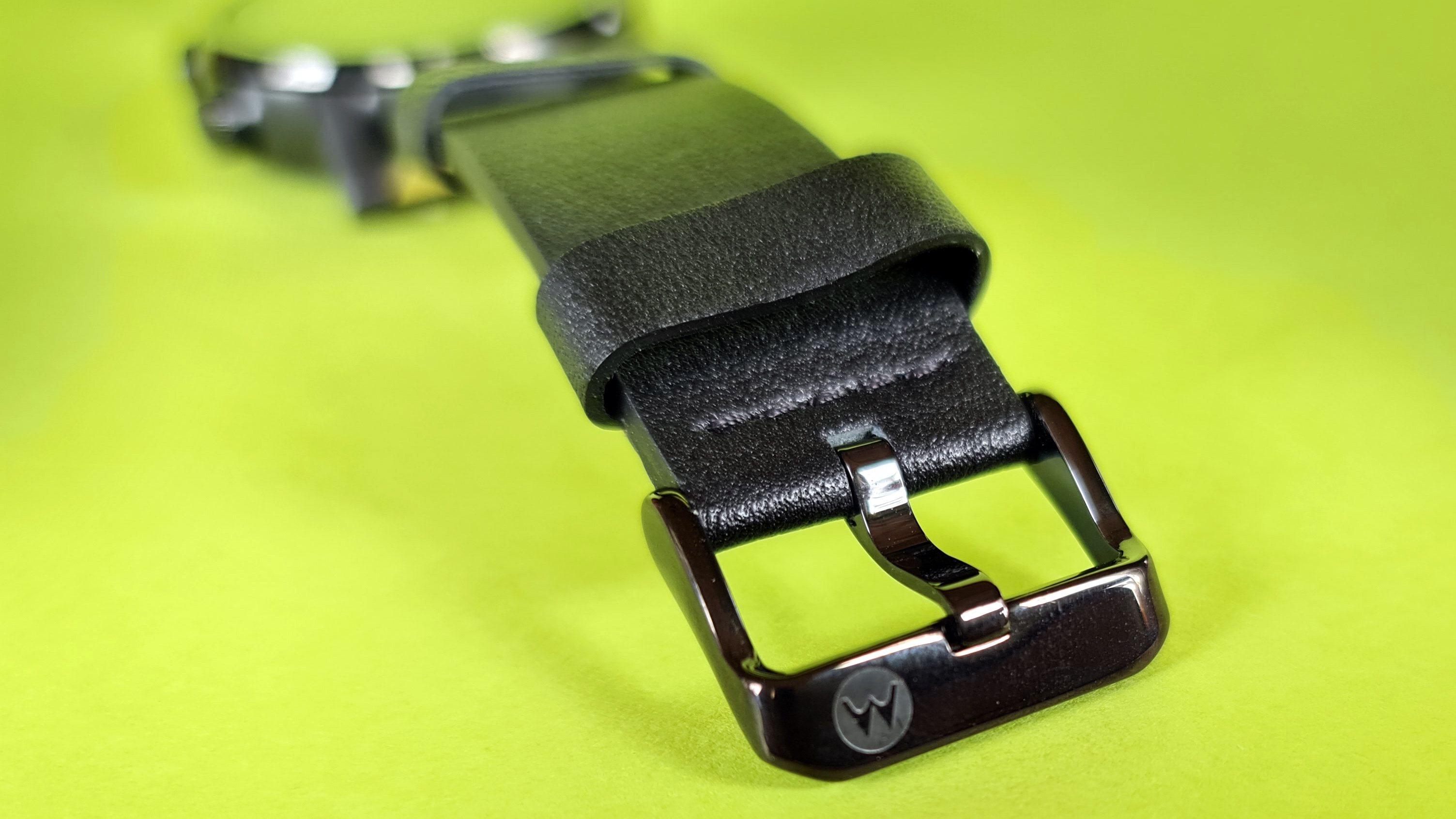 Ansonsten gibt es überwiegend Ähnlichkeiten. So setzt Motorola auf eine Kunststoffrückseite mit integriertem Pulsmesser, die überraschenderweise von vier winzigen Torx-Schrauben gehalten zu werden scheint. Sollte das stimmen, wäre ein Akkuwechsel oder eine sonstige Reparatur vergleichsweise einfach zu regeln. Gewöhnlich sind solche Rückseiten aber verklebt, entsprechend dürften die vier Schrauben nur Deko sein. Tatsächlich ist Kleber auch für die Wasserdichtigkeit bis 3ATM zuständig, was – im Gegensatz zu Aussagen des Herstellers, der von einer Wassertiefen-Einstufung von 30 Meter und vollem Schutz in Dusche, Pool und Meer spricht – eher einem gehobenen Spritzwasserschutz entspricht. Auf der Rückseite sind zudem zwei Pogopins installiert, über die die Uhr aufgeladen wird. Im Gegensatz zu aktuellen Fossil-Smartwatches wie der Carlyle (Testbericht) ist die Ladeschale besser ausgeformt und das Einlegen eindeutiger und daher einfacher.