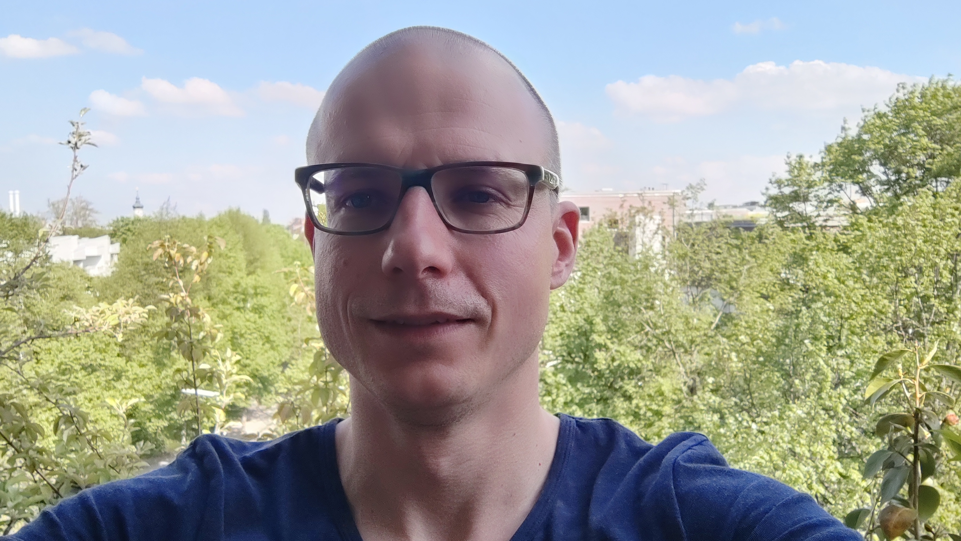 Die Frontkamera bietet recht üppige 32 Megapixel – beim Pro-Modell waren es sogar 60. Diese macht ordentliche Selfies, die aber einen ticken mehr Schärfe vertagen könnten. Der Porträtmodus übertreibt es ein wenig mit dem Weichzeichner, das Bokeh offenbart ein paar kleine Ungereimtheiten am Brillengestell rund ums Profil. Videos sind mit Full-HD bei 30 fps möglich – mangels OIS sind diese etwas wackeliger als mit der Hauptkamera. Insgesamt ist das Kamerasystem gut, aber nicht auf dem gleichen Niveau wie beim Samsung Galaxy S22 (Testbericht).