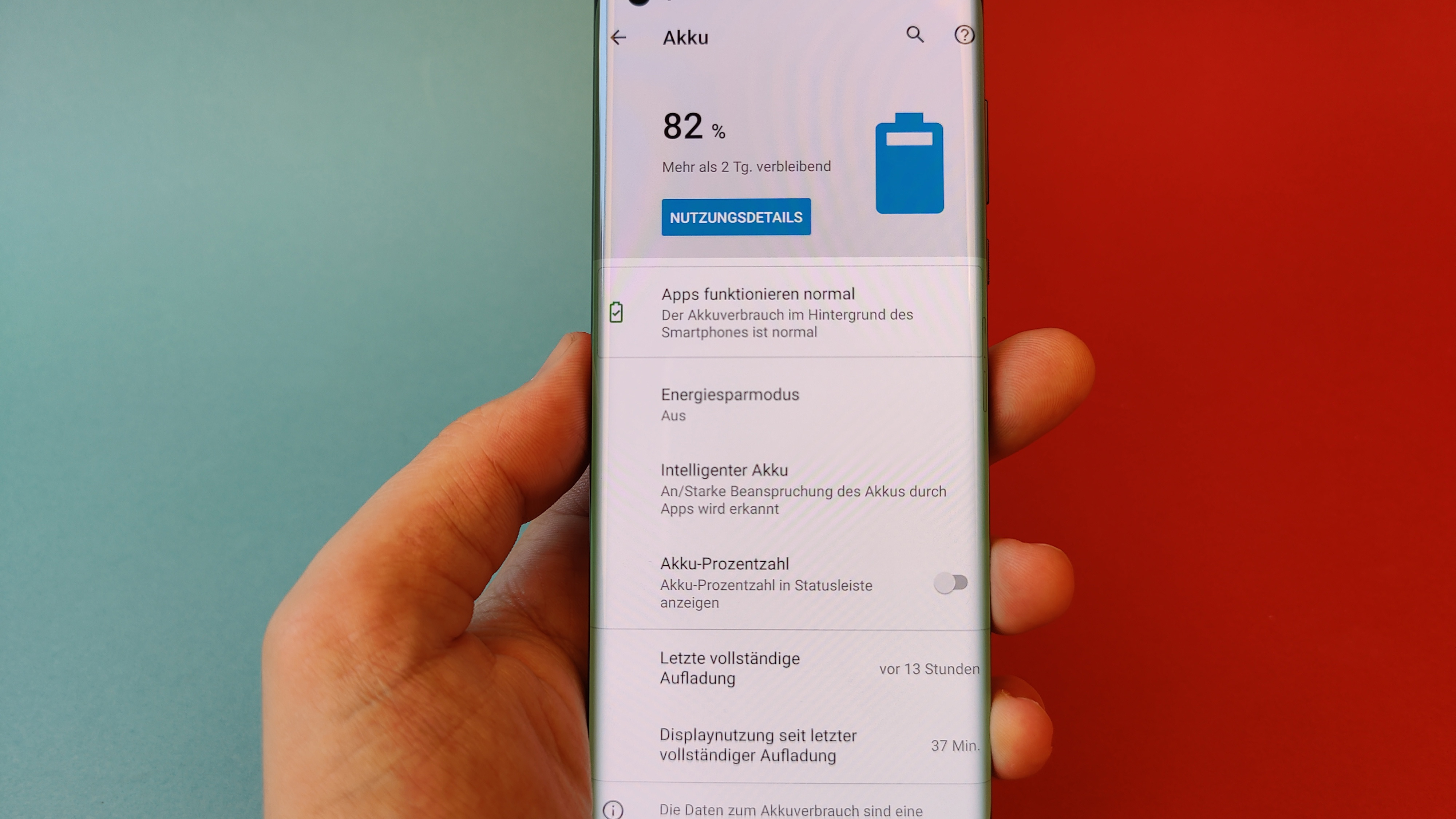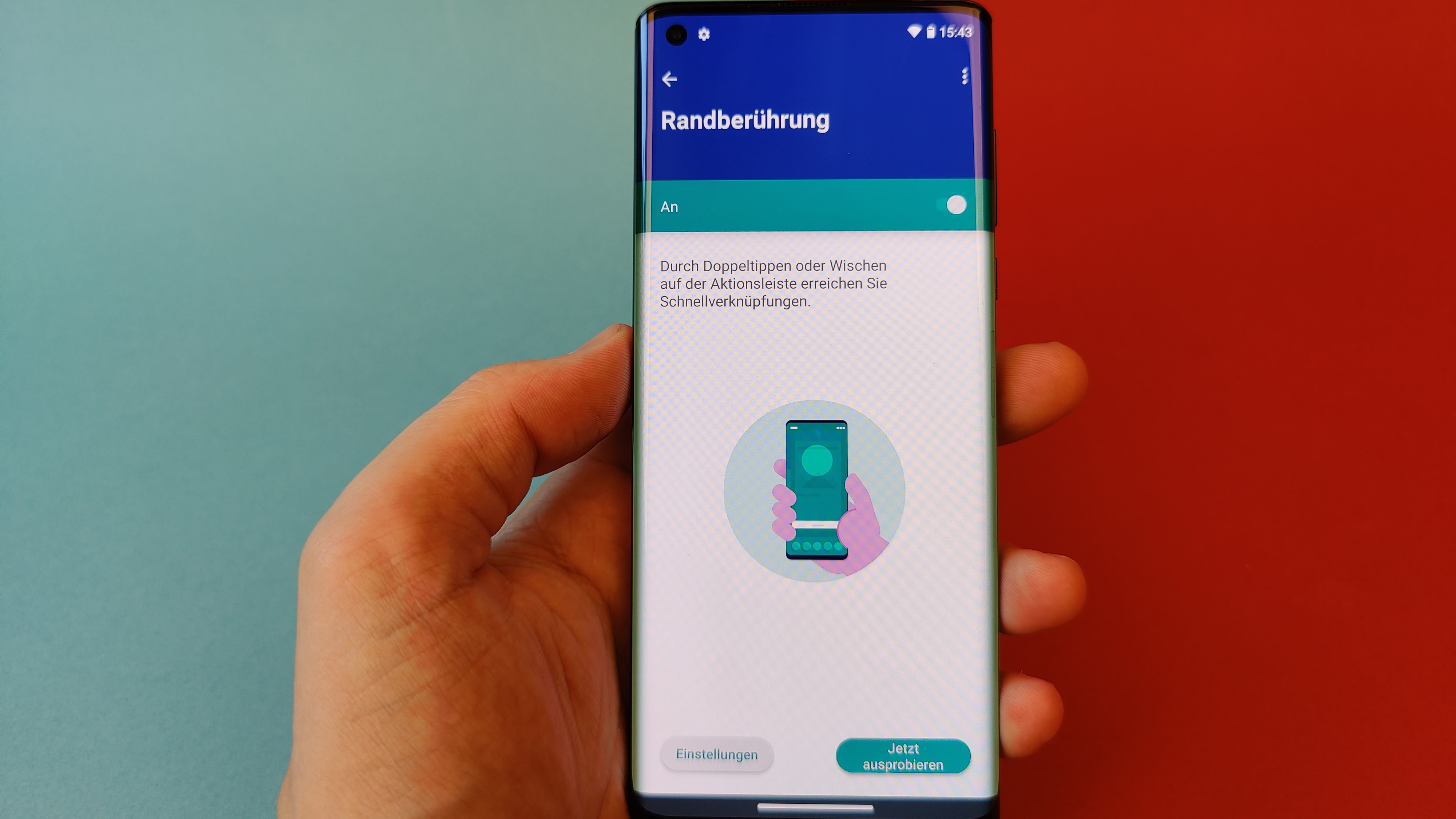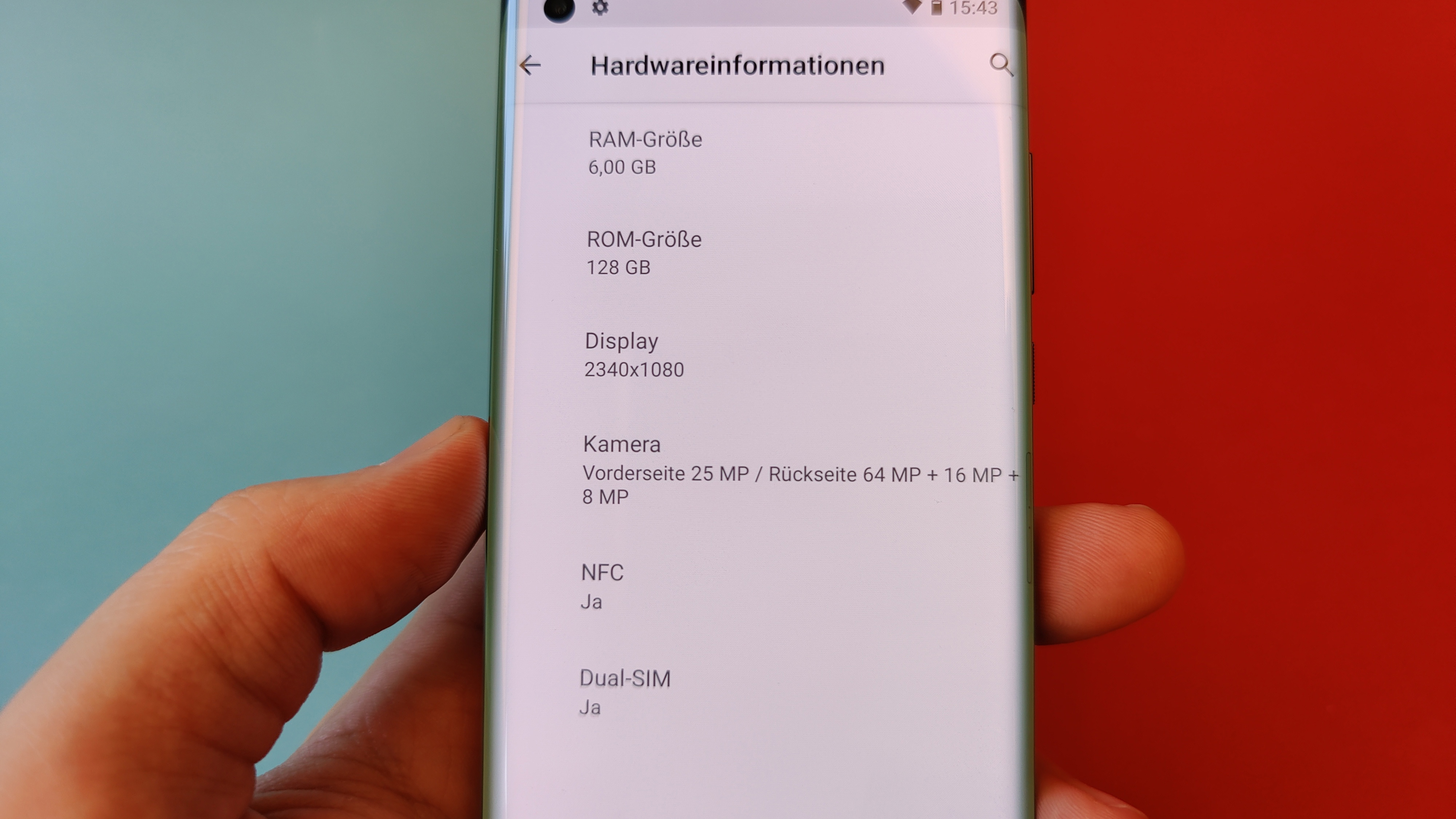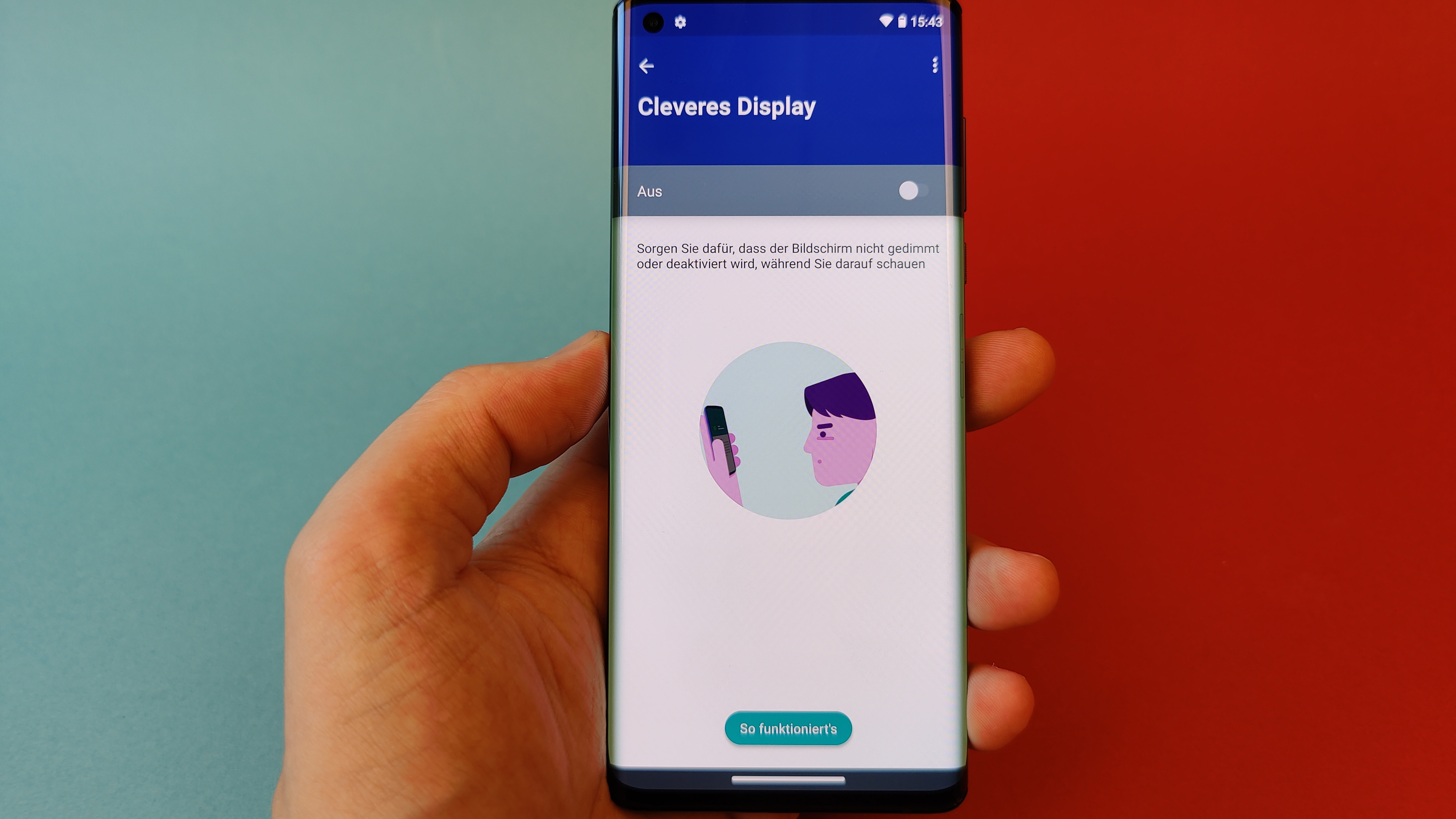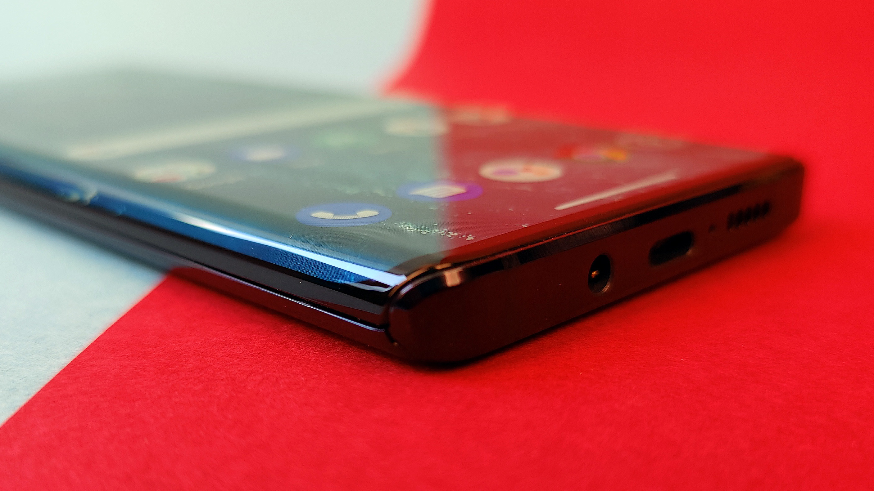 Das gilt auch für die restliche Darstellung – mit Ausnahme der Helligkeit. Denn während Kontraste, Schwarzwert und Blickwinkelstabilität wie fast immer bei OLED vorbildlich sind, könnte die Helligkeit – gemessen am Preis des Smartphones – ruhig etwas höher als die rund 420 cd/m² sein, die unser Messgerät ausgespuckt hat. Ein Beinbruch ist das aber nicht, auch wenn im Freien normalerweise zumindest bei direkter Sonneneinstrahlung eine Schattenspendende Hand parat sein sollte. Apropos Hand: Probleme mit ungewollten Berührungen des an den Seiten gebogenen Displays beim Halten in der Hand können wir nicht bestätigen. Wer dennoch auf Probleme stößt, sollte die im Lieferumfang befindliche Silikon-Schutzhülle ausprobieren, die sich recht weit um die seitlichen Kanten legt.