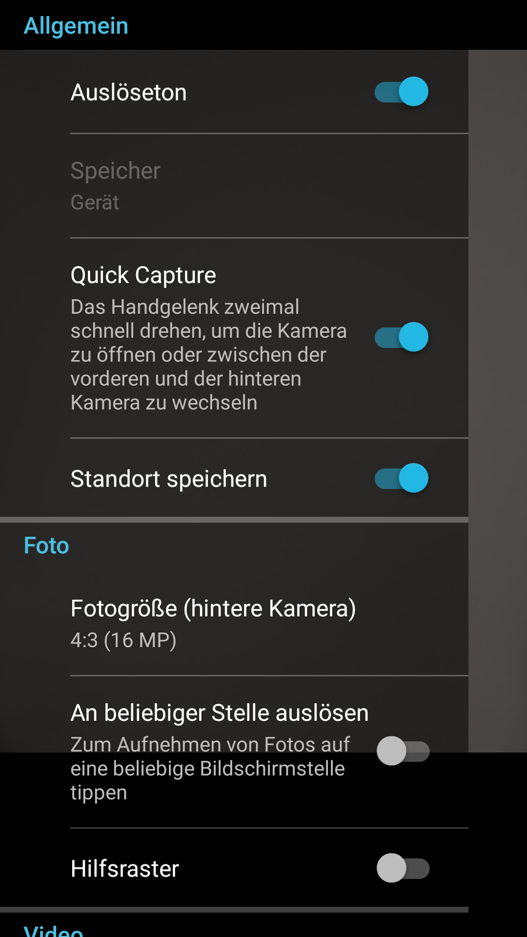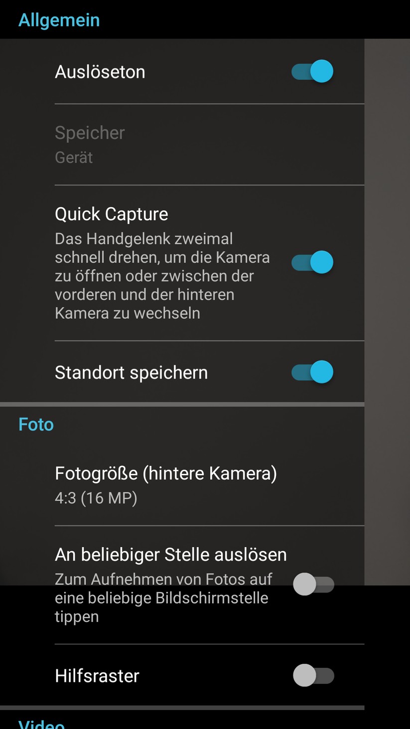 Die Software zum Knipsen zeigt sich auf das Nötigste reduziert. Zwar gibt es auch einen Profimodus mit Einstellungsmöglichkeiten für ISO, Weißabgleich und Co., ansonsten jedoch keinerlei Filter, nur HDR. Superpraktisch ist die Möglichkeit die Kamera mit einer schnellen Drehbewegung zu starten. Auf dieselbe Art und Weise wird bei geöffneter Kamera zwischen den beiden Linsen umgeschaltet.