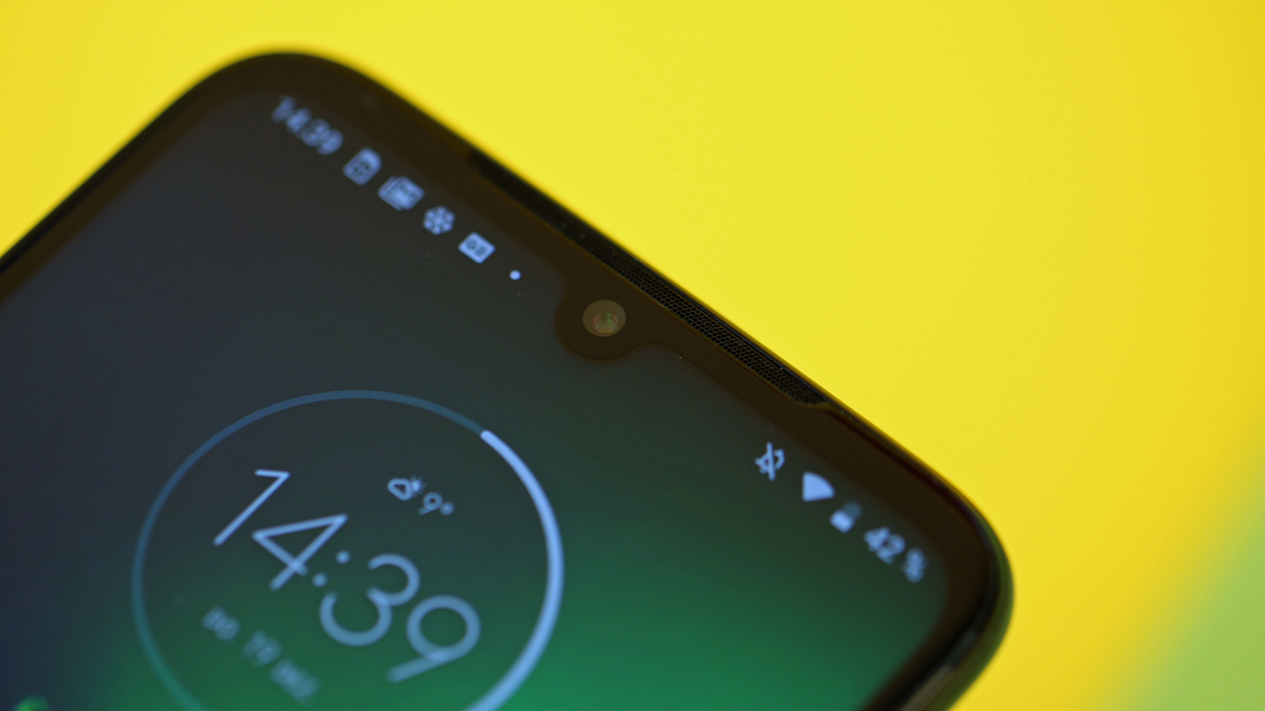2280 × 1080 Pixel stellt das Panel des Motorola Moto G8 Plus auf 6,3 Zoll dar. Nominell sinkt damit die Bildschärfe im Vergleich zum Vorgänger mit minimal kleinerem Screen bei fast gleicher Auflösung auf 400 Bildpunkte pro Zoll – was trotzdem für eine scharfe Darstellung absolut ausreicht. Auch bei den sonstigen Werten überzeugt das Mittelklasse-Smartphone. Die Helligkeit liegt laut unserer Messung bei knapp 450 cd/m² – kein Spitzenwert, aber eine leichte Steigerung im Vergleich zum Vorgänger. Dank ordentlicher Kontraste und Farben sollten damit auch im Freien keine großen Probleme bei der Ablesbarkeit aufkommen. Dafür sorgt zusätzlich auch die sehr gute Blickwinkelstabilität des IPS-LCD. Ein echtes Always-on-Display gibt es nicht, bei Bewegung des Phones werden aber die dafür typischen Informationen wie Uhrzeit, Akkustand und verpasste Nachrichten angezeigt – quasi ein Teilzeit-AOD.