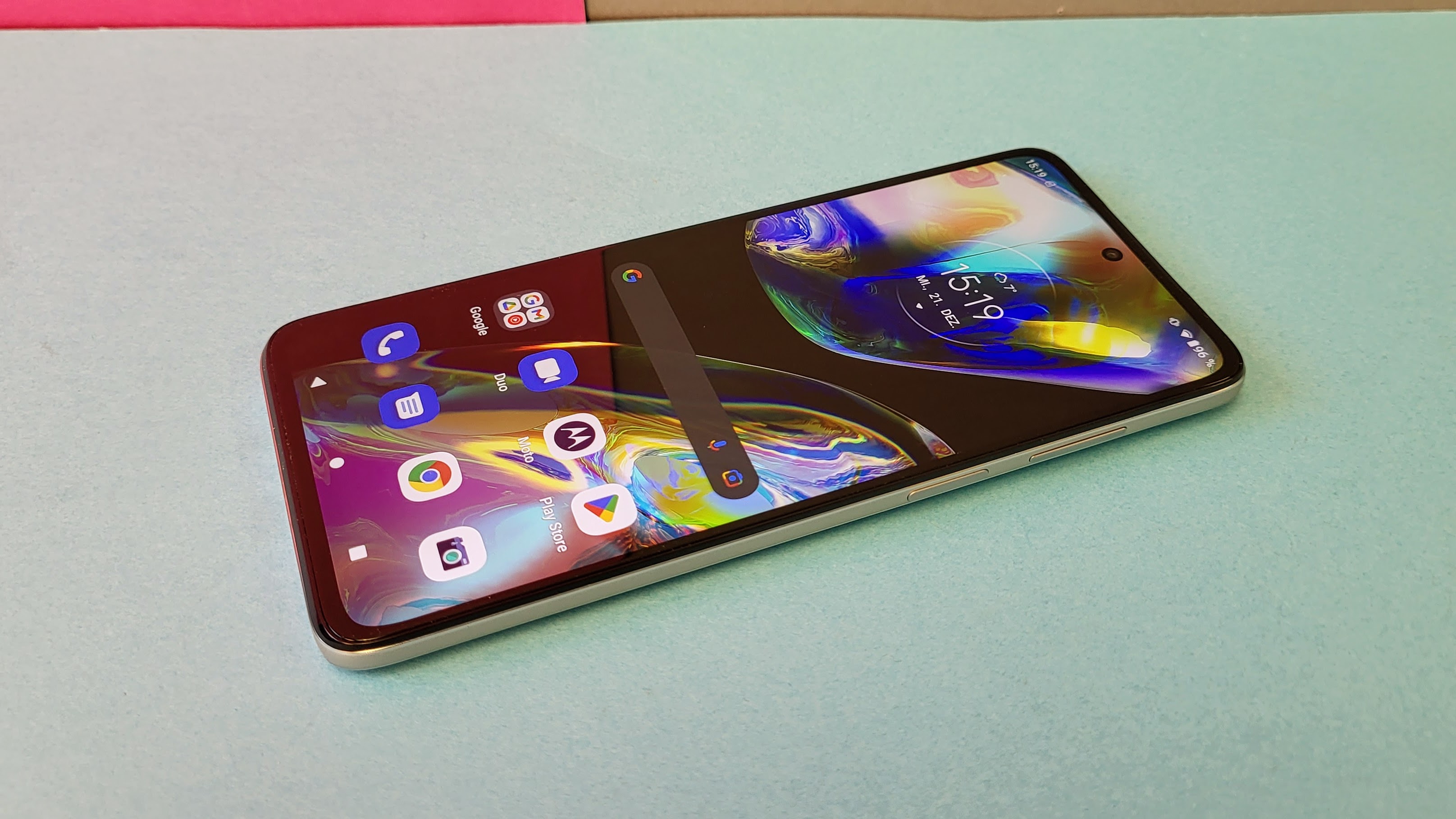 Das Betriebssystem basiert auf Android 12. Motorola hält sich wie gewohnt merklich zurück mit Anpassungen der Benutzeroberfläche oder Bloatware. So kommen weitgehend Google-Apps für Kalender oder Fotogalerien zum Einsatz. Vorinstalliert ist nur eine Moto-App, die das Handy erklärt sowie Tiktok.