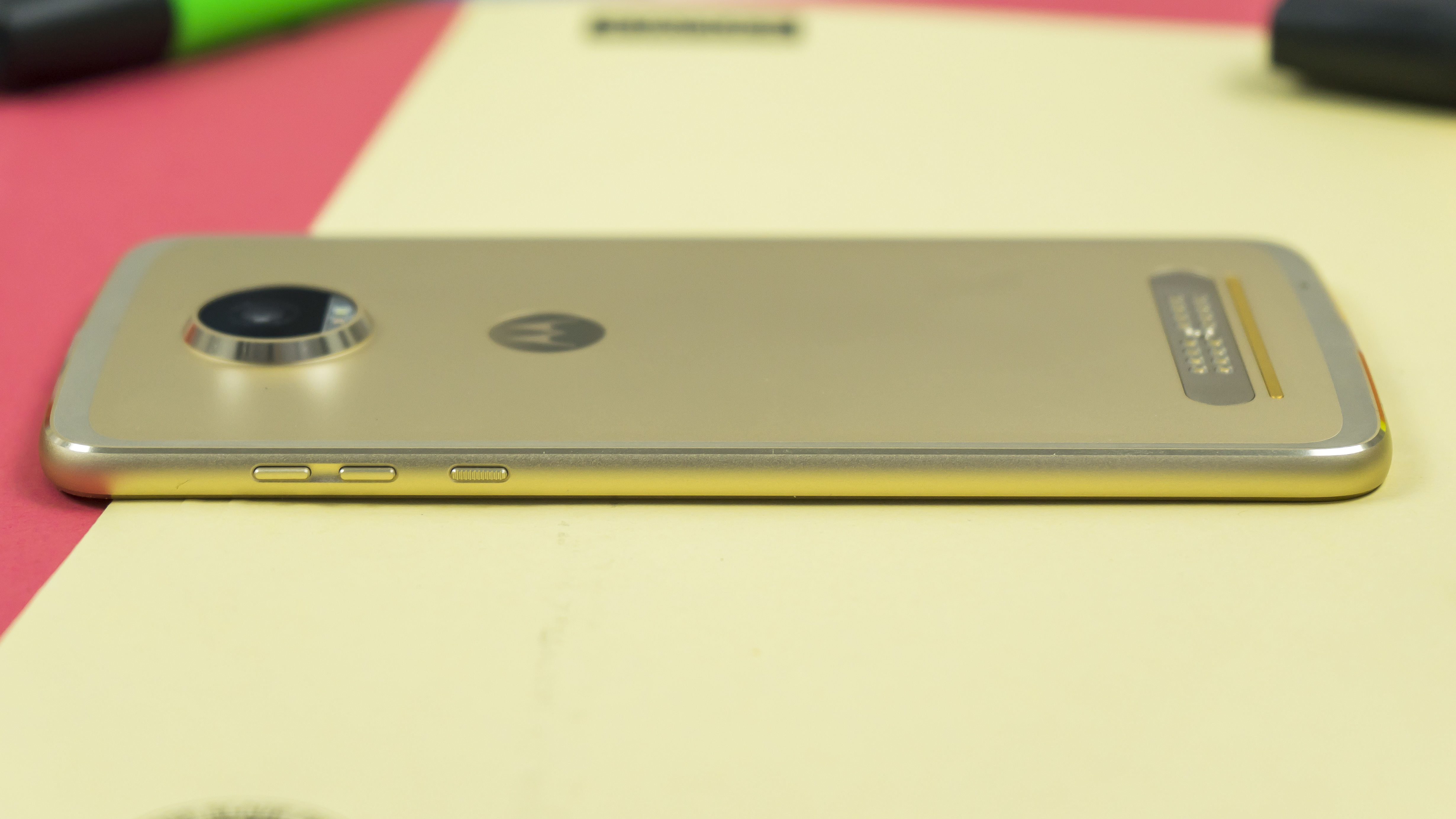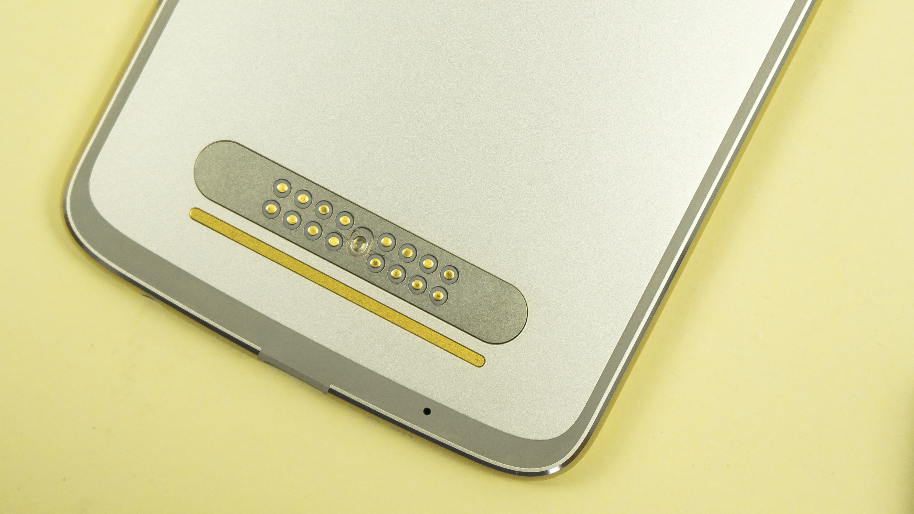 Der Korpus des Moto Z2 Play ist komplett aus Metall gefertigt. Dem Nutzer soll ein wohl solides Gefühl vermittelt werden. Dazu passen die Farben, in denen das Smartphone erhältlich ist: Gold und Silber. Durch das fest verschlossene Gehäuse aus einem einzigen Aluminiumblock gibt es keinerlei Spaltmaße oder Öffnungen. Deshalb gibt es nichts zum Knirschen oder Knarzen.