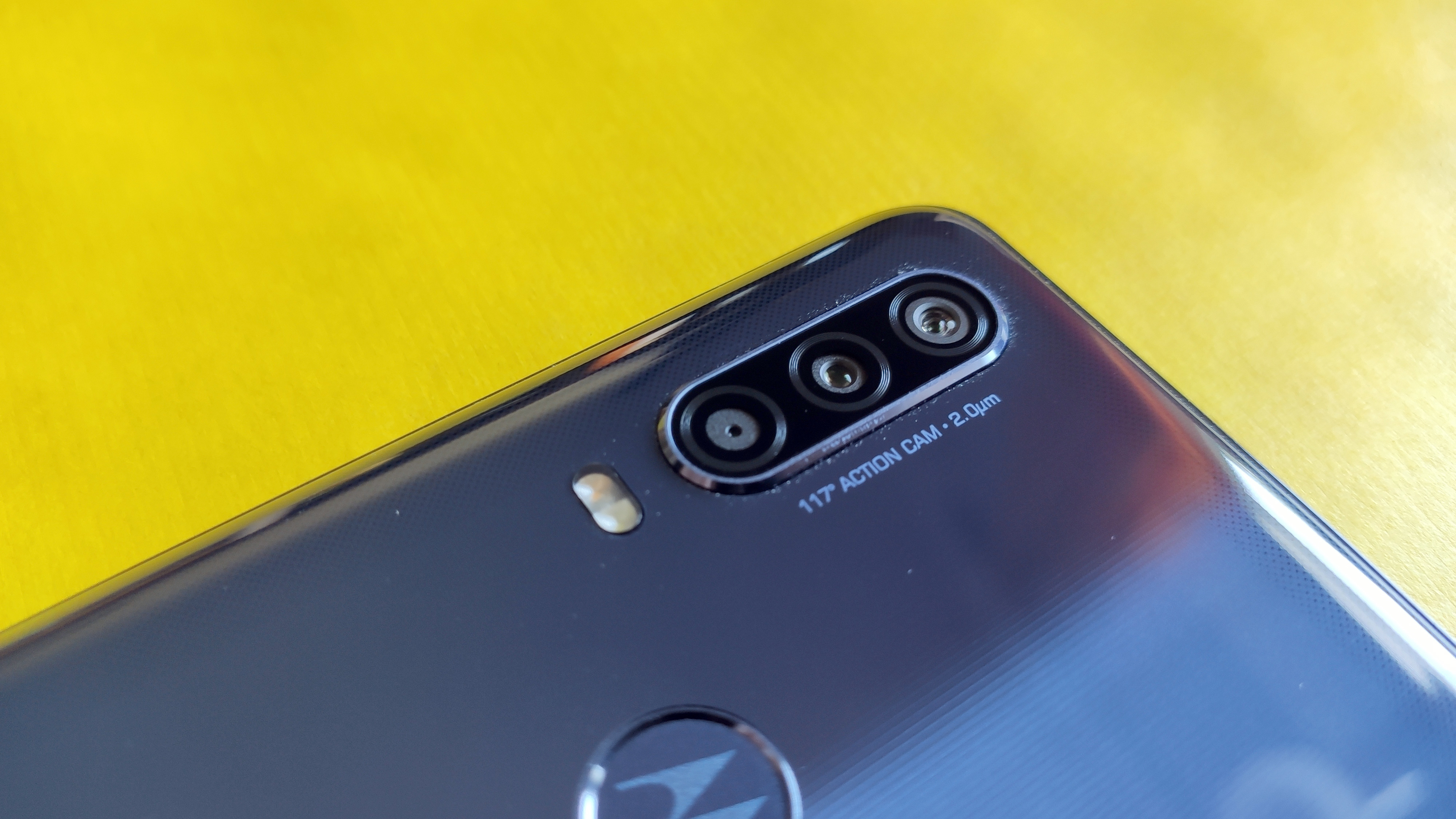 Die Hauptkamera des neuen Motorola One Action erlaubt Fotoaufnahmen mit bis zu 12 Megapixeln – wie das One Vision, könnte man meinen. Dort kommt es aber nur zu 12-Megapixel-Aufnahmen, weil eine 48-Megapixel-Kamera in der Grundeinstellung die Informationen aus je vier Pixel zu einem zusammenfasst, um bessere Qualität zu gewährleisten. Dieser Trick ist auch als Pixel Binning bekannt. Aufnahmen mit voller Auflösung sind dabei auf Wunsch auch möglich. Zudem bietet das One Vision eine Blende von f/1.7 statt f/1.8 und einen optischen Bildstabilisator, den das neue Modell nicht hat. Die zweite Kamera entspricht dem Modul im Schwestermodell. Sie bietet eine theoretisch Auflösung von 5 Megapixeln, ist aber ausschließlich zur besseren Tiefenerkennung für besseres künstliches Bokeh da. Neu ist hingegen die dritte Kameralinse. Sie erlaubt Ultraweitwinkel-Aufnahmen mit 117 Grad Blickfeld und 16 Megapixel.