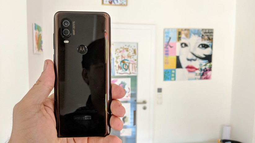 Die Rückseite aus Gorilla Glass kommt entweder in Blau oder Braun. Wir haben die braune Variante vorliegen, finden aber die blaue frischer. In der Mitte der Rückseite prangt das Motorola-Logo auf dem sehr gut funktionierenden Fingerabdruckleser. Das Kameramodul steht leicht aus dem Gehäuse hervor. Dadurch liegt das One Vision nicht plan auf und wackelt leicht. Die Taster auf der rechten Seite sind gut erreichbar und besitzen einen angenehmen Druckpunkt. Auf der Oberseite befindet sich neben einem Mikrofon zur Umgebungsgeräuschunterdrückung ein 3,5-mm-Klinkenanschluss für kabelgebundene Kopfhörer.