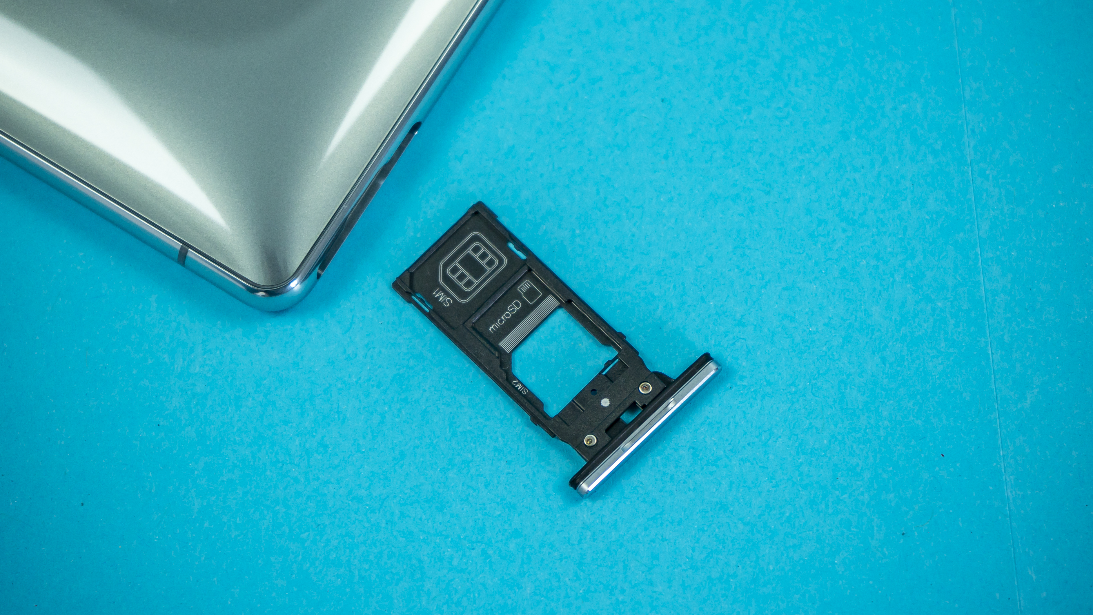 Der Speicher des Smartphones hat eine Größe von 64 GByte. Nach Abzug des Betriebssystems und der Software bleiben dem Nutzer 43 GByte übrig. Neben eine zweiten SIM- nimmt das Telefon eine Micro-SD-Karte auf. Jedoch muss sich der Nutzer entscheiden: Entweder Speicher erweitern oder Dual-SIM haben – beides klappt zeitgleich nicht. Beim Herausnehmen des SIM-Kartenhalters fährt das Telefon runter und automatisch wieder hoch. Ein nahtloses Entnehmen ist somit nicht möglich. Welche Speicherkarte die beste für Android ist, hat TechStage ausführlich getestet: Kaufberatung & Test: Welche MicroSD-Karte für Android?