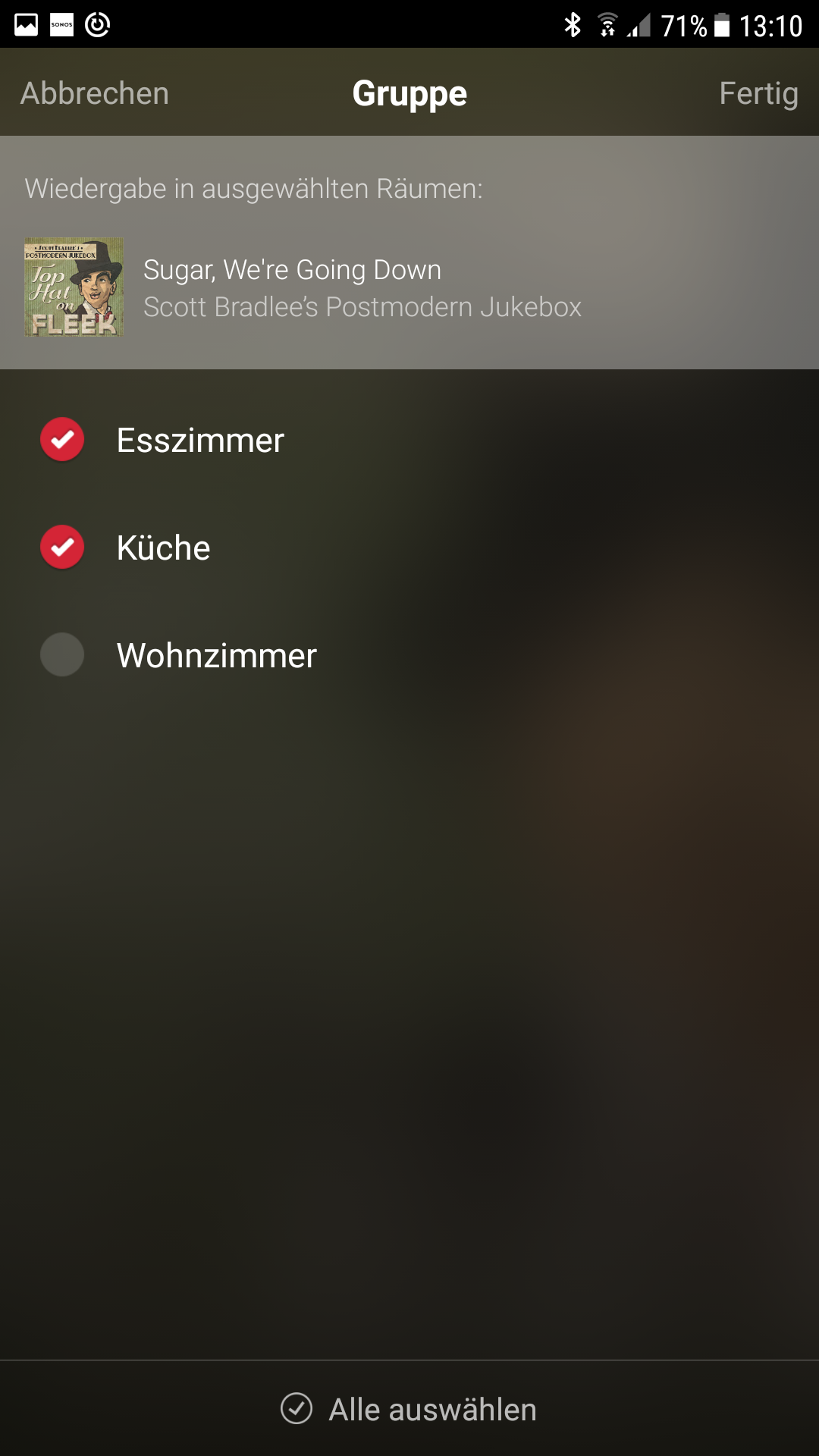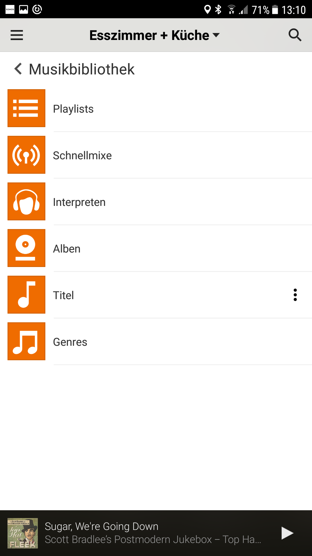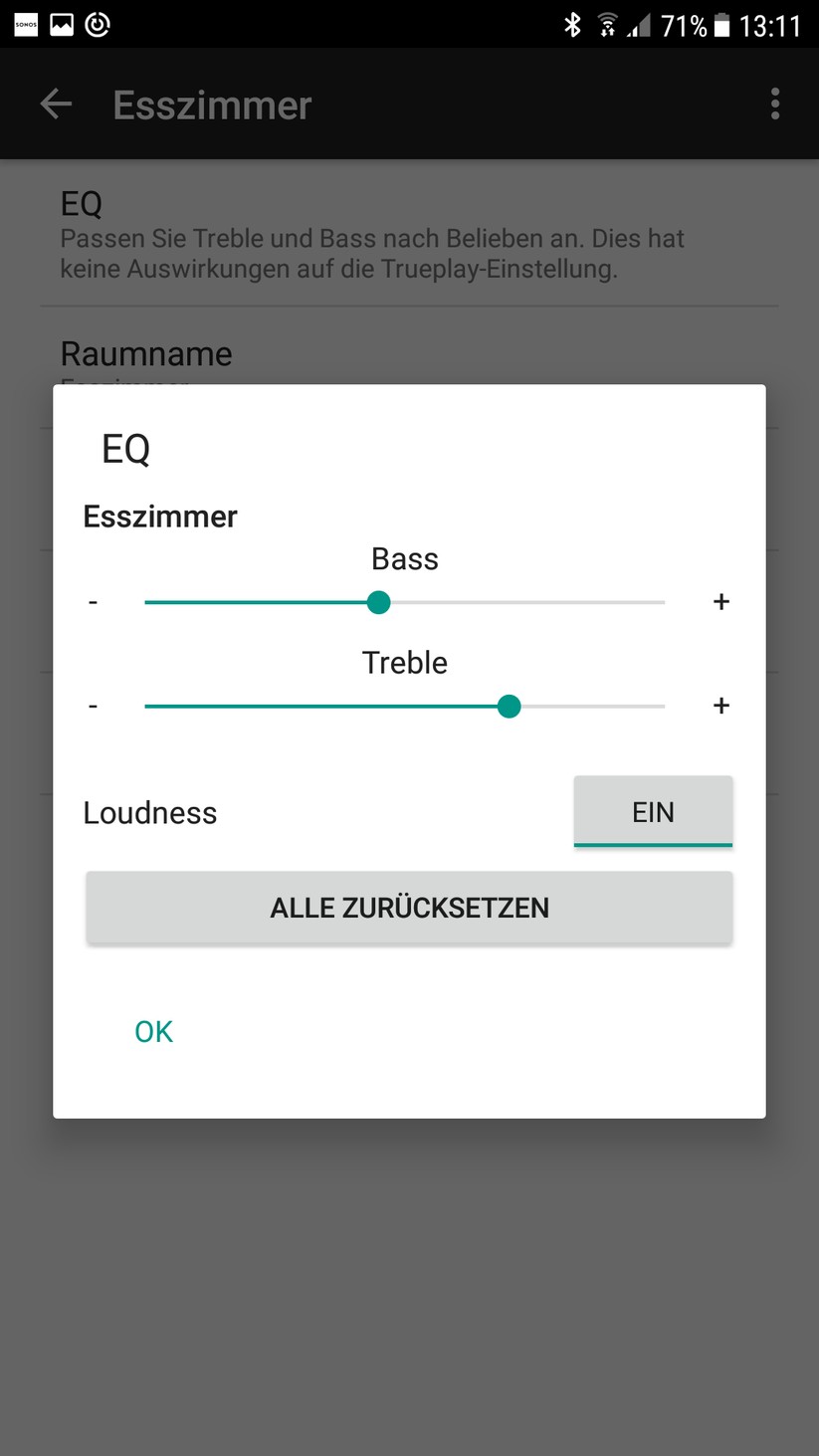 Die App zeigt sich bei der Auswahl der Musikquellen übersichtlich und intuitiv bedienbar. Die Auflistung von Medien erfolgt nach den üblichen Kategorien Künstler, Album, Genres & Co. und natürlich gibt es auch eine Suchfunktion. Innerhalb der Player-Ansicht ist die Raumauswahl möglich. Dort ist es auch möglich Gruppen zu bilden, um dieselbe Musik in mehreren Räumen synchron abzuspielen. In der App finden sich weiterhin die Möglichkeit Stereopaare zu bilden und ein Zweiband-Equalizer.