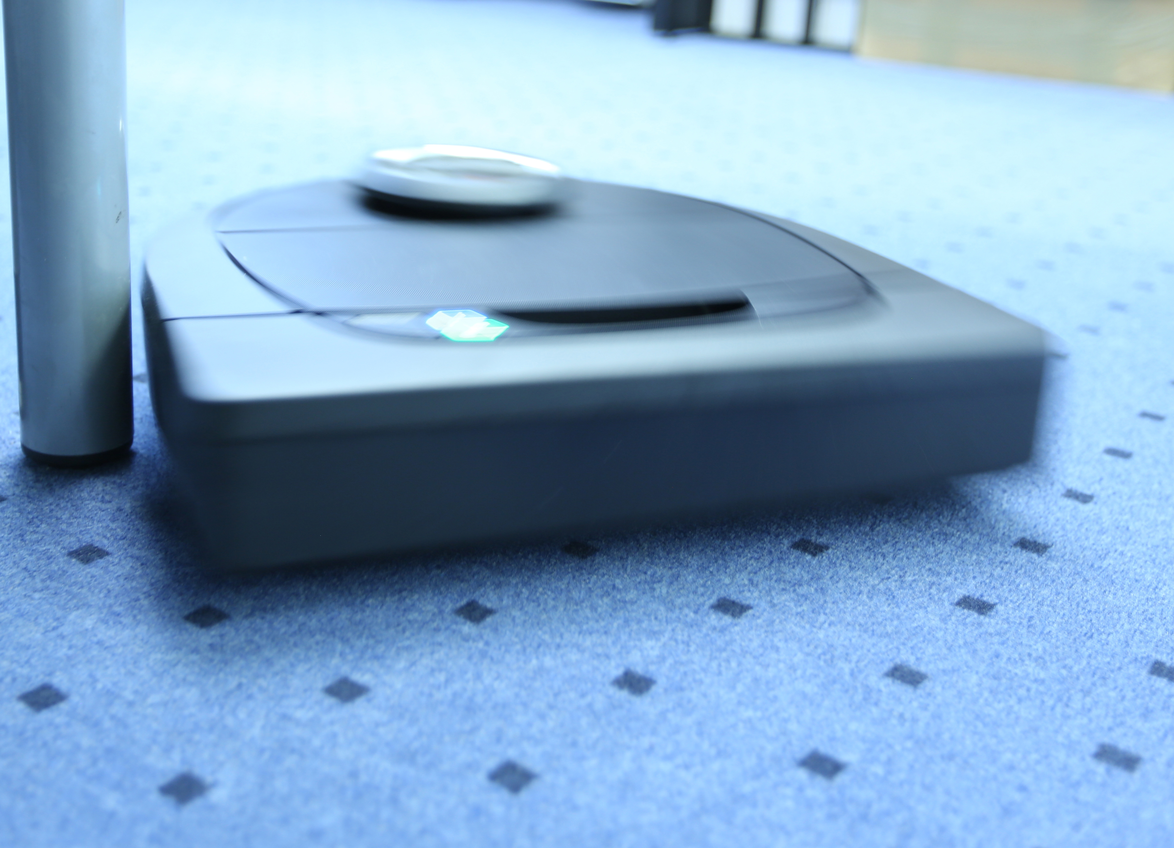 Der Arbeitsablauf des Neato Roboters sieht folgendermaßen aus: Zuerst fährt der Staubsauger die Außenwände des Raums ab, um dessen Grundriss zu scannen. Anschließend beginnt er den Raum systematisch abzufahren. Zufallsprinzip war gestern. Was der Botvac D5 macht, sieht tatsächlich recht koordiniert aus. Stößt der Sauger auf einen Gegenstand, beispielsweise ein Tischbein, umkreist er dieses in einem sehr engen Radius und macht dann erst weiter. Bei unserem Test haben wir Papierschnipsel am Boden verteilt, um zu sehen, wie gründlich der Roboter saugt. Insgesamt war das Ergebnis überraschend gut. Einzig der nach hinten gerichtete Luftstrom kann zu kleinen Problemen führen. So hat unser Sauger beim drehen manchmal einige Papierschnipsel an Stellen gepustet, die er eigentlich schon gesaugt hatte. Diese Papierschnipsel bleiben dann über, da der Botvac D5 versucht jede Stelle nur einmal abzufahren. Auch schmale Ecken oder enge Zwischenräume zwischen Wand und Sofa sind ein Problem für die Roboter. Die Bauhöhe von 10 cm schränkt die Bewegungsfreiheit zusätzlich ein. Das Sofa in unserem Testraum ist nur etwa 9 cm hoch, wodurch sich der Botvac D5 beim ersten Testlauf festgefahren hat. Dies meldet der Roboter allerdings brav per Push-Nachricht und bittet um Hilfe. Um das Problem zu umgehen, haben wir einfach das Magnetband vor die Couch gelegt. Der Akku des Neato hält gut 1,5 Stunden lang durch, bevor der Sauger wieder an die Ladestation fährt. Für unser Testbüro mit circa 25 Quadratmetern, braucht der Roboter 25 Minuten. Laut Hersteller eignet sich der Botvac D5 für Wohnungen bis zu 150 Quadratmetern.