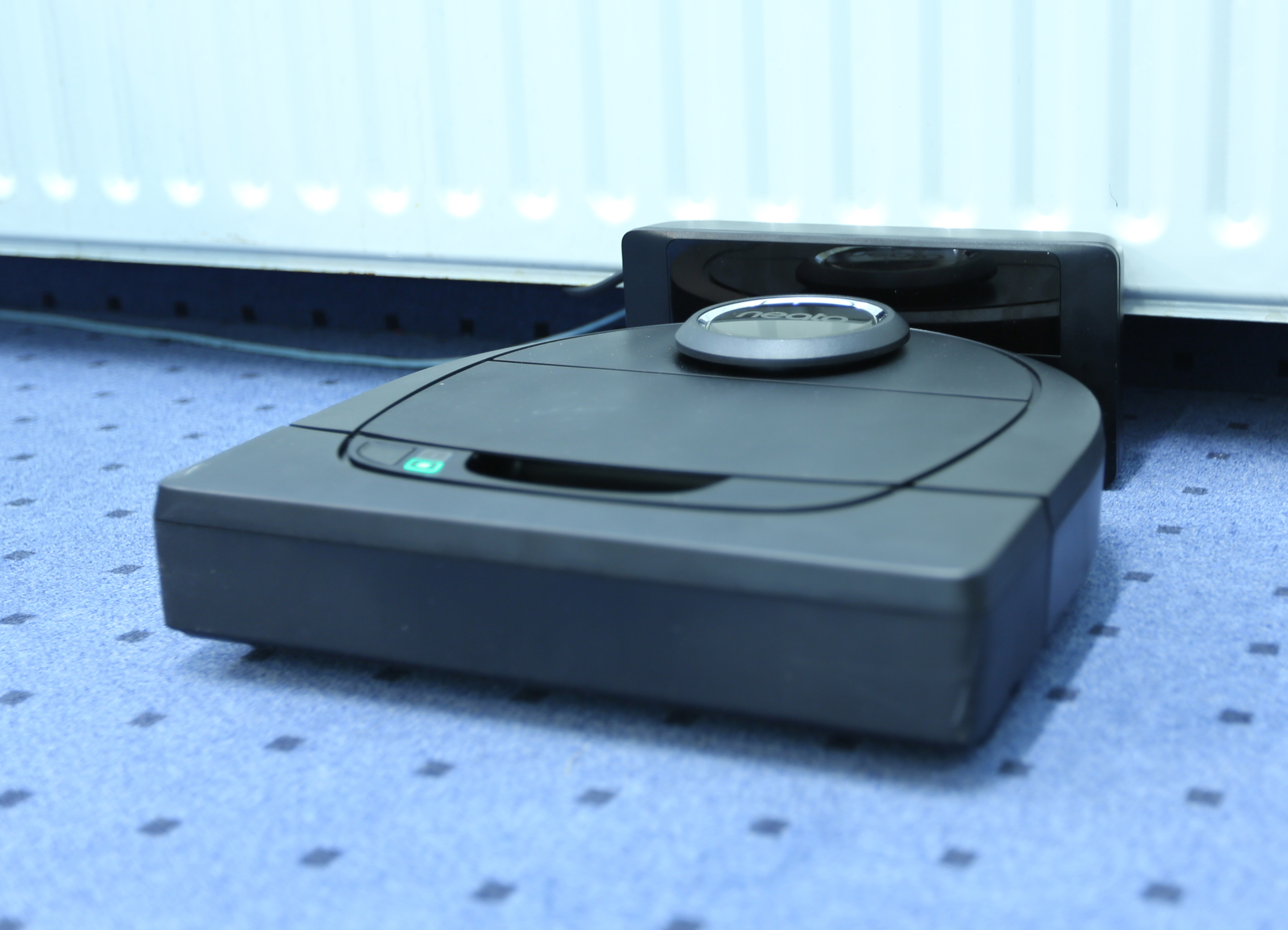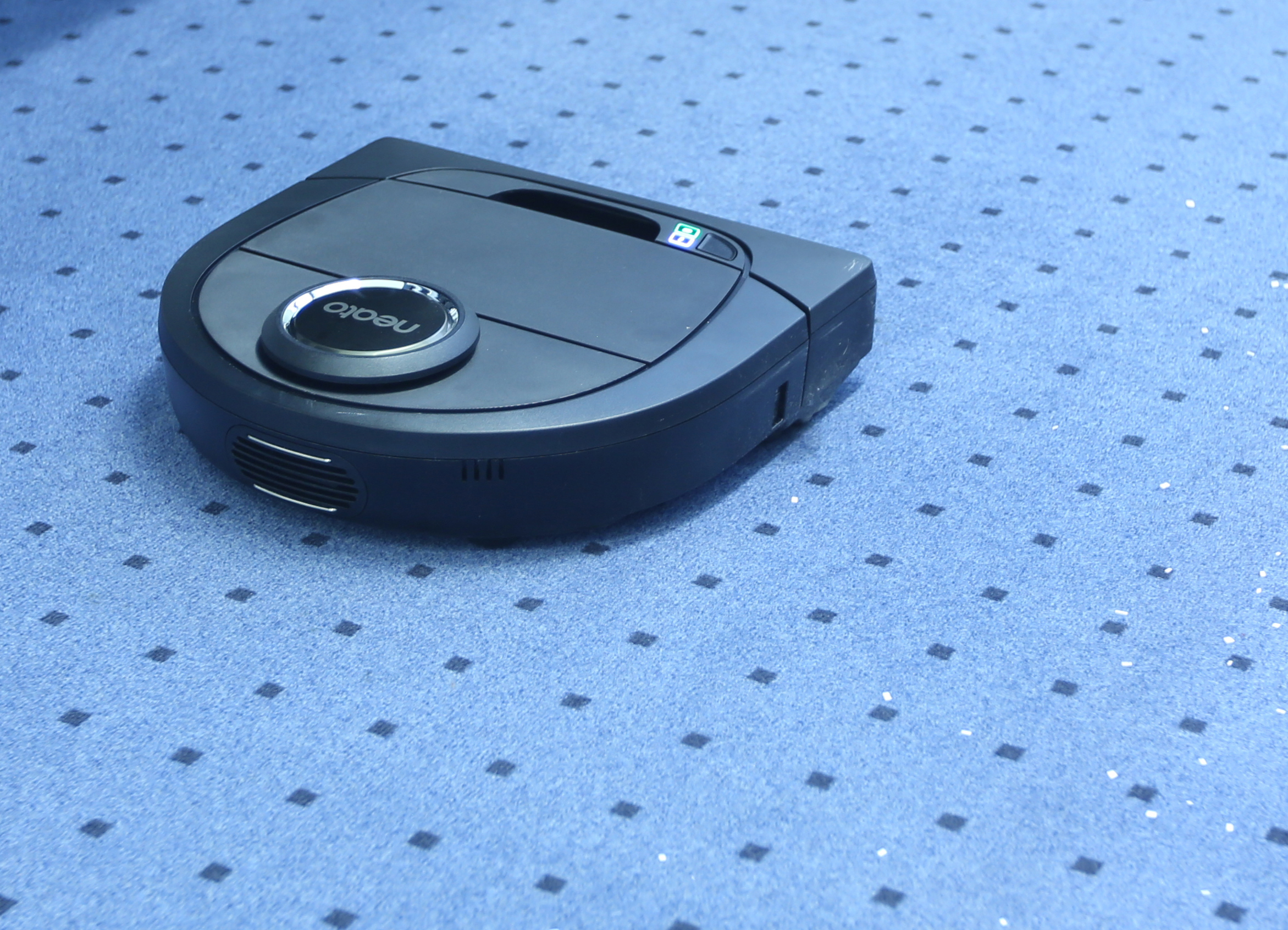 Unser Testmodell Neato Botvac D5 hat lediglich einen einzigen Bedienknopf und zwei Statusleuchten. Ein Display oder eine Fernbedienung sind nicht vorhanden. Das ist dank WLAN-Anbindung aber auch nicht nötig. Zur Konfiguration brauchen wir nur ein Smartphone und die kostenlose Neato App für iOS oder Android . Aber auch ohne App ist der Neato einsetzbar; allerdings fehlen dann einige Funktionen, wie beispielsweise die komfortable Zeitsteuerung.