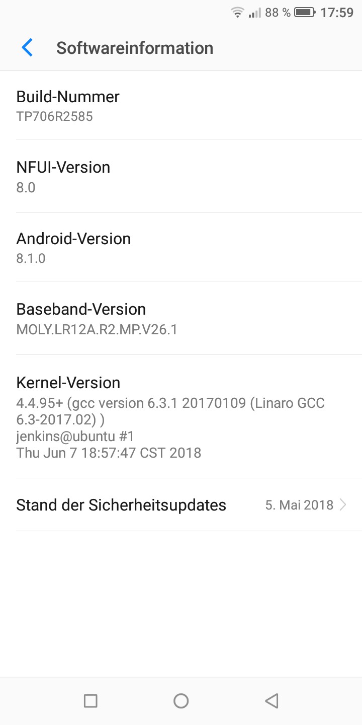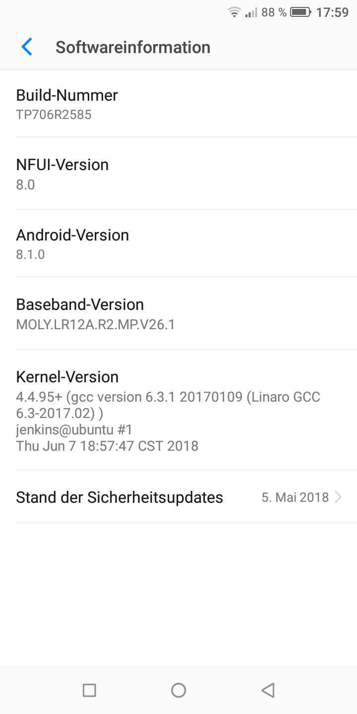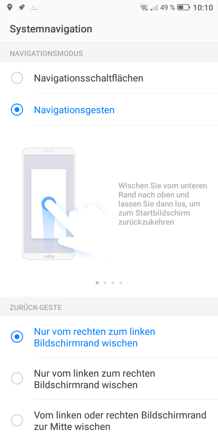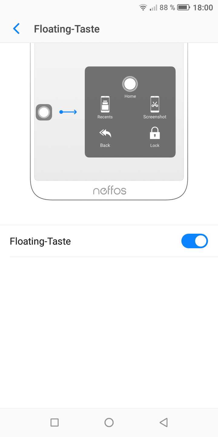 Auf dem Neffos C9A läuft Android in zum Testzeitpunkt recht aktueller Version 8.1.0 mit Google-Sicherheitspatch vom 05. Mai zum Testzeitraum. Der Hersteller nimmt optisch einige Änderungen am Google-Betriebssystem vor, implementiert einige Zusatzfeatures in die Systemeinstellungen und gibt der Software den Namen NFUI. Die softwareseitigen Änderungen beschränken sich auf die Optionen Gesten und intelligente Unterstützung und Systemnavigation . Unter Gesten und intelligente Unterstützung finden sich unter anderem Optionen wie die Möglichkeit, das Display mit einem Doppeltipp einzuschalten, oder Apps und Systemfunktionen durch das Zeichen von Buchstaben auf den Bildschirm zu starten. Das Optionsmenü Systemnavigation erlaubt das Tauschen der Navigationsschaltflächen und bietet alternativ Navigationsgesten, die die On-Screen-Buttons ersetzen.