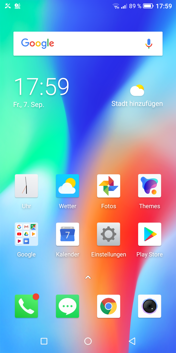 Dies ist beim Neffos C9A jedoch nicht der Fall: Schon die Ränder links und rechts sind im Vergleich mit vielen aktuellen Smartphone-Modellen nicht besonders schmal, oben und unten sind die Ränder recht groß. Was Farbwiedergabe und Blickwinkelstabilität angeht, macht das Panel des Neffos C9A jedoch einen guten Job. Das Display leuchtet ausreichend hell und spiegelt nicht übermäßig stark. Auf Fingereingaben reagiert der Bildschirm präzise.