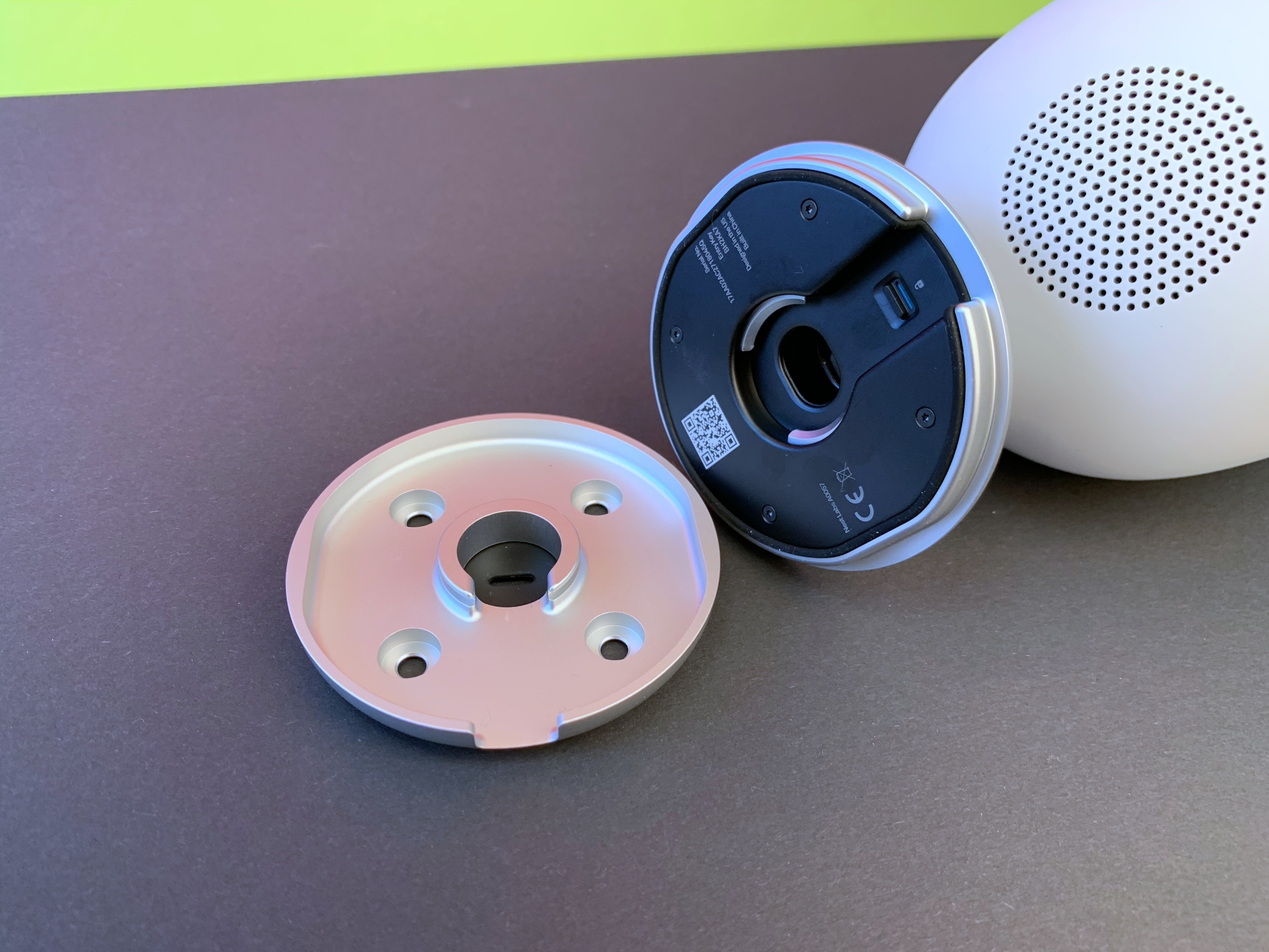 Auf der Hinterseite der Kamera hat Nest die Halterung mit 360-Grad-Schwenkkopf verbaut. Zudem überlässt Nest dem Anwender, ob er die Kamera mit einer Innen- oder Außensteckdose verkabelt, denn das Netzteil der IQ ist wasserfest.