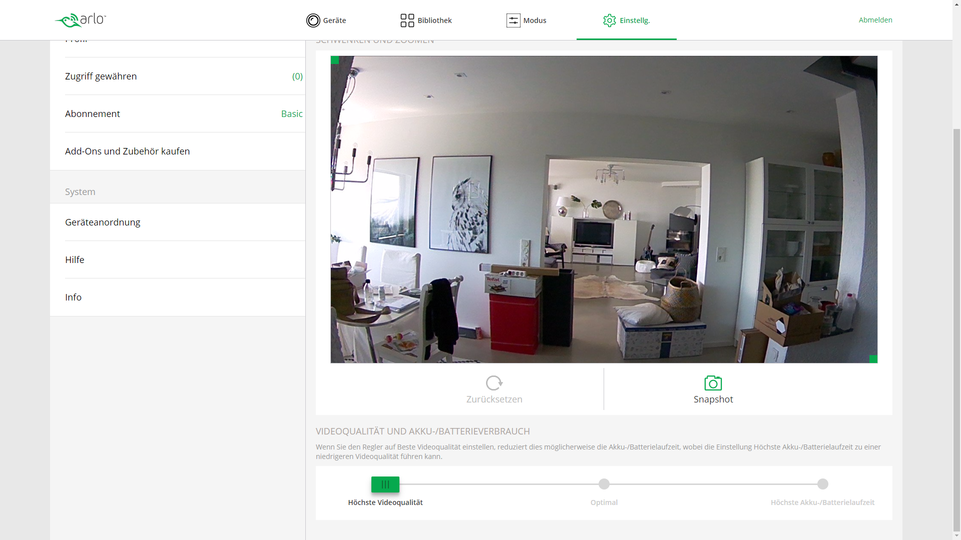 Der Nutzer muss sich keine Gedanken machen, dass er die Kamera per im Lieferumfang befindlichen Netzteil alle paar Tage wieder aufladen muss. In unserem Testzeitraum von knapp zwei Tagen – mit nachvollziehbarer Weise ordentlich Action vor der Linse – entleerte sich die Batterie kaum. Den aktuellen Akkustand sieht der Nutzer in der App und im Webinterface. Der Hersteller gibt die Laufzeit mit bis zu drei Monaten an.