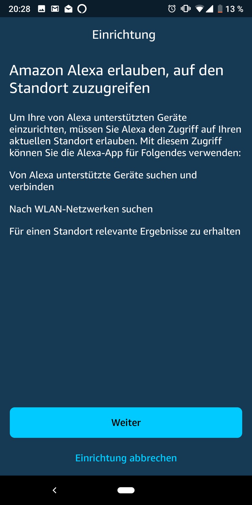 Amazon hat die Einrichtung des Echo Dots vereinfacht. Während der Alte ein eigenes WLAN-Netzwerk aufbaute, mit dem man sich verband um die Zugangsdaten für das häusliche WLAN einzugeben, muss man beim neuen lediglich die Alexa-App öffnen. Sie erkennt nach der Erlaubnis, den Gerätestandort abzurufen, den smarten Lautsprecher über Bluetooth. Wenn die Zugangsdaten für das WLAN bereits bei Amazon hinterlegt sind, fällt auch diese Eingabe weg.