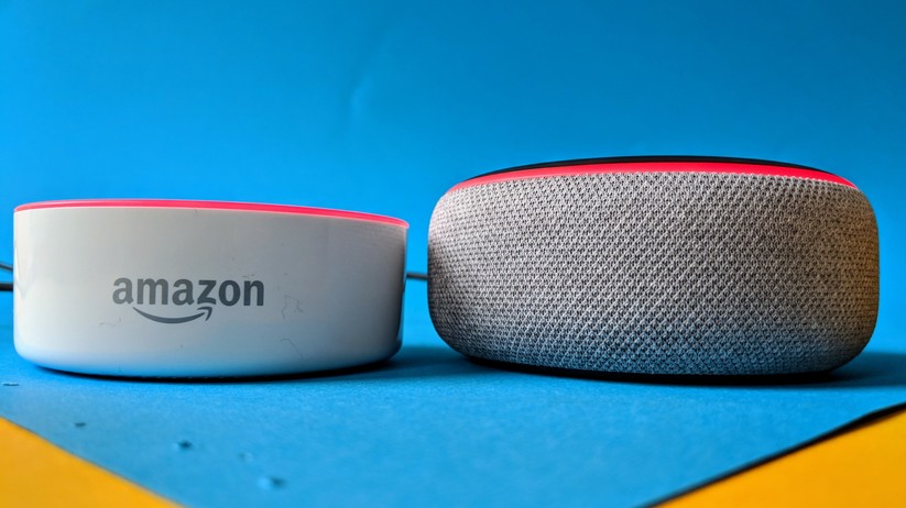 Wir testeten die Empfindlichkeit, indem wir in einer ruhigen Umgebung etwa sieben Meter von beiden entfernt das Erkennungswort Alexa flüsterten. Erstaunlich, wie gut die Mikrofone in beiden Geräten reagierten und wie genau der LED-Ring die Richtung der Geräusche angab. Beide Geräte reagierten gleich gut auf das Erkennungswort, Abweichungen gab es selten und waren ausgeglichen.