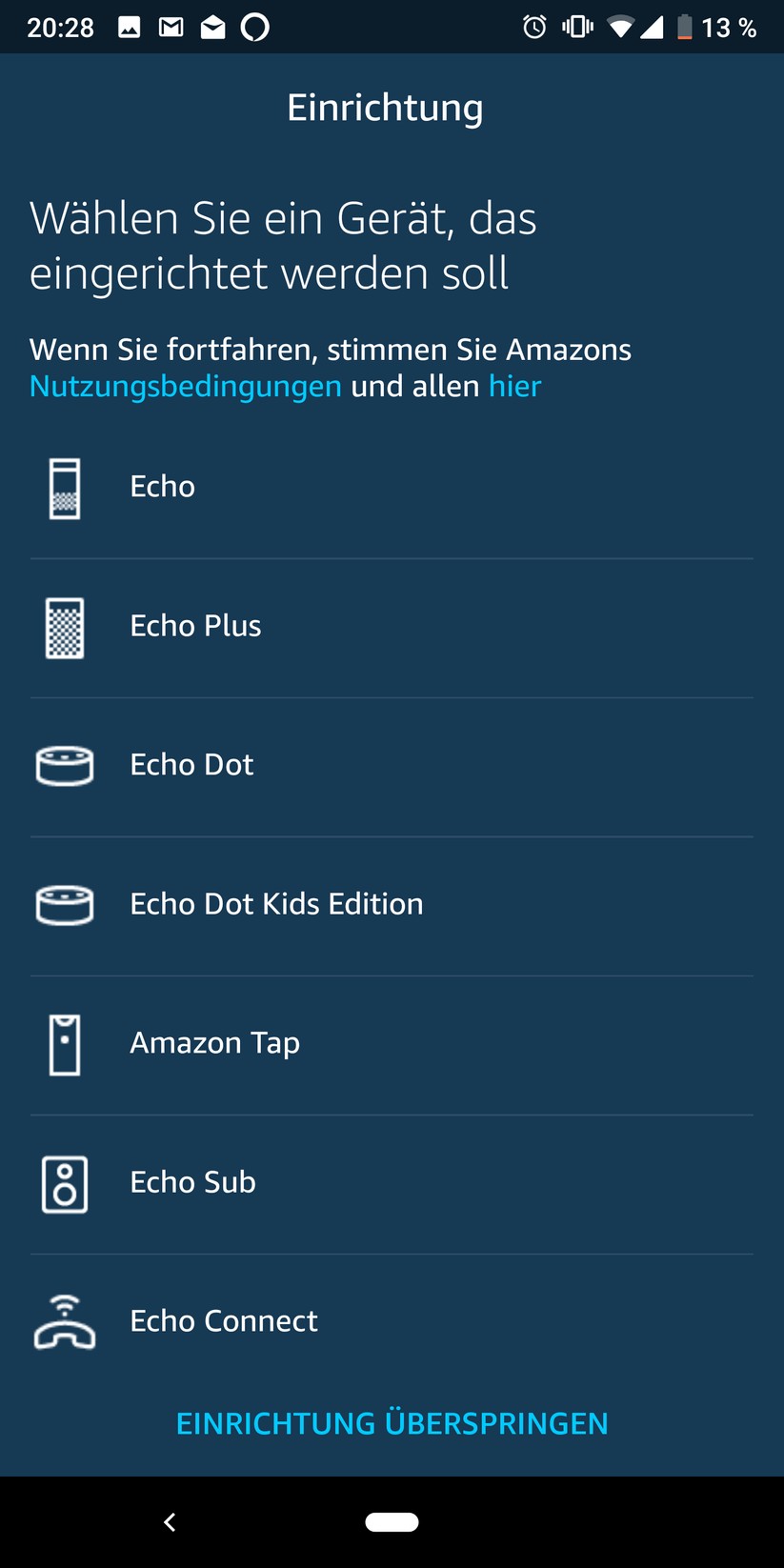 Im nächsten Schritt fragt die App, ob ein externer Lautsprecher über Kabel (3.5-mm-Klinkenanschluss) oder über Bluetooth verbunden werden soll. Die Bluetooth-Verbindung funktioniert auch umgekehrt, der Echo Dot gibt auf Wunsch wie ein klassischer Bluetooth-Lautsprecher Musik vom Handy wieder. Das kann auch der Vorgänger, macht aber beim Neuen dank des besseren Lautsprechers mehr Sinn. Bindet man keinen externen Lautsprecher oder eine Stereoanlage an, nutzt der Dot den internen Speaker.