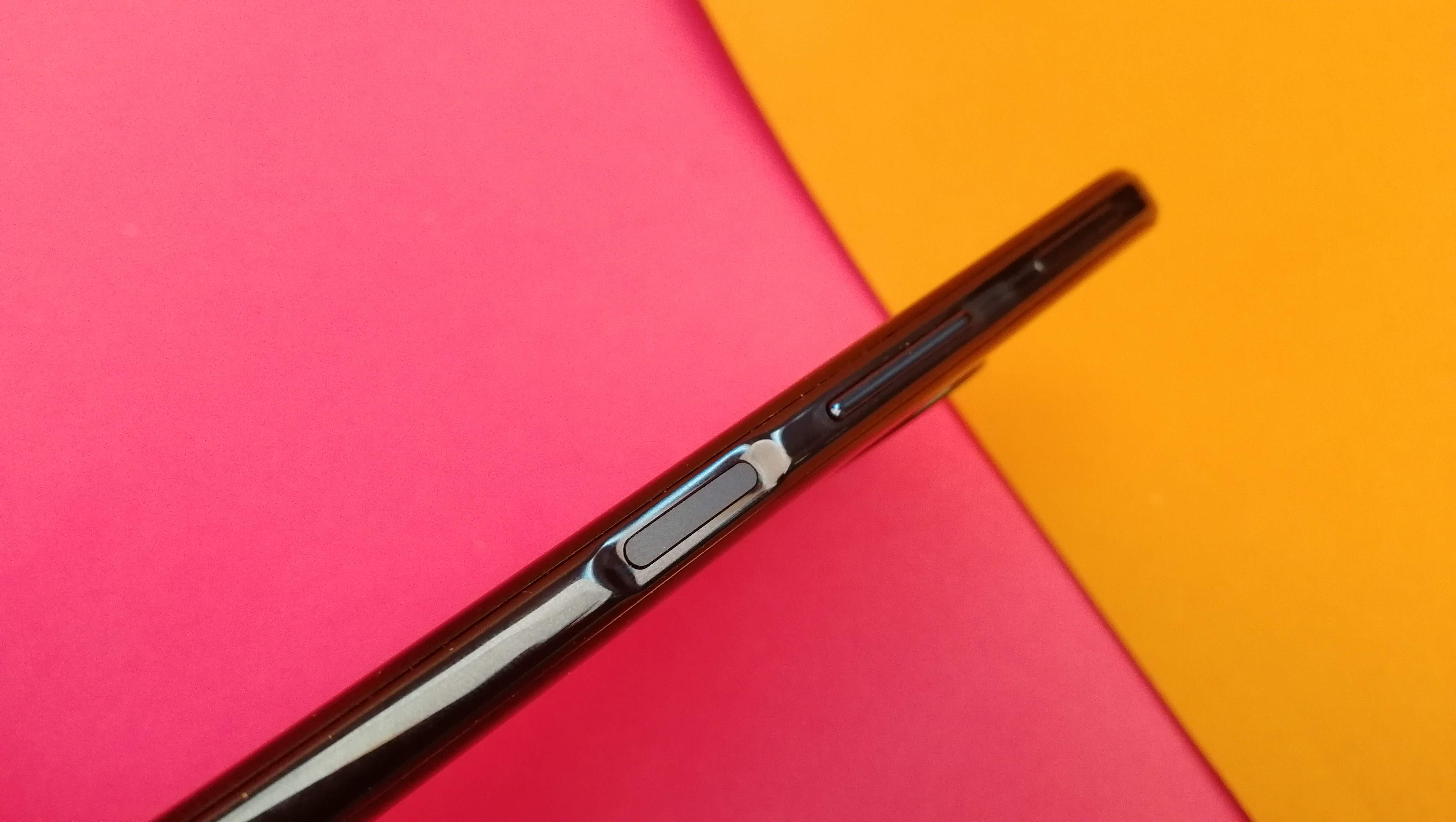 Die Einschalttaste mit integriertem Fingerabdrucksensor findet man neben den Tasten für Lautstärke auf der rechten Seite. Links befindet sich die Taste für den Google Assistant. Auffällig ist die Ausbuchtung auf der Rückseite. Darin verbirgt sich das Vierfach-Kamera-System mit Carl Zeiss-Optik.