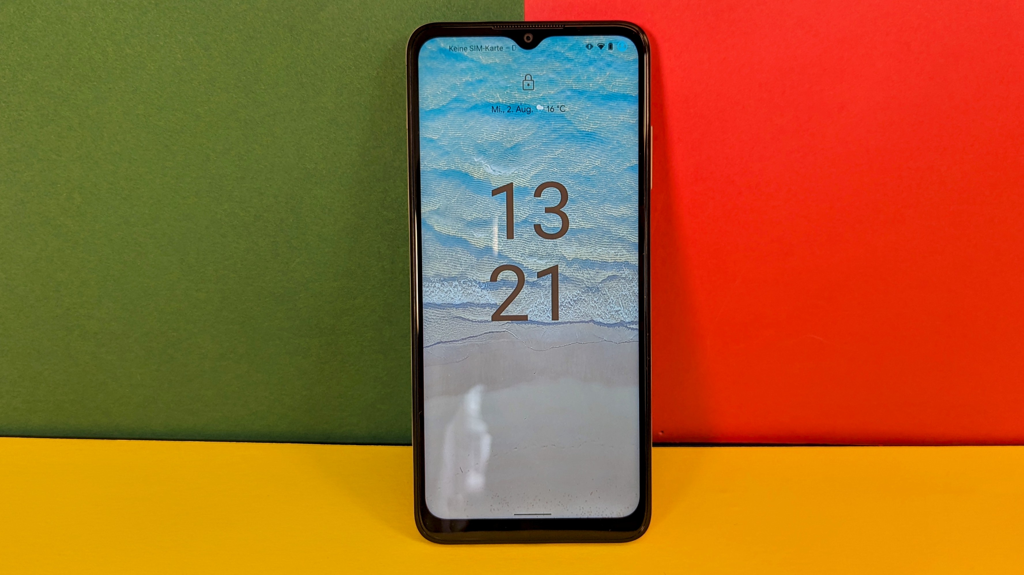 Die Vorderseite ist ähnlich wie beim Vorjahresmodell. Oben sitzt eine schmale Waterdrop-Notch für die Selfie-Kamera, was heutzutage nicht mehr ganz so ansehnlich ist. Viele Hersteller setzen mittlerweile auch im günstigen Bereich auf eine Punch-Hole-Notch, also kleine kreisrunde Aussparungen. Die Display-Ränder sind ringsherum nicht gleichmäßig, gerade das untere Kinn ist sehr breit. Die Ecken sind abgerundet. Dadurch sind Bildschirminhalte (falls dort Dinge angezeigt werden) leicht abgeschnitten, was zwar keinen Einfluss auf die Nutzbarkeit hat, aber einfach nicht so schön wirkt.