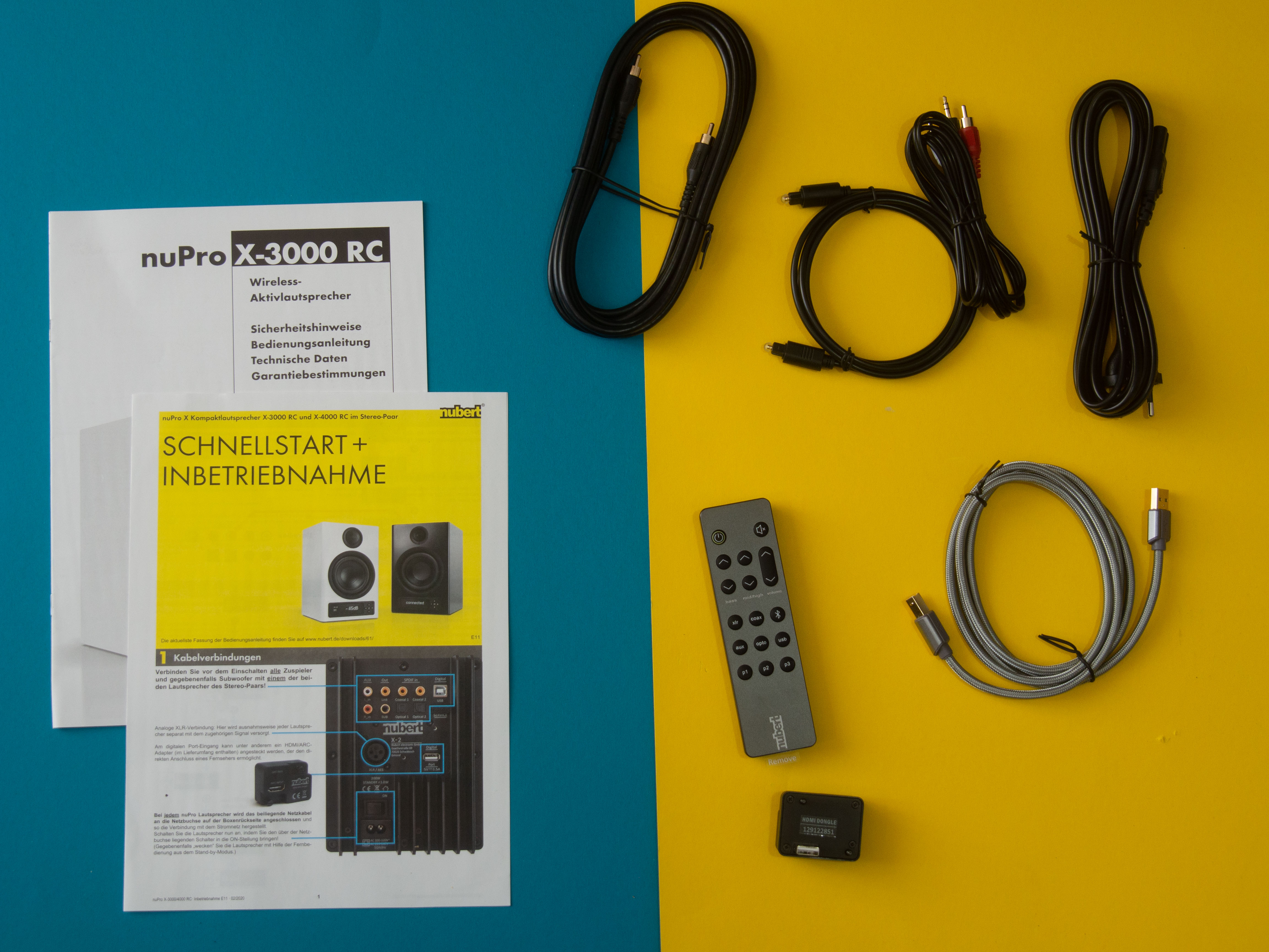 Die Einstellmöglichkeiten, von Anzeige, Pegel über Klang, Übergangsfrequenzen bis zu Betriebsarten, Stereo oder Mono und einem Mini-Equalizer sind so zahlreich, dass auf eine Auflistung verzichtet werden soll – sie können sich mit Updates ohnehin noch erweitern. Positiv fällt auf, dass Nubert ausreichend Verkabelung mitliefert, um sofort etwas anschließen zu können: Ob analog, digital, USB oder optisch, die passenden Strippen sind bereits dabei und auch das beiliegende Netzkabel ist lang genug, um die Boxen ohne Verlängerungen vernünftig aufstellen zu können.