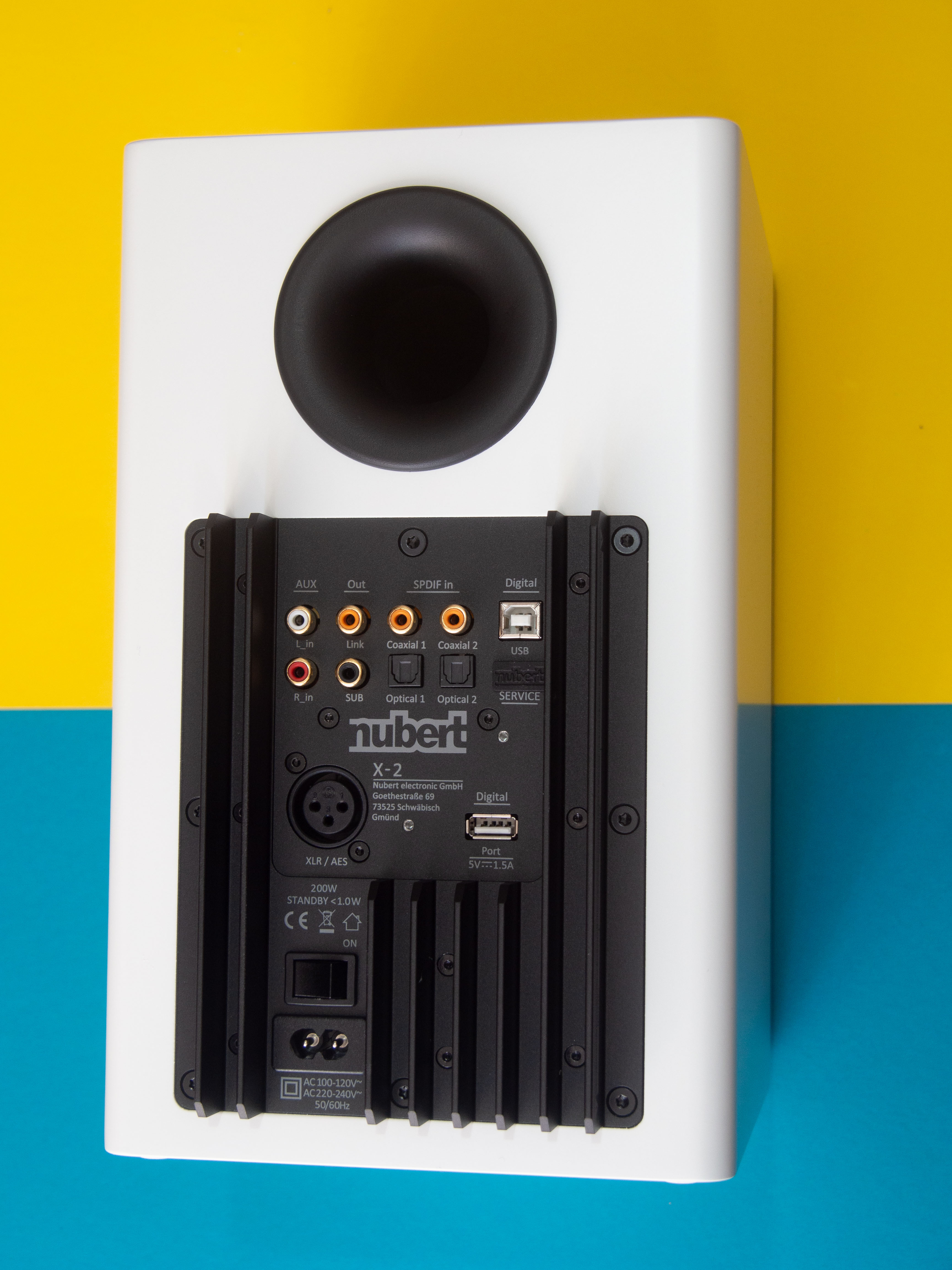 Der USB-Eingang verarbeitet gegenüber älteren Nubert-Boxen 24 bit, SPDIF optisch und elektrisch sowieso. Beim Probehören waren wir begeistert. Kein effektvolles, die Nachbarn ärgerndes Bassreflex-Dröhnen wie bei vielen einfacheren vernetzten Lautsprechern, klare Mitten und Höhen und ein luftiger, nicht anstrengender Sound. Dazu sind 148-Millimeter-Tief-/Mitteltöner und 25-Millimeter-Hochtonkalotten installiert. Mit 2 x 150 W Nennleistung (2 x 220 W Spitzen/Musikleistung) ist genug Leistung vorhanden, um auch solch kompakte Boxen für Bässe hinab bis 40 Hz sauber auszusteuern.