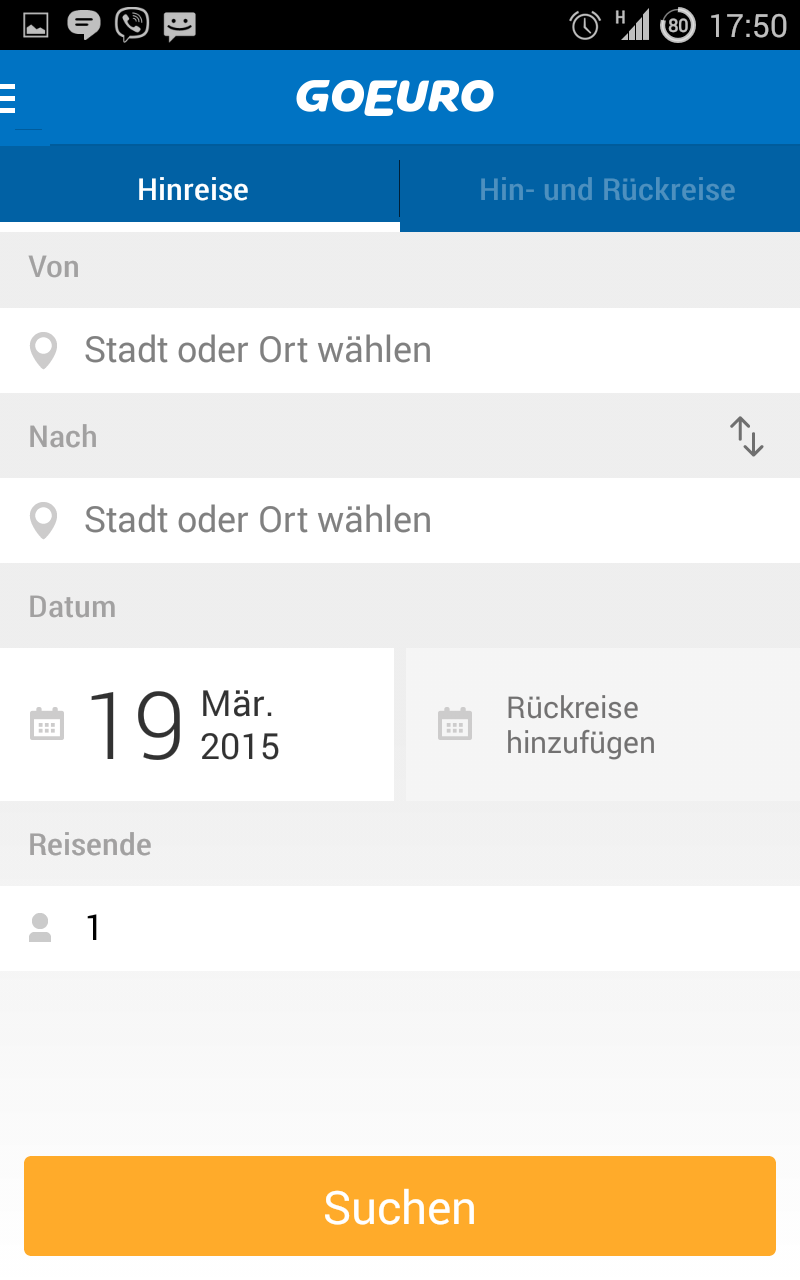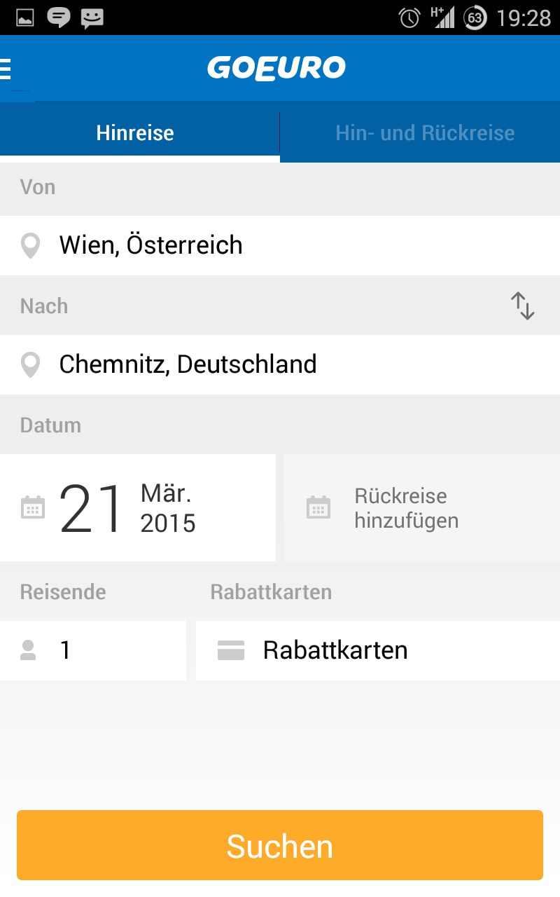 Die erste Amtshandlung ist die Auswahl der zurückzulegenden Strecke. Omio hilft dabei mit einer Liste häufig verwendeter Orte. Im nächsten Schritt müsst Ihr einen Anreise- und einen Abfahrzeitpunkt festlegen, woraufhin die fröhliche Suche beginnt.