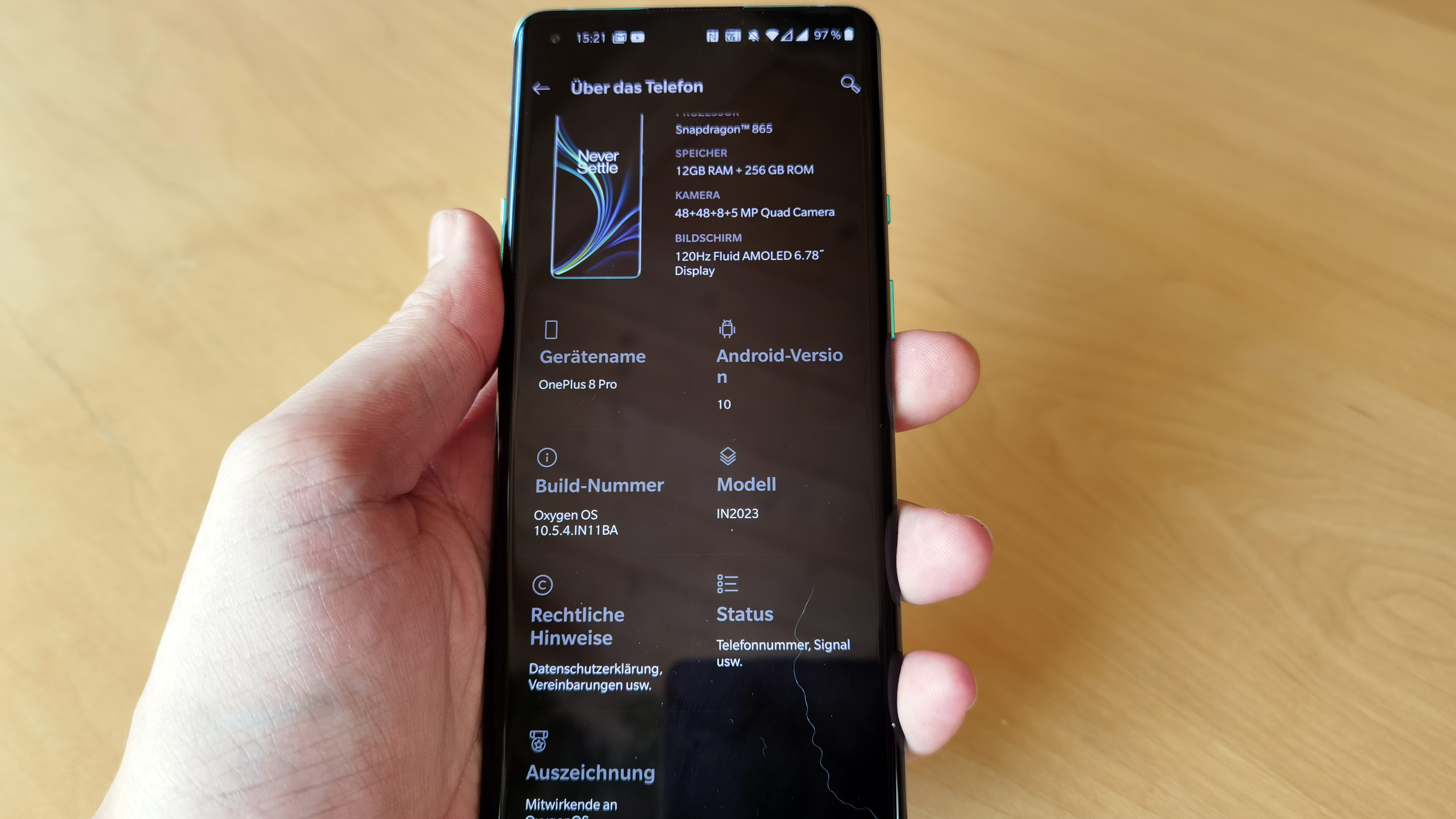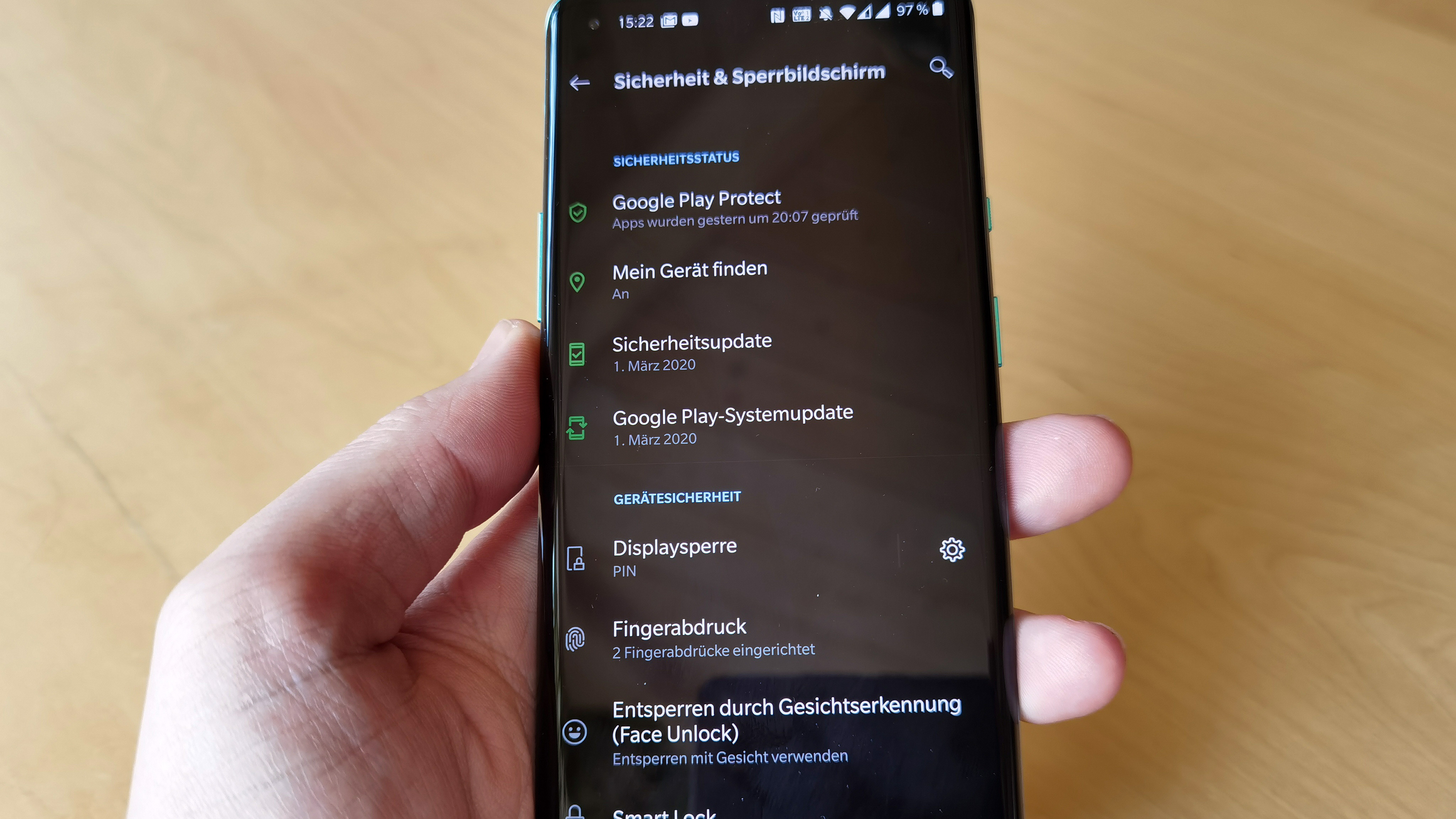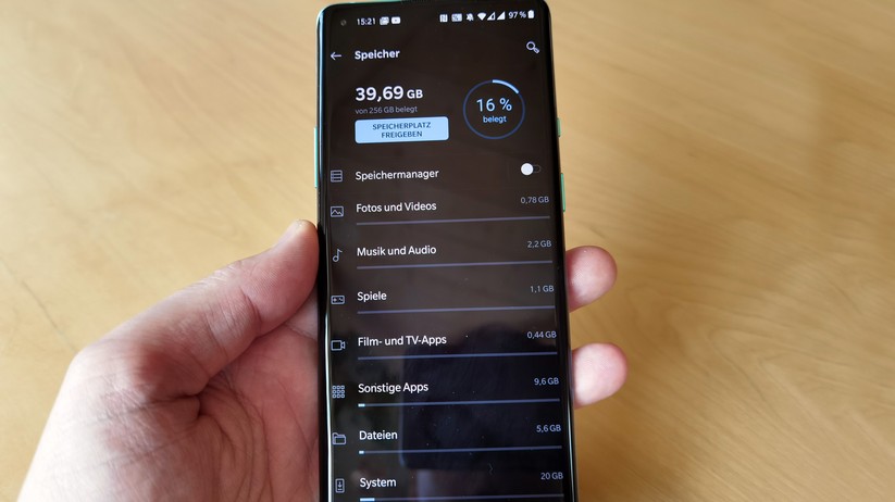 Ansonsten ist das Modell auf dem Stand der Zeit, viel mehr geht nicht. So beherrscht das Gerät bereits Wifi 6, unterstützt DLNA und Wifi Direct, funkt per Bluetooth 5.1 LE, versteht Geodaten per GPS, Glonass, BDS, Galileo und SBAS und setzt auf USB C 3.1 sowie NFC. Hinzu kommt 5G, alle Frequenzen in Deutschland werden unterstützt. Aktuell gilt das nur für eine der zwei möglichen Nano-SIMs, ein Hinweis in den Einstellungen deutet aber darauf hin, dass sich das mit kommenden Updates noch ändern könnte. Der optische Fingerabdrucksensor im Display überzeugte im Test vollkommen, er arbeitet schnell und zuverlässig. Lediglich die Positionierung hätte wie beim Huawei P40 Pro (Testbericht) etwas höher ausfallen dürfen.
