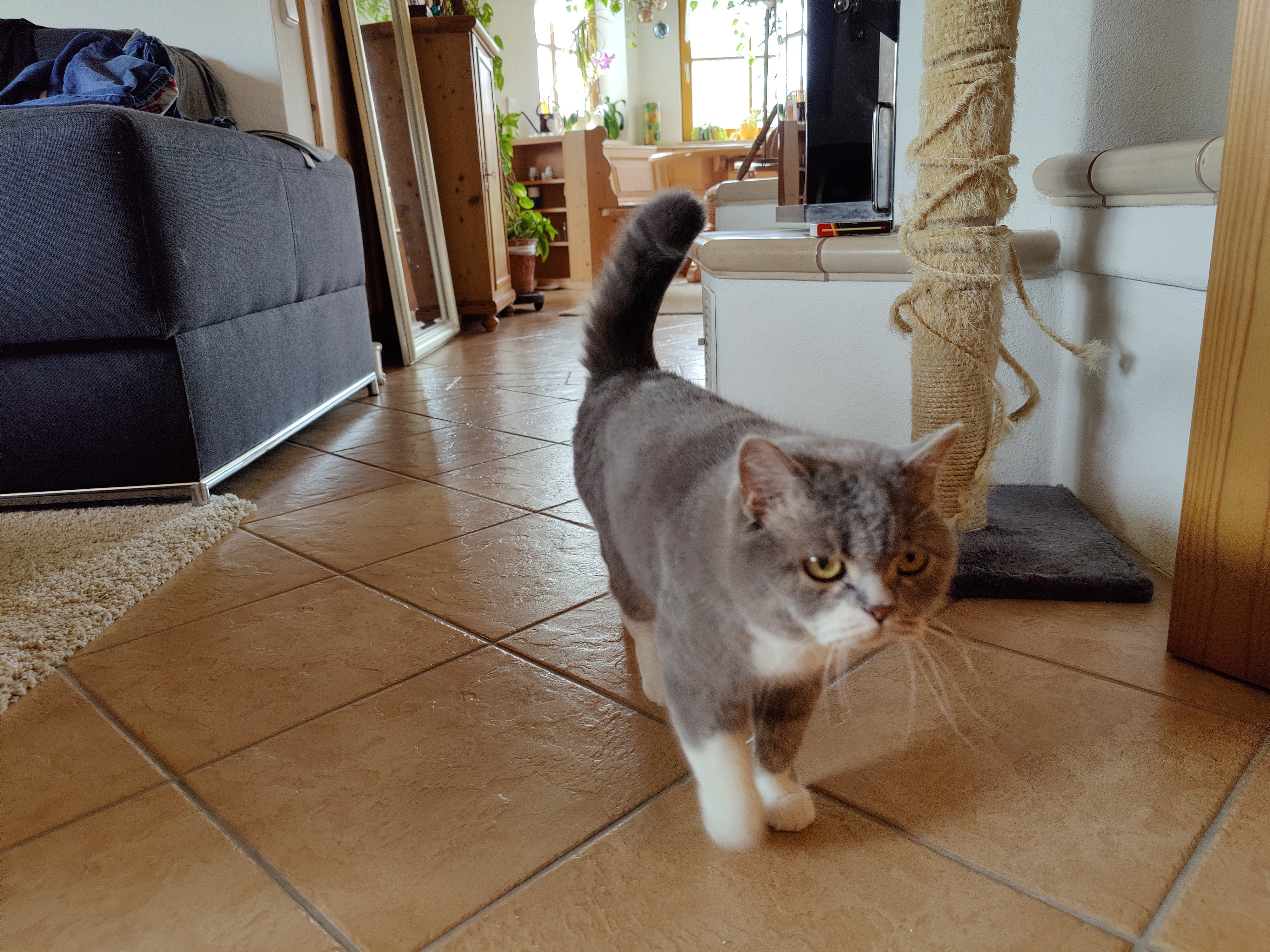Die Hauptkamera macht richtig gute Fotos. Die Bildschärfe kommt vielleicht nicht ganz an Huawei P40 Pro (Testbericht) und Samsung Galaxy S20 Ultra (Testbericht) heran, ist aber immer noch auf sehr hohem Niveau. Etwas besser wird das in voller 48-Megapixel-Auflösung, die aber nur bei sehr gutem Licht einen Vorteil bringt. Ansonsten werden Fotos dank Pixel Binning für bessere Dynamik mit 12 Megapixel aufgenommen. Bei Tageslicht im Freien haben uns zudem Farben und Bilddynamik gut gefallen, Bildrauschen ist kaum vorhanden. Während der Weißabgleich dort gut sitzt, überzeugte er uns bei Innenraumaufnahmen zumindest bei bestimmten Lichtstimmungen nicht immer. Dann wurde aus dem Grau des schläfrigen Hauskaters gern auch mal Braun und die Szenerie wurde zu warm eingefangen. Die Bildschärfe passt aber auch dann, selbst bei weniger Licht gibt es kaum Grund für Kritik – höchstens, dass der Übergang von Automatikmodus zu Nachtmodus kaum zu erkennen ist. Hier hilft nur Erfahrung des Nutzers. Vereinfacht gesagt muss der nämlich herausfinden, wann eine „normale“ Aufnahme nicht mehr scharf genug wird, dann muss der Nachtmodus her.