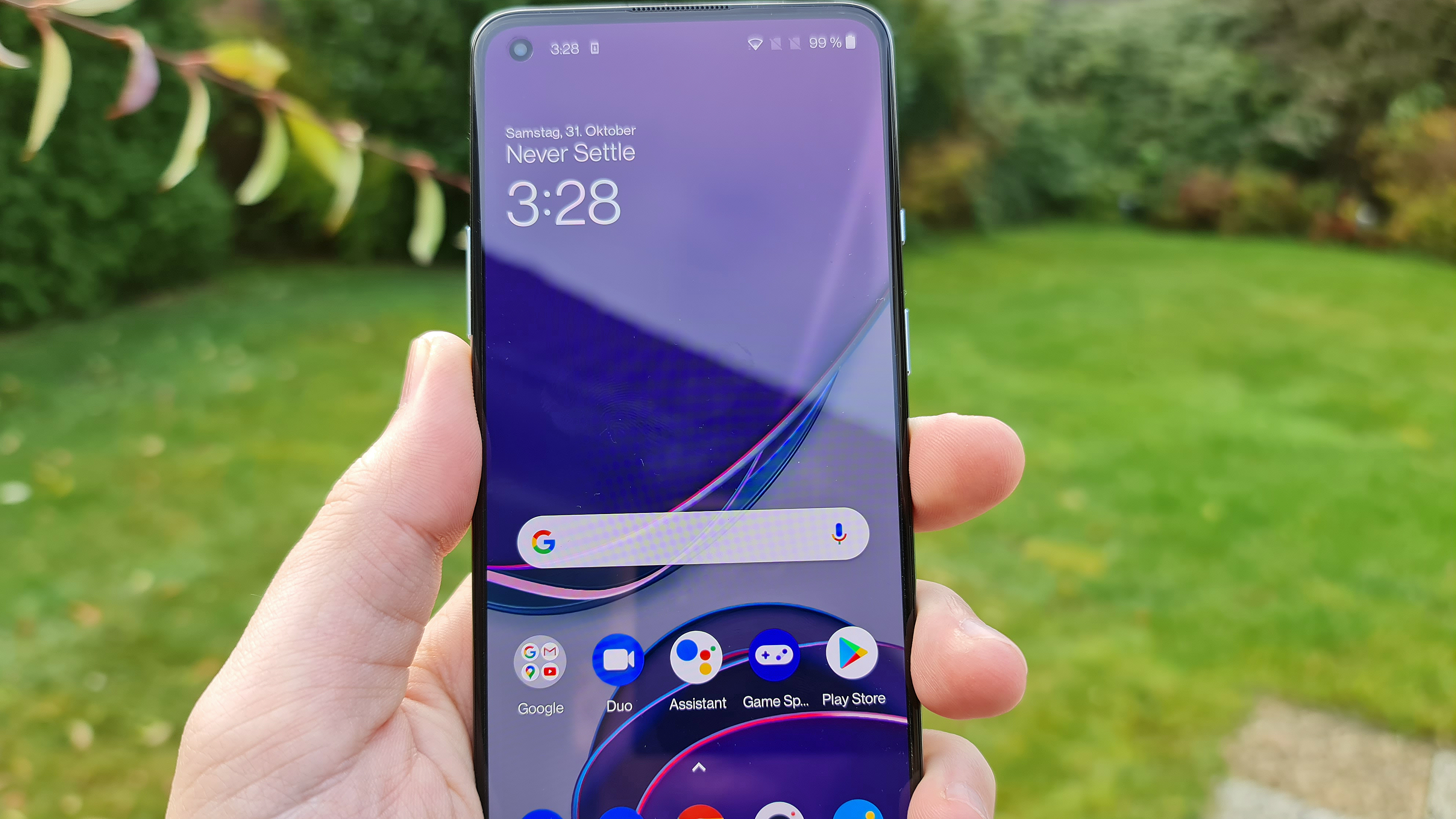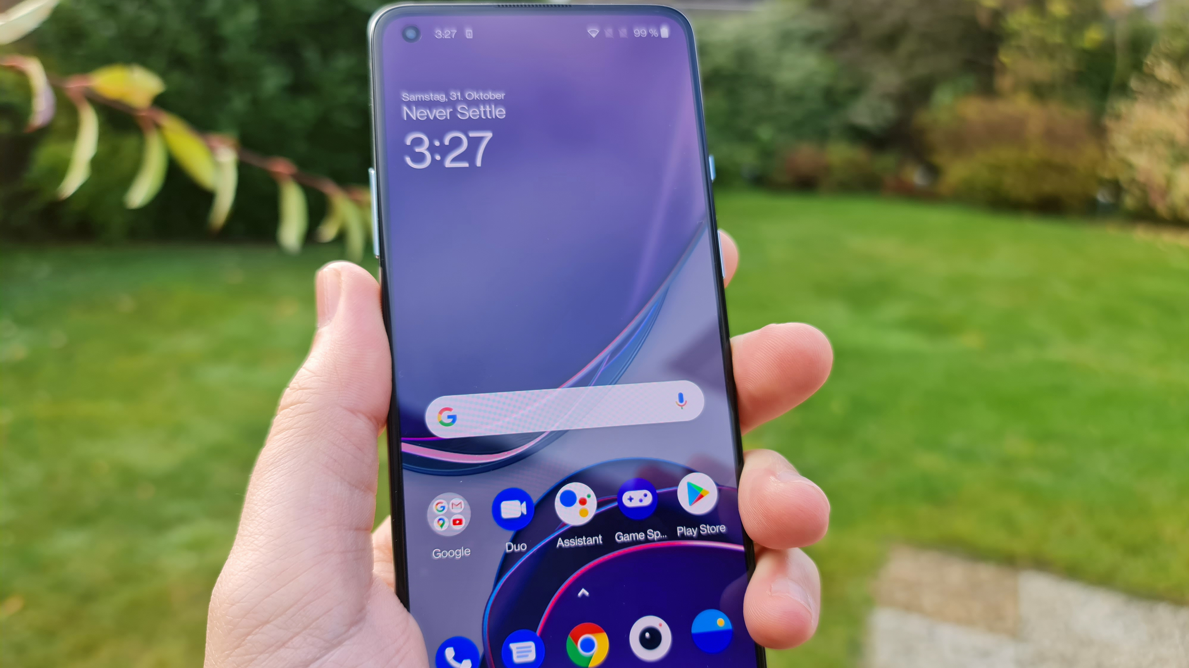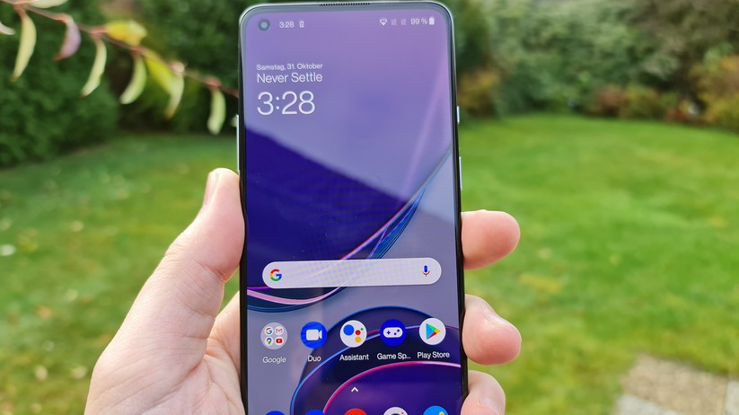 Bei seinen Topmodellen setzt Oneplus weiterhin auf OLED-Displays, das ist entsprechend auch beim Oneplus 8T so. 6,55 Zoll misst das Panel hier und kommt mit einer Auflösung von 2400 × 1080 Pixel zum Kunden. Das entspricht einer Bildschärfe von 402 Pixel pro Zoll. Nach Angaben des Herstellers wurde der Bildschirm des 8T noch einmal deutlich verbessert – was davon Marketing und was wirklich anders ist, können wir nicht 100-prozentig sagen. Klar ist, dass der Screen des neuen Oneplus-Modells richtig gut ist. Farben, Kontraste und die Helligkeit mit über 700 cd/m2 sind hervorragend. In Kombination mit der tollen Blickwinkelstabilität gibt es damit auch bei direkter Sonneneinstrahlung keine Probleme mit der Ablesbarkeit.