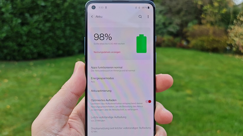 Will der Hersteller damit mangelnde Laufzeiten ausgleichen? Zum Glück nicht. Denn mit rund 8,5 Stunden im PCmark Battery Test bei 120-Hz-Nutzung liefert das 8T einen richtig guten Ausdauerwert ab, der sogar über dem Wert des Oneplus 8 Pro (Testbericht) liegt. Dort drückt vermutlich die höhere Auflösung das Ergebnis. Bei auf 60 Hz reduzierter Bildwiederholungsrate sollte die Ausdauer bei Dauernutzung um gut 1 bis 2 Stunden besser sein.