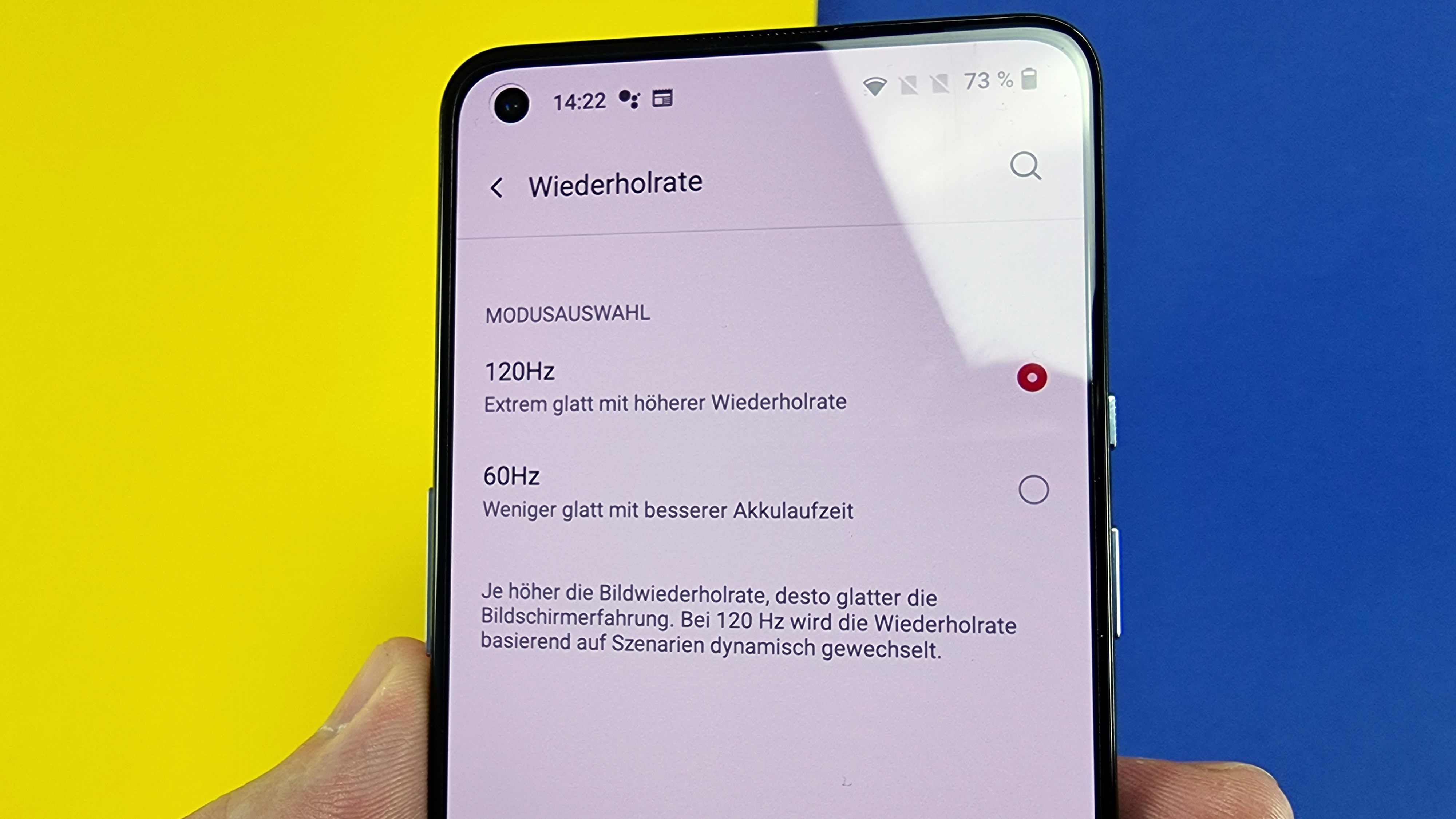 Statt WQHD+ wie beim Oneplus 9 Pro (Testbericht) setzt der Hersteller beim Oneplus 9 “nur“ auf FHD+. Die 2400 x 1080 Pixel verteilen sich auf 6,55 Zoll, sodass die Bildschärfe mit fast 402 Pixel pro Zoll alles andere als unscharf ist. Auch bei der Bildwiederholungsrate gibt es Abstriche, allerdings erst auf den zweiten Blick. Denn wie beim Topmodell liegt die Frequenz bei 120 Hertz und 360 Hertz Abtastrate, die Hertz-Zahl wird allerdings nicht automatisch in kleinen Schritten dazwischen angepasst, um ein optimales Verhältnis zwischen flüssiger Darstellung von bewegten Display-Inhalten und möglichst wenig Stromverbrauch zu realisieren. Immerhin wechselt das Smartphone je nach Display-Inhalt automatisch zwischen 60 und 120 Hertz. Hier liegt die Konkurrenz teilweise vorn.