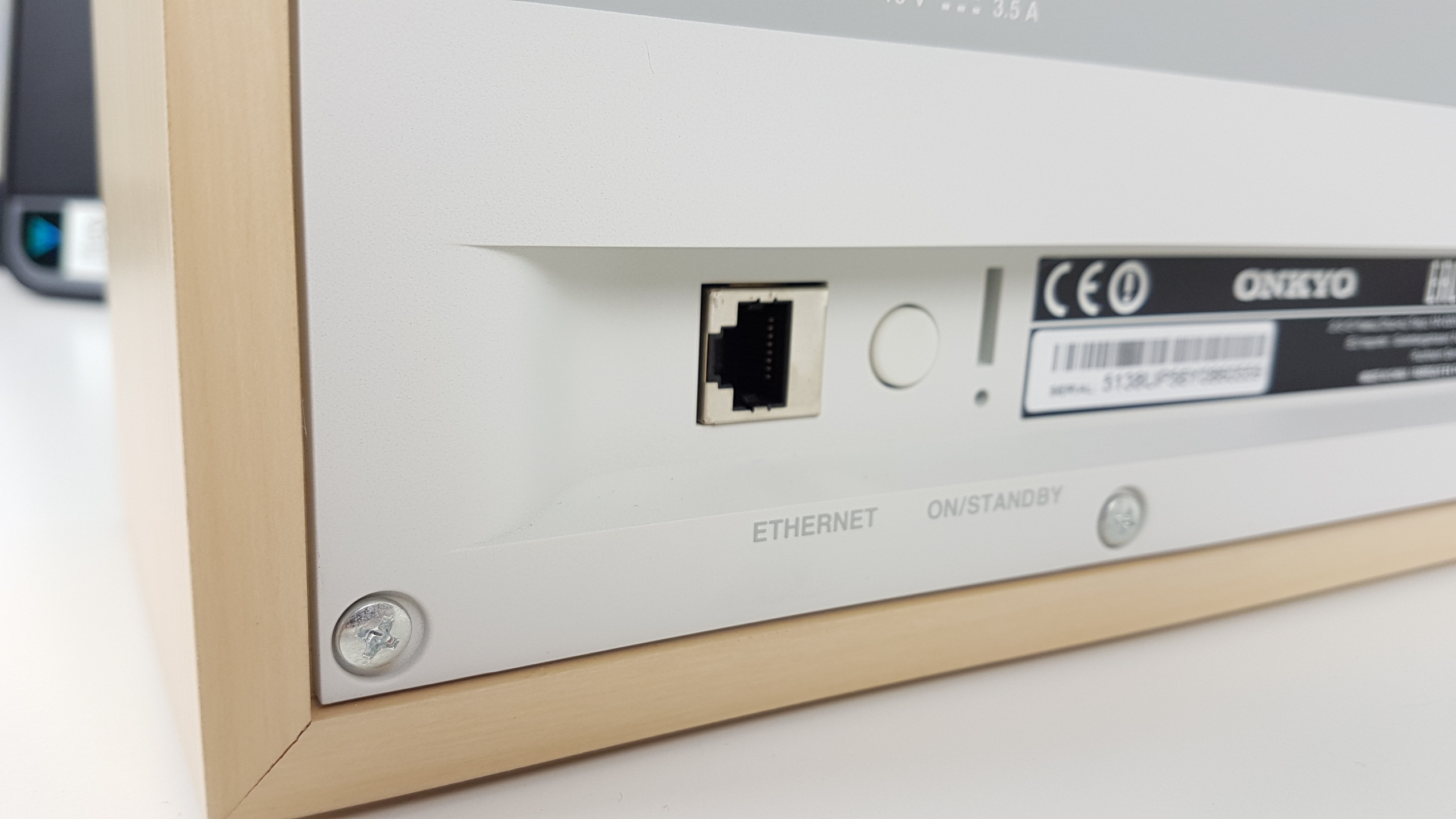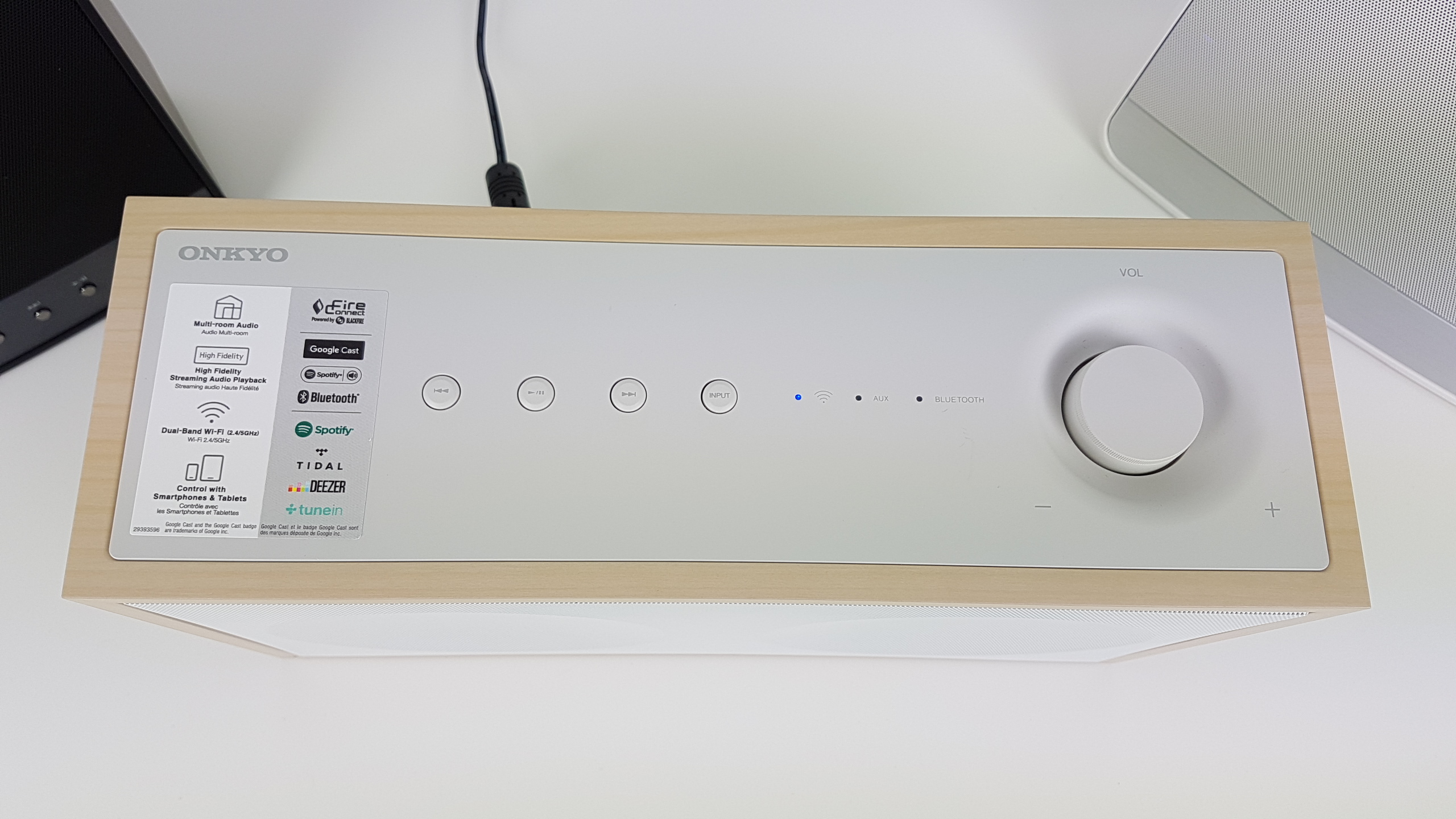 Fans von Retro-Optik kommen mit dem NCP-302 auf Ihre Kosten. Onkyo ist eine ansprechende Kombination aus modernem Look und dem Aussehen von Musikanlagen und Boxen aus den 60er und 70er Jahren gelungen. Das Gehäuse besteht aus Holz nachempfundenem Kunststoff, vorne gibt es ein Metallgitter. Oben sitzen neben einigen Bedienelementen für Auswahl der Quelle, Lautstärke und zur Mediensteuerung LEDs, die anzeigen, welche Musikquelle gerade ausgewählt ist. Neben Ethernet-Port und Eingang für das Netzteil befinden sich hinten noch ein Standby-Taster und ein AUX-Eingang. Die Abmessungen des Gerätes betragen 426 × 262 × 206 Millimeter bei einem Gewicht von 2,6 Kilogramm.