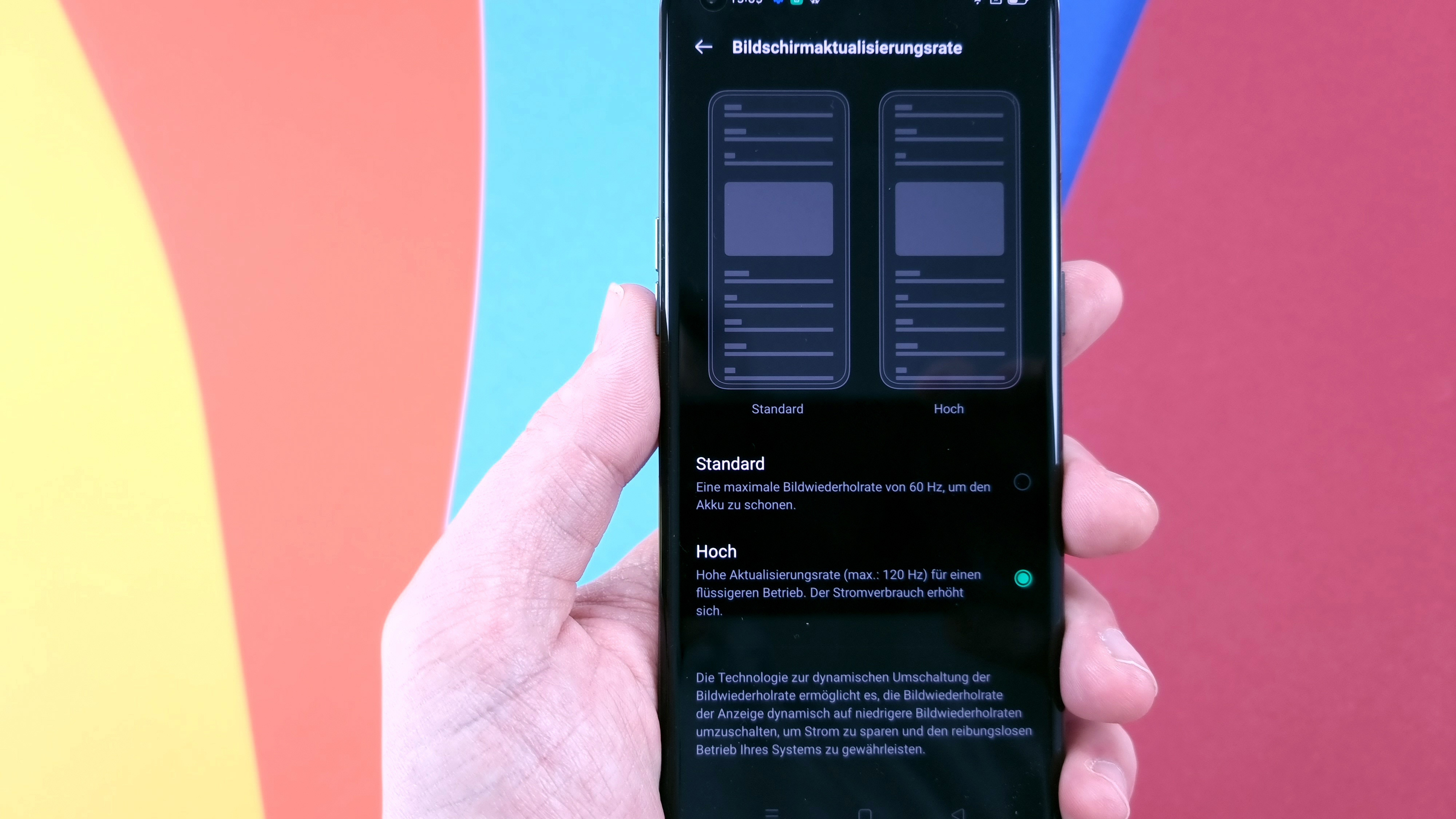 Das 6,7 Zoll große OLED-Display bietet 3216 x 1440 Pixel und damit eine messerscharfe Darstellung von über 530 Pixel pro Zoll. Der Screen beherrscht HDR10+ und verfügt über eine adaptive Bildwiederholungsrate von 120 Hertz sowie eine Abtastrate von 240 Hertz. Entsprechend gibt es nicht “nur” 16 Millionen Farben (8 Bit) wieder, sondern satte 1,07 Milliarden Farben. Was wie totaler Overkill klingt (und eigentlich auch ist), sorgt gerade bei Farbverläufen für natürlichere Übergänge ohne Stufeneffekt.