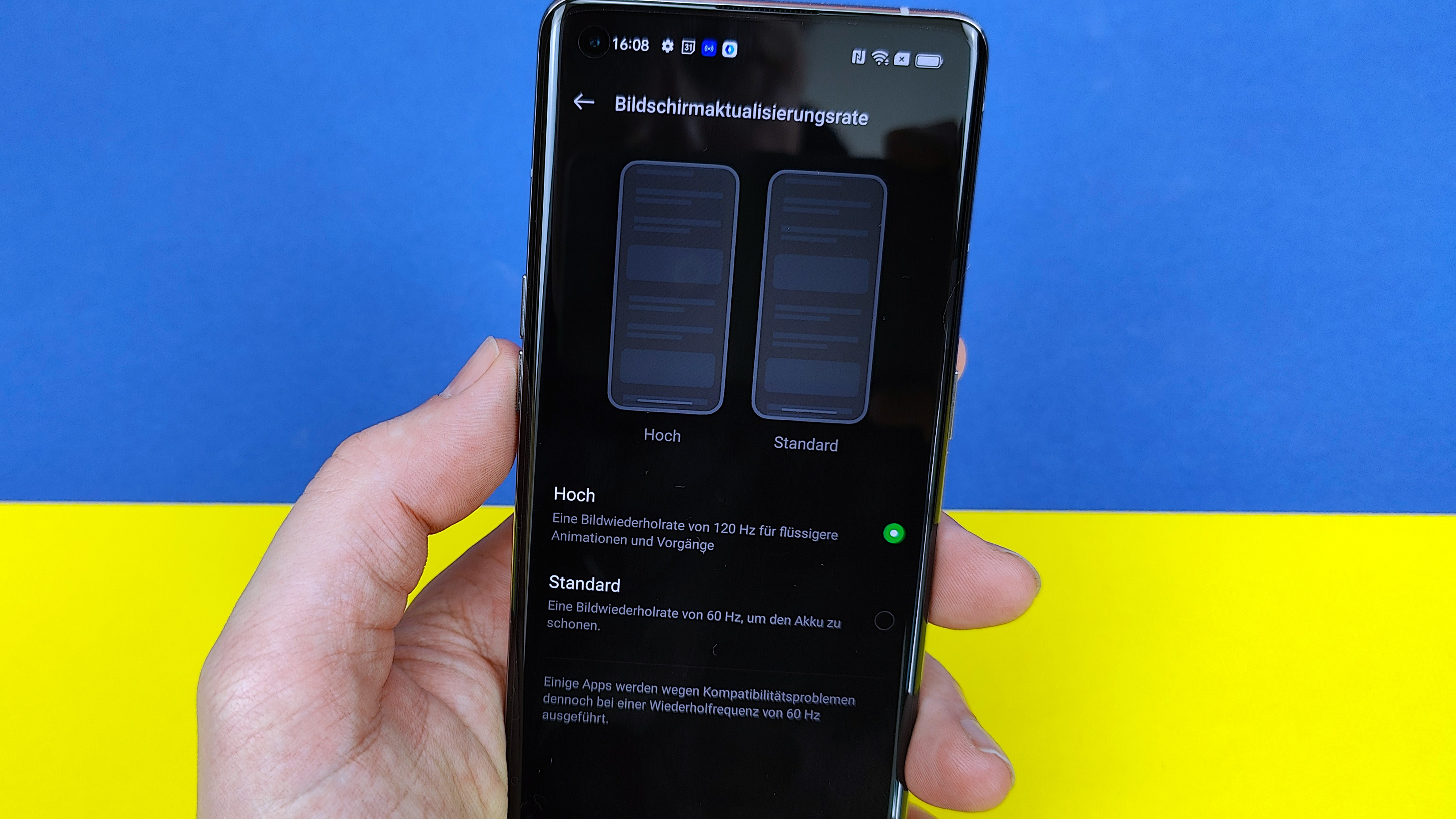 Die halbwegs handlichen Maße kommen unter anderem vom mit 6,55 Zoll beinahe schon „kleinen“ Display. Oppo setzt beim „normalen“ Find X5 auf OLED mit 2400 x 1080 Pixel, was in einer Bildschärfe von knapp über 400 Pixel pro Zoll (ppi) resultiert. 120 Hertz stellt das Display dar, bedauerlicherweise nicht adaptiv. Der Nutzer hat also die Wahl zwischen 60 oder 120 Hertz, eine automatische Zwischenregelung je nach dargestelltem Inhalt fehlt. Beim Pro-Modell mit LTPO-Panel ist das anders. So oder so sieht der Screen des Find X5 klasse aus. Je nach Einstellung gibt er 100 Prozent des DCI-P3-Farbraums zu bewundern und die Helligkeit kommt im Automatikmodus auf fast 800 cd/m². Zusammen mit dem guten Schwarzwert, den lebendigen Farben, einem umfangreichen Always-on-Display und der hohen Blickwinkelstabilität gibt es hier trotz des hohen Preises von 999 Euro in der UVP keinen Anlass zur Kritik.