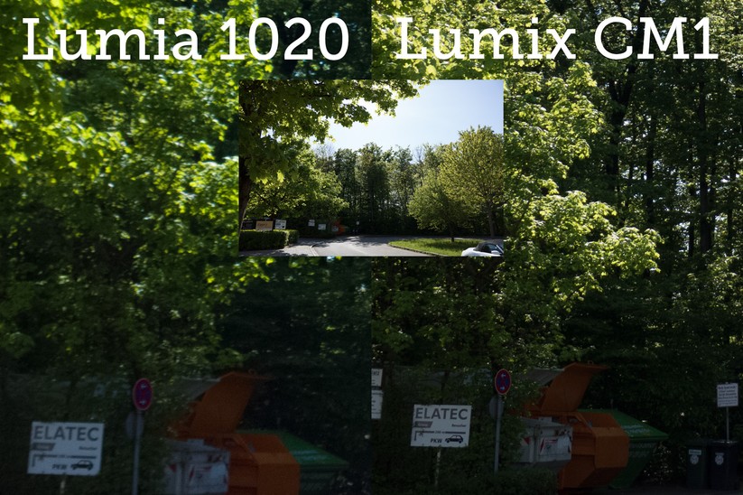 Zwar bietet der Sensor des Lumia 1020 eine nominell höhere Auflösung bei einer sehr ähnlichen Sensorgröße. Doch davon kann man sich unterm Strich wenig kaufen, wenn das Objektiv nicht mitspielt, und die Pixel kleiner sind, durch die geringere Fläche eine höhere Ausleseempfindlichkeit erfordern und so mehr Bildrauschen liefern. Denn mehr Bildrauschen erfordert eine stärkere Rauschreduktion, und das kostet wiederum Details. Und entsprechend sieht die Praxis meist so aus, dass das Panasonic-Smartphone spürbar mehr Feinheiten auf den Fotos abbildet als sein Lumia-Konkurrent.