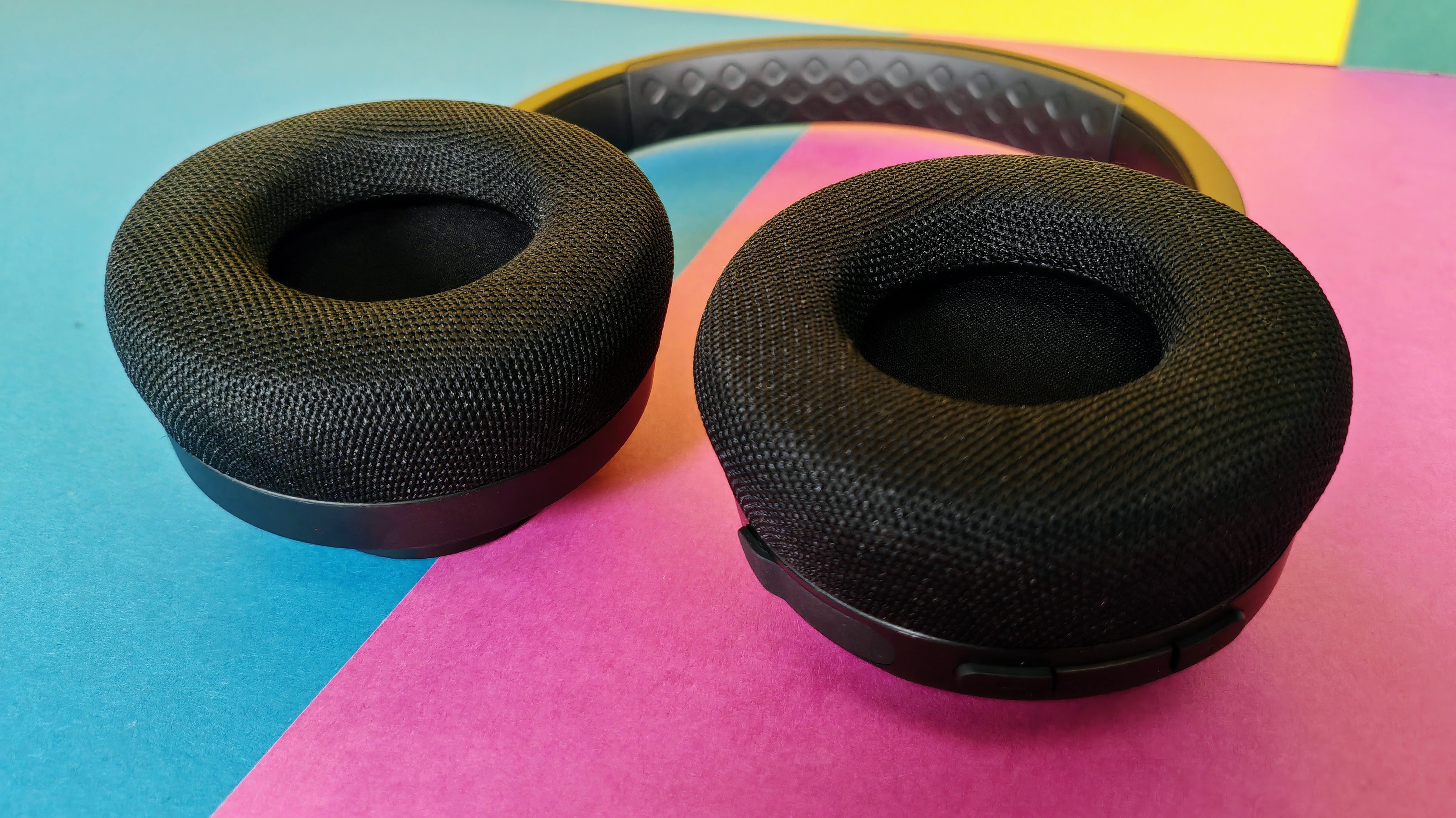 Die größte Besonderheit sind die mit synthetischen Textilien bespannten Ohrpolster. Diese kann man abnehmen und dann von Hand unter dem Wasserhahn waschen – am besten mit mildem Spülmittel oder Feinwaschmittel. Die Füllung des Polsters ist zudem mit einer Schicht aus kühlendem Gel ausgestattet, was bei hohen Temperaturen das Ohr abkühlen soll. Im Winter fehlt es uns aber an Möglichkeiten, die Wirkung dieses Features wirklich beurteilen zu können. Einzige Herausforderung: Es ist ziemlich fummelig, die Polster abzunehmen und wieder am Kopfhörer zu befestigen. Zieht man den Stoff der Polster erstmalig aus den Ohrhörern, glaubt man zunächst, diese zu beschädigen.